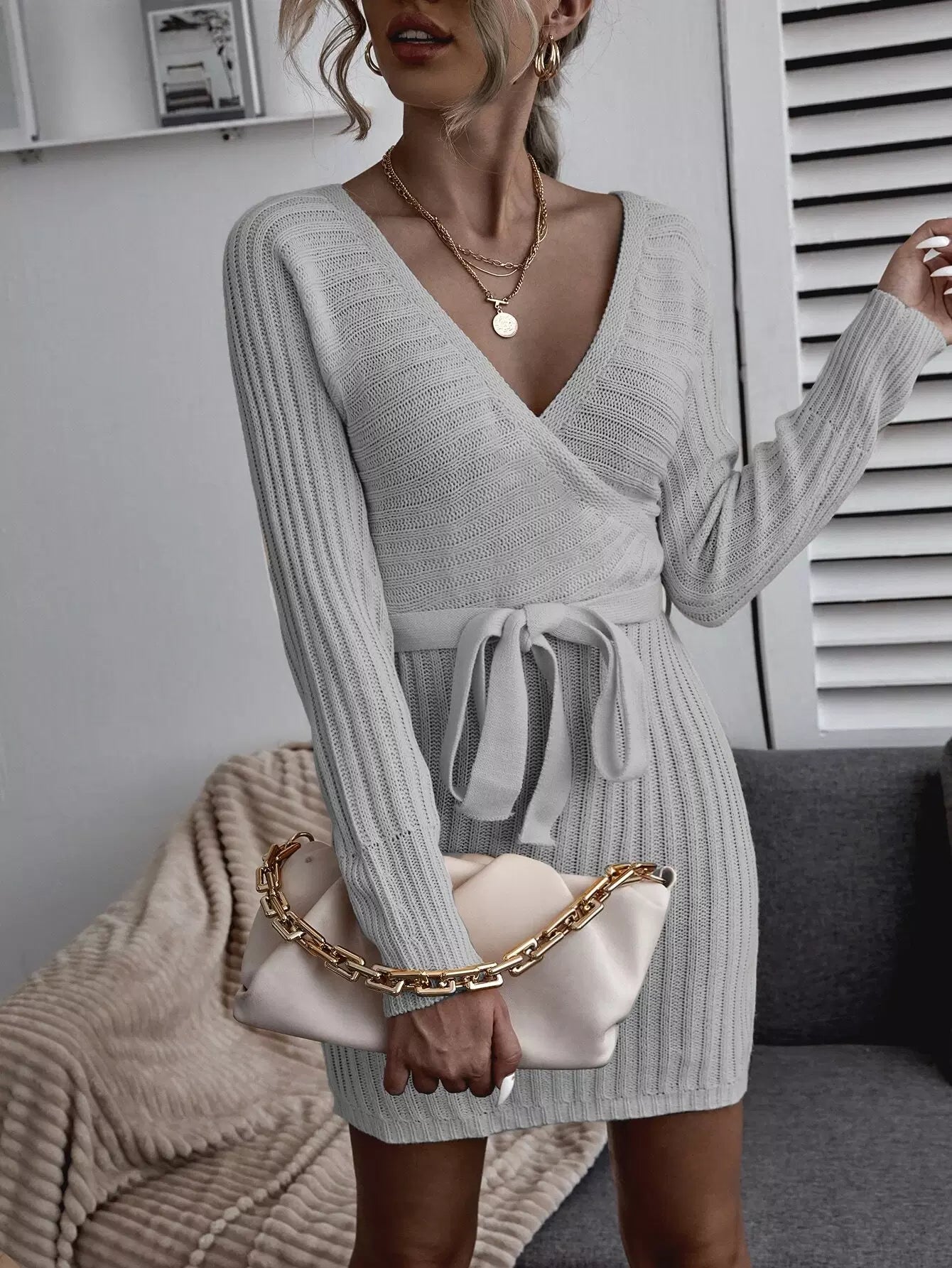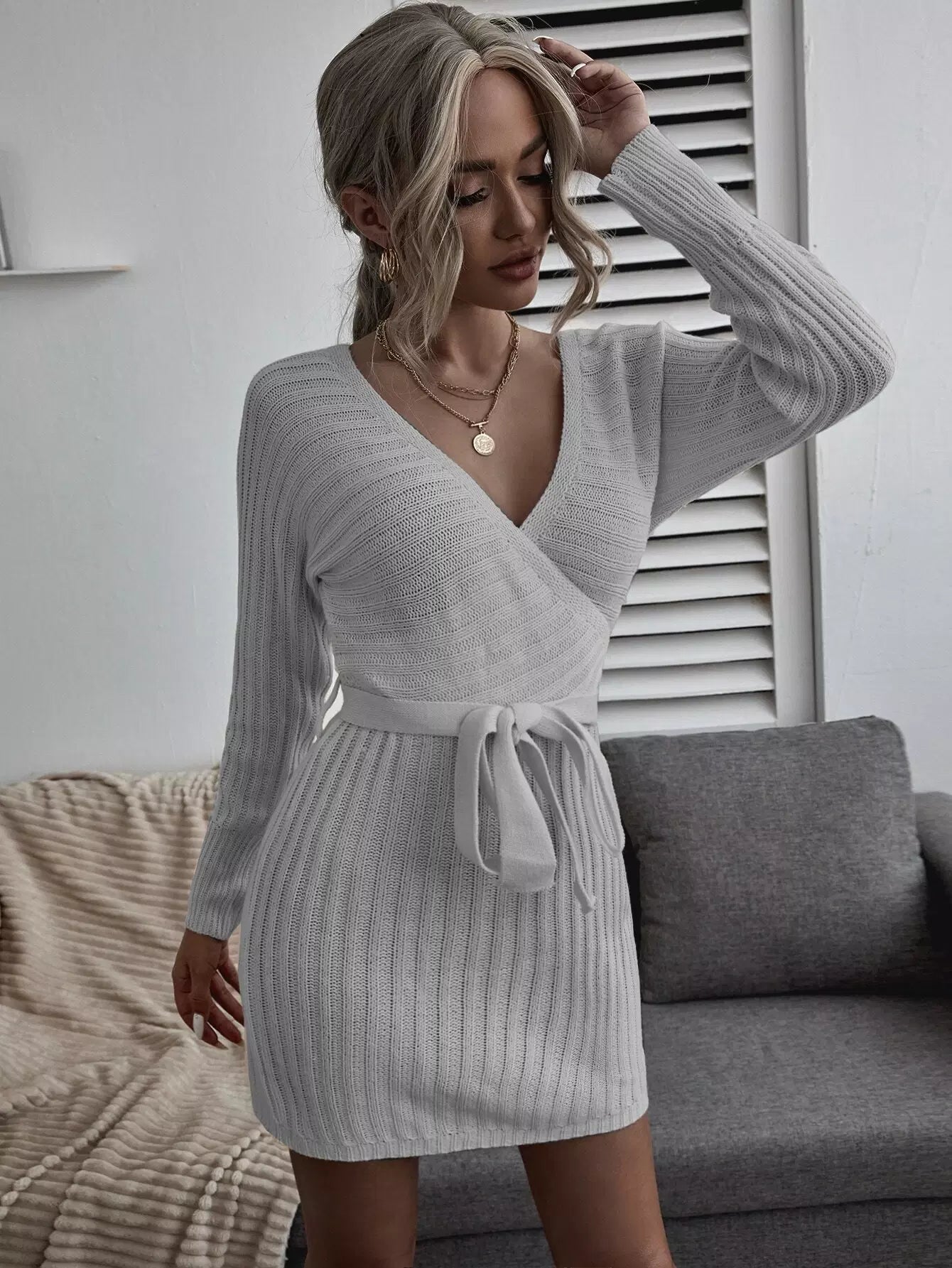 فستان سترة أمامية صلبة من Surplice بدون حزام