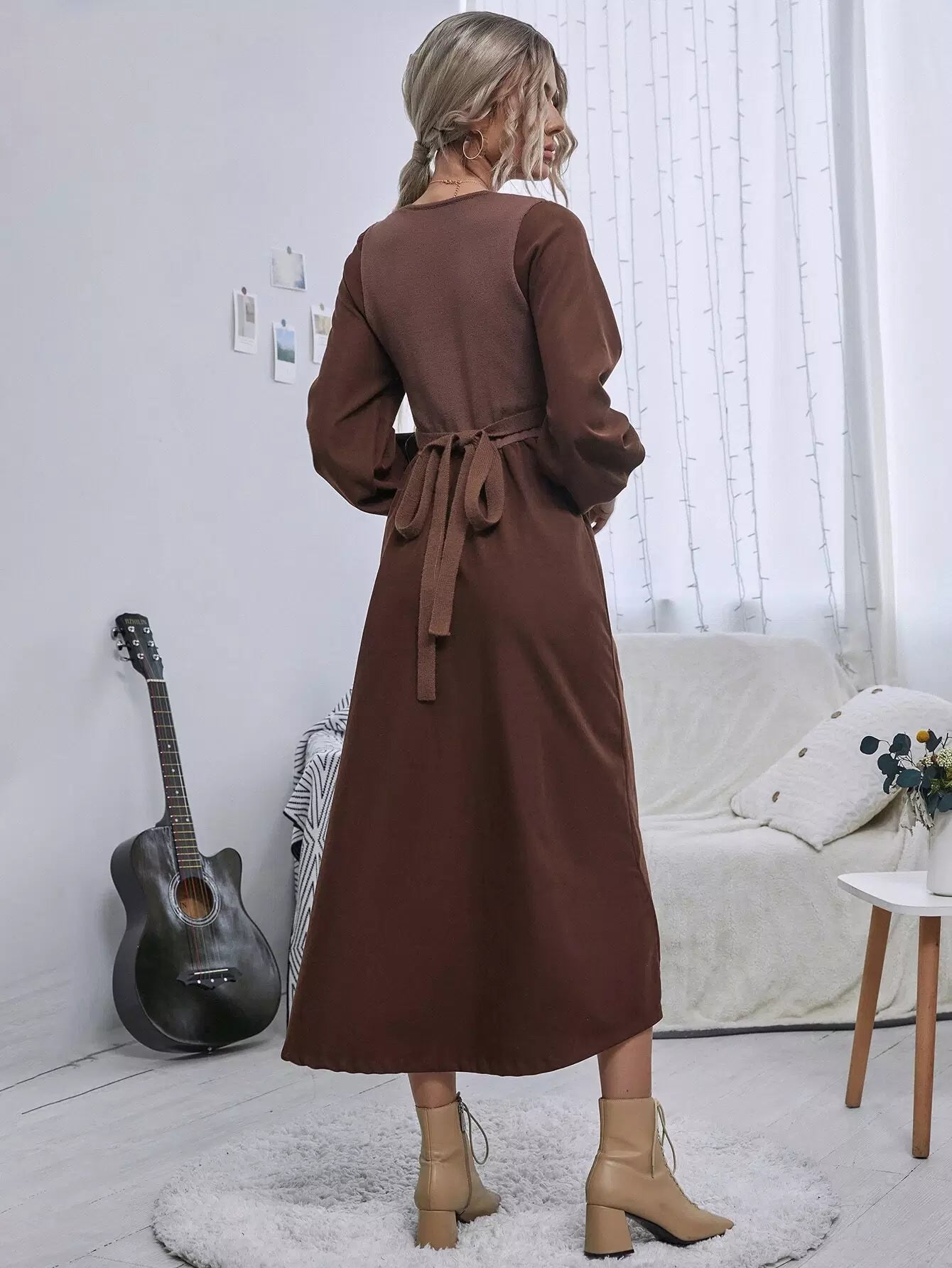 فستان محبوك بربطة عنق من الكيبلات المربوطة من الخلف