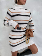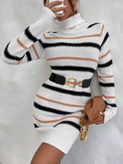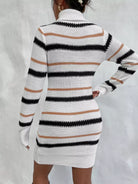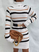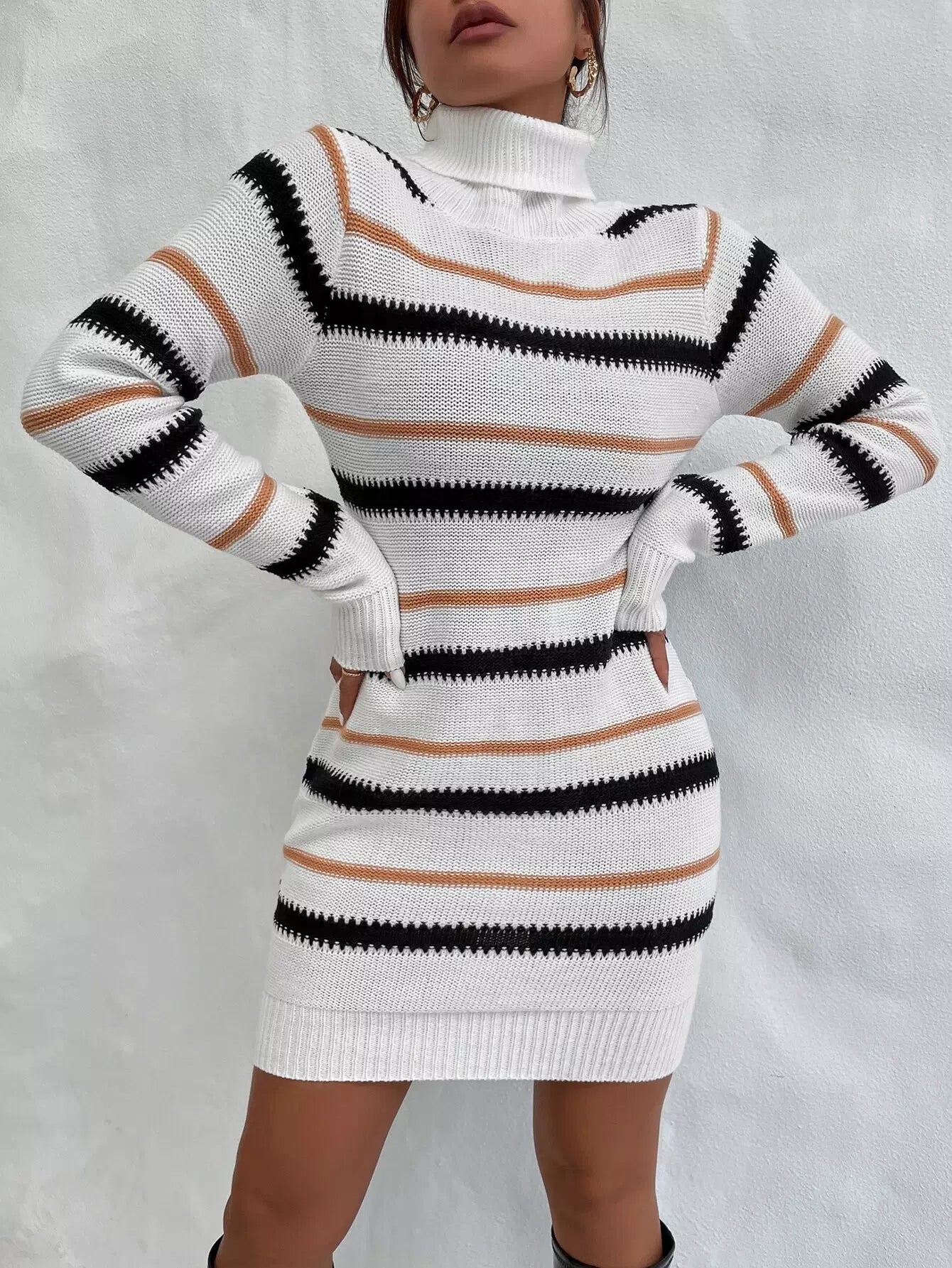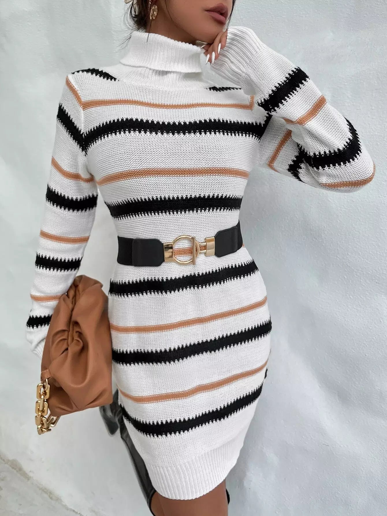 فستان سترة بياقة مدورة بنمط مخطط بدون حزام