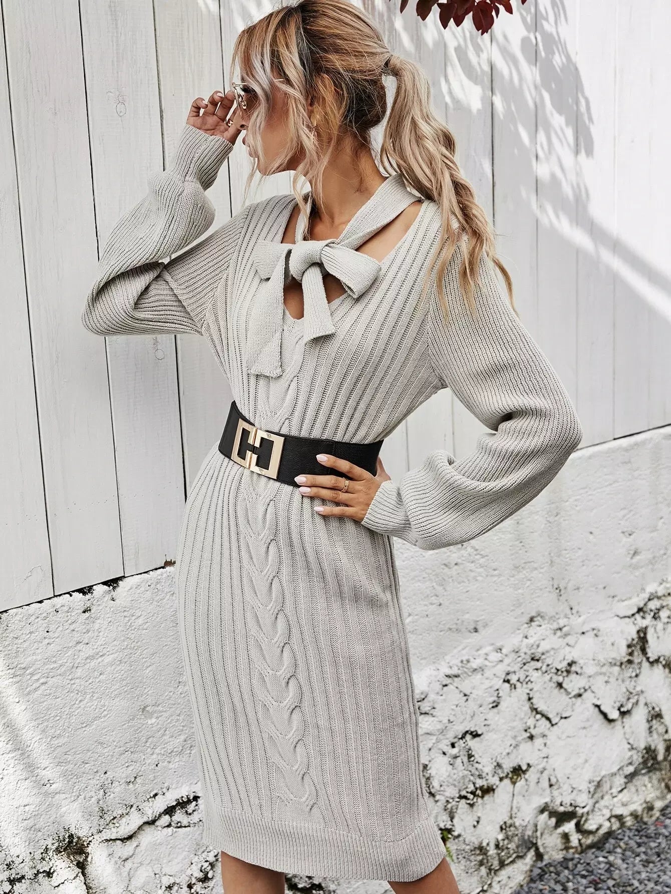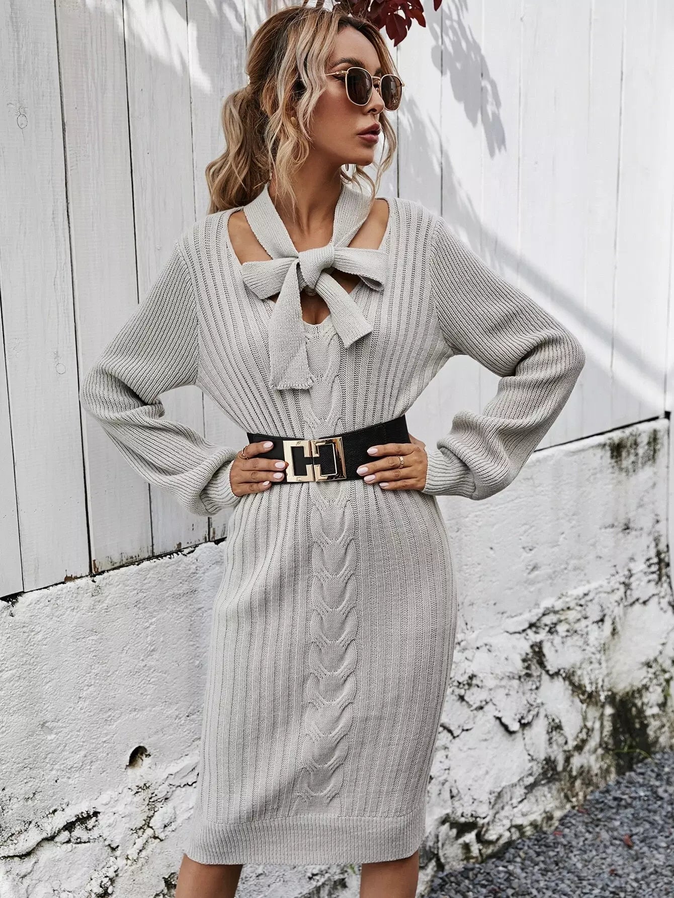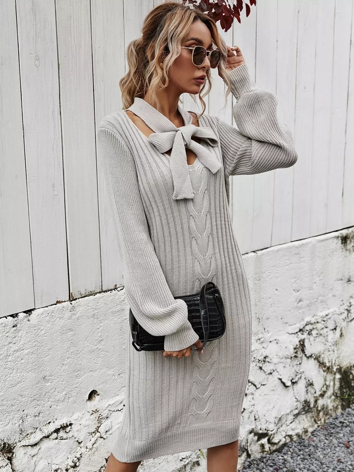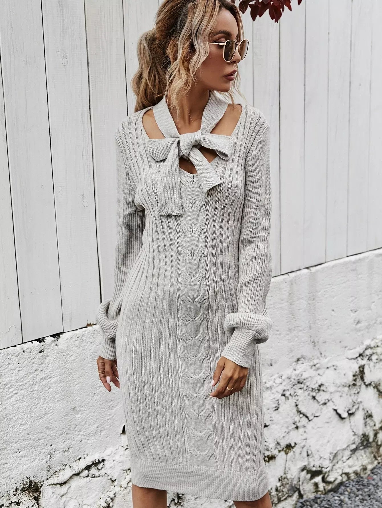 فستان برقبة ربطة عنق كابل محبوكة