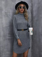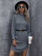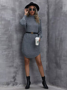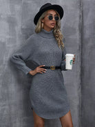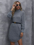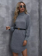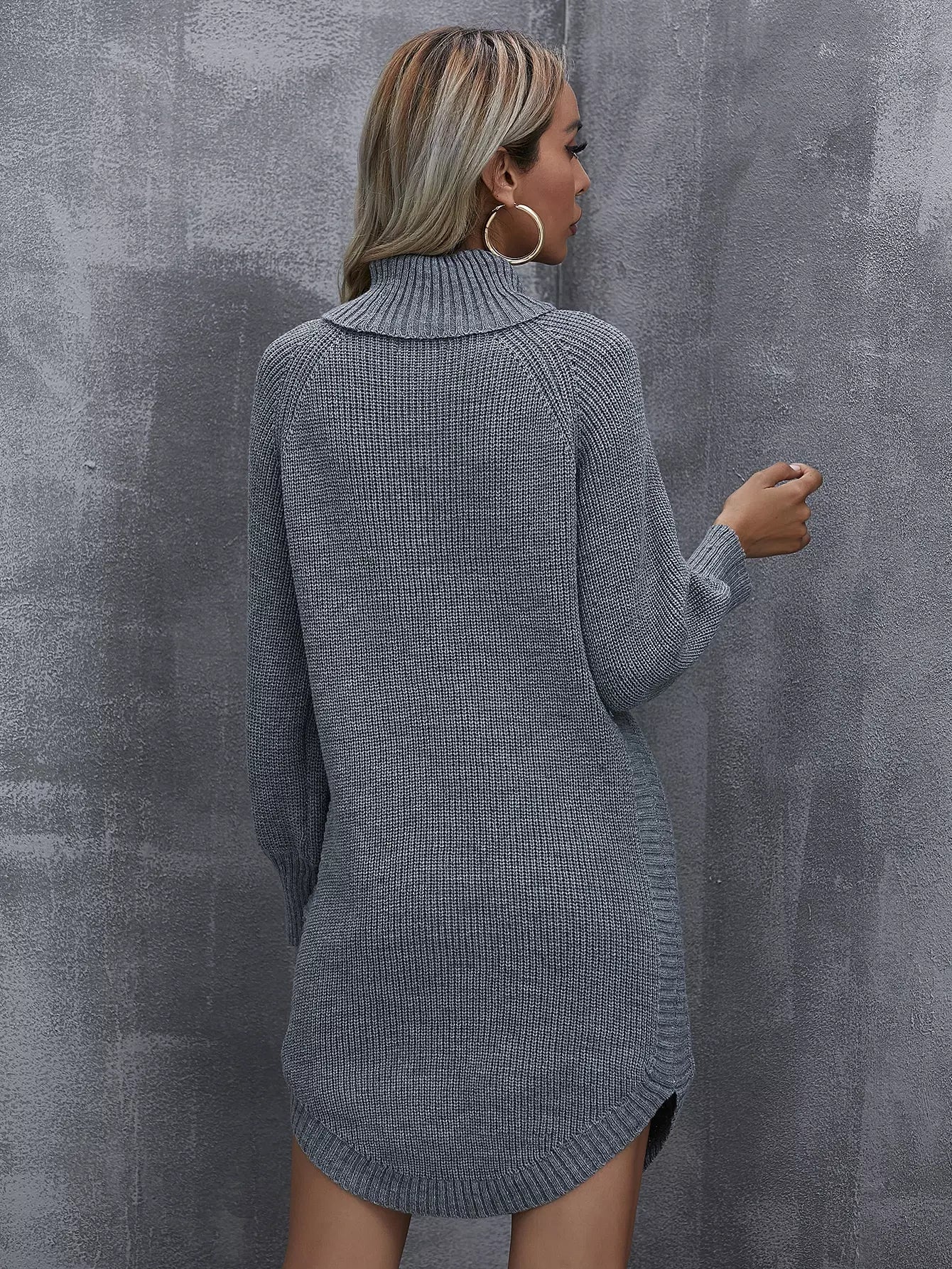 فستان سترة بحاشية منحنية وياقة سلحفاة بدون حزام
