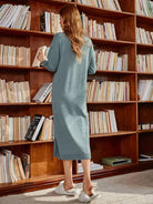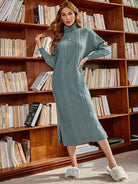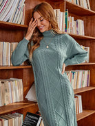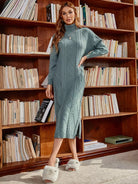 فستان كنزة بياقة مدورة بياقة كابل وأرجيل محبوكة بحافة مشقوقة
