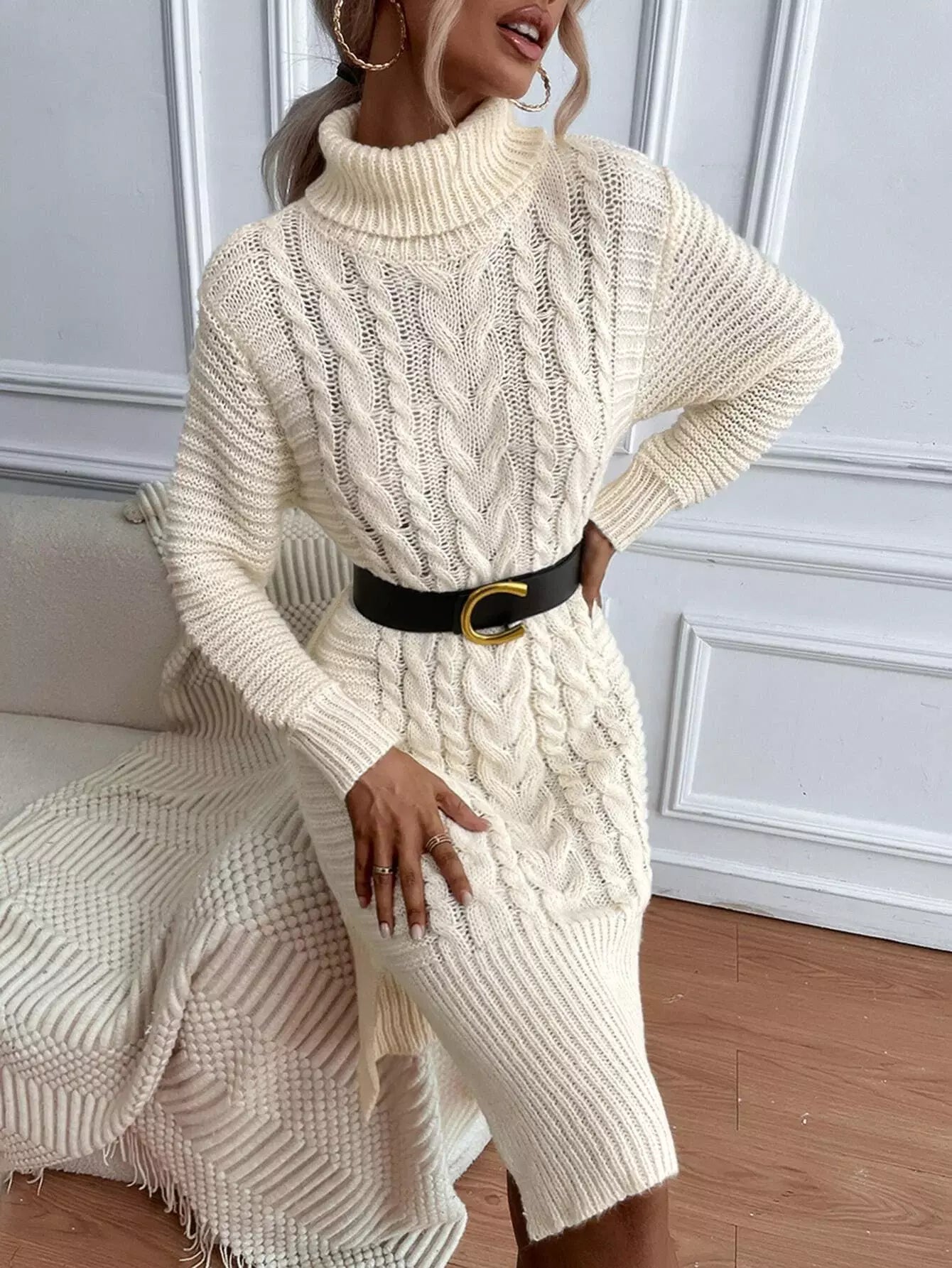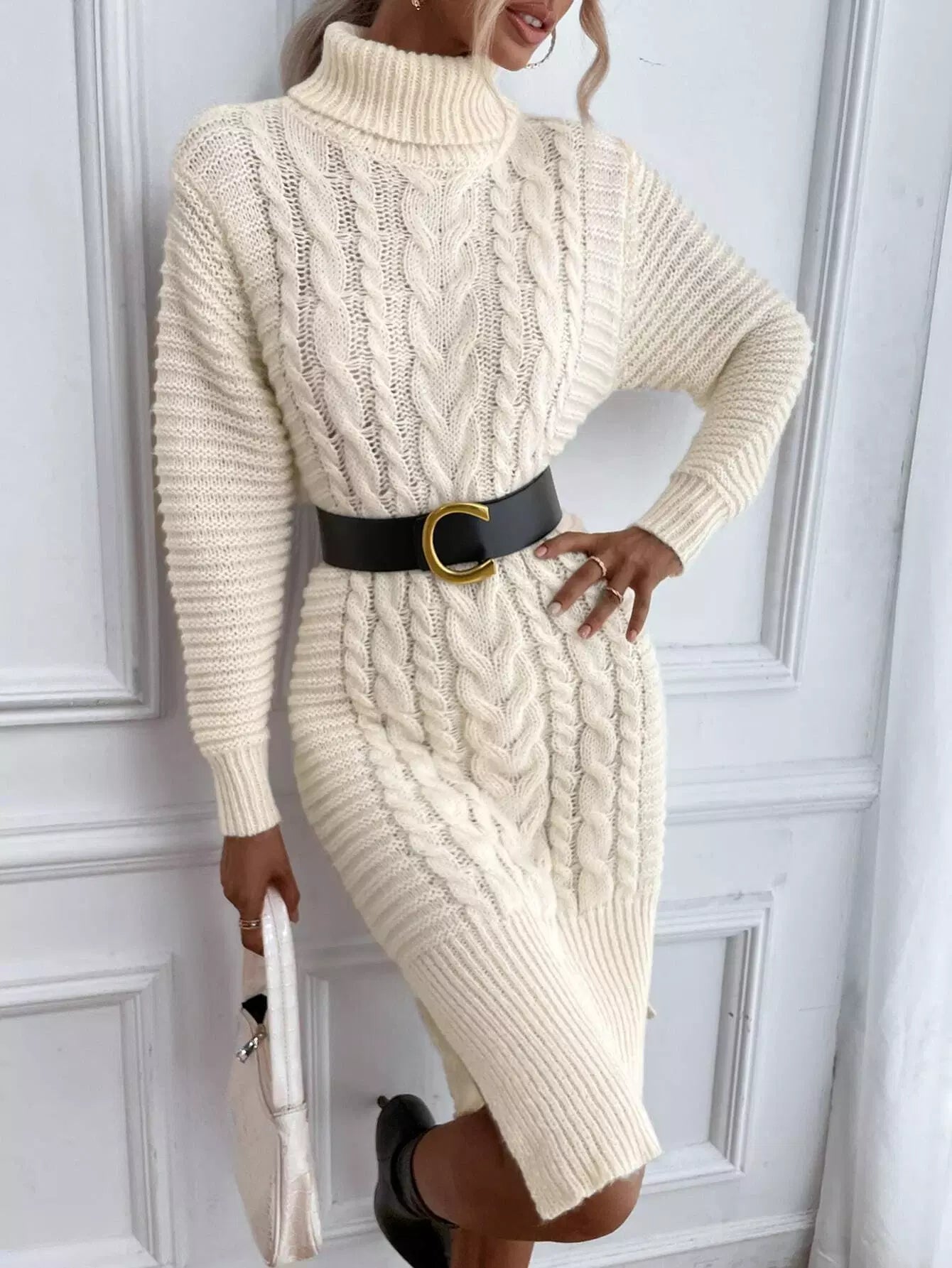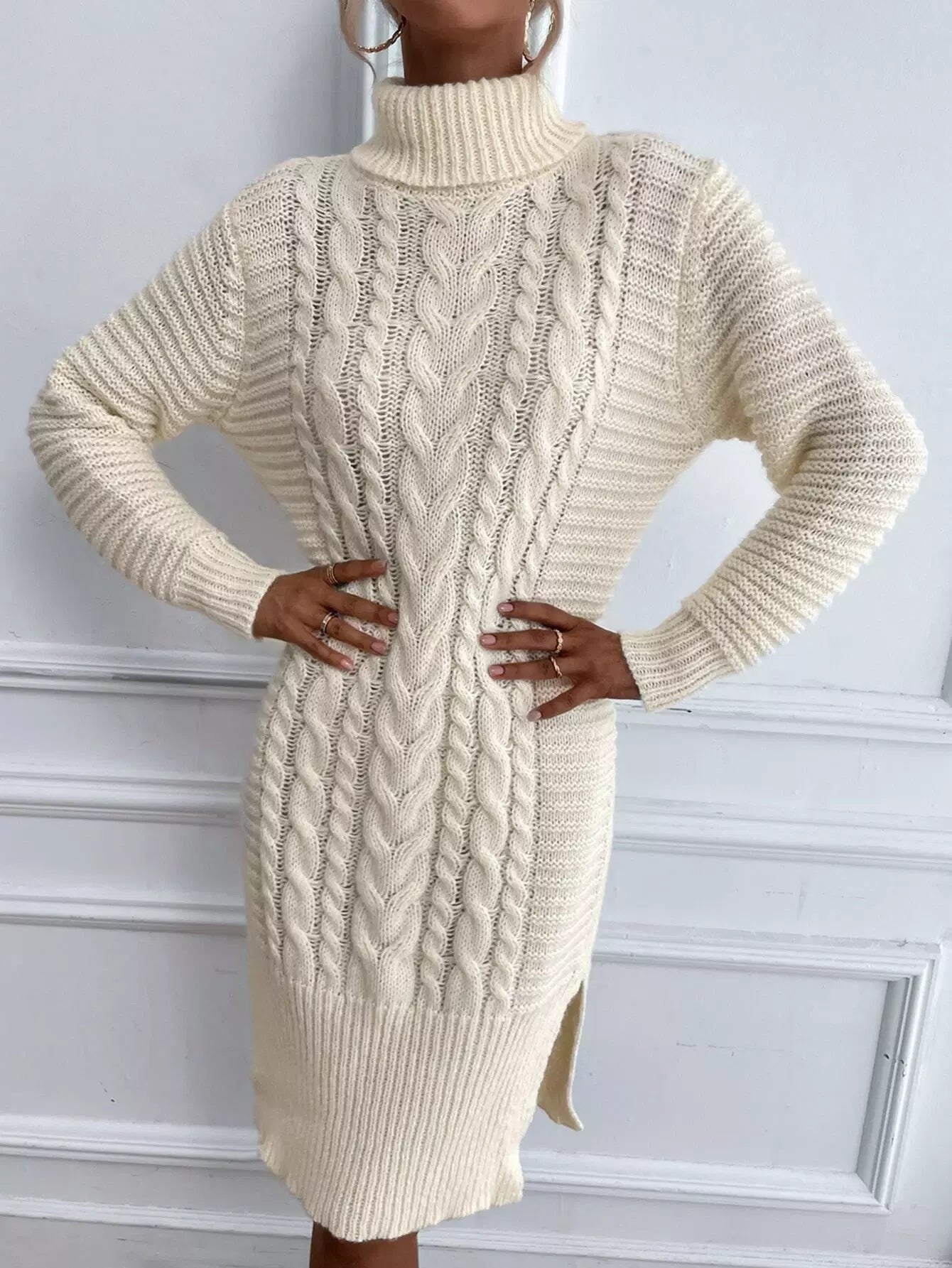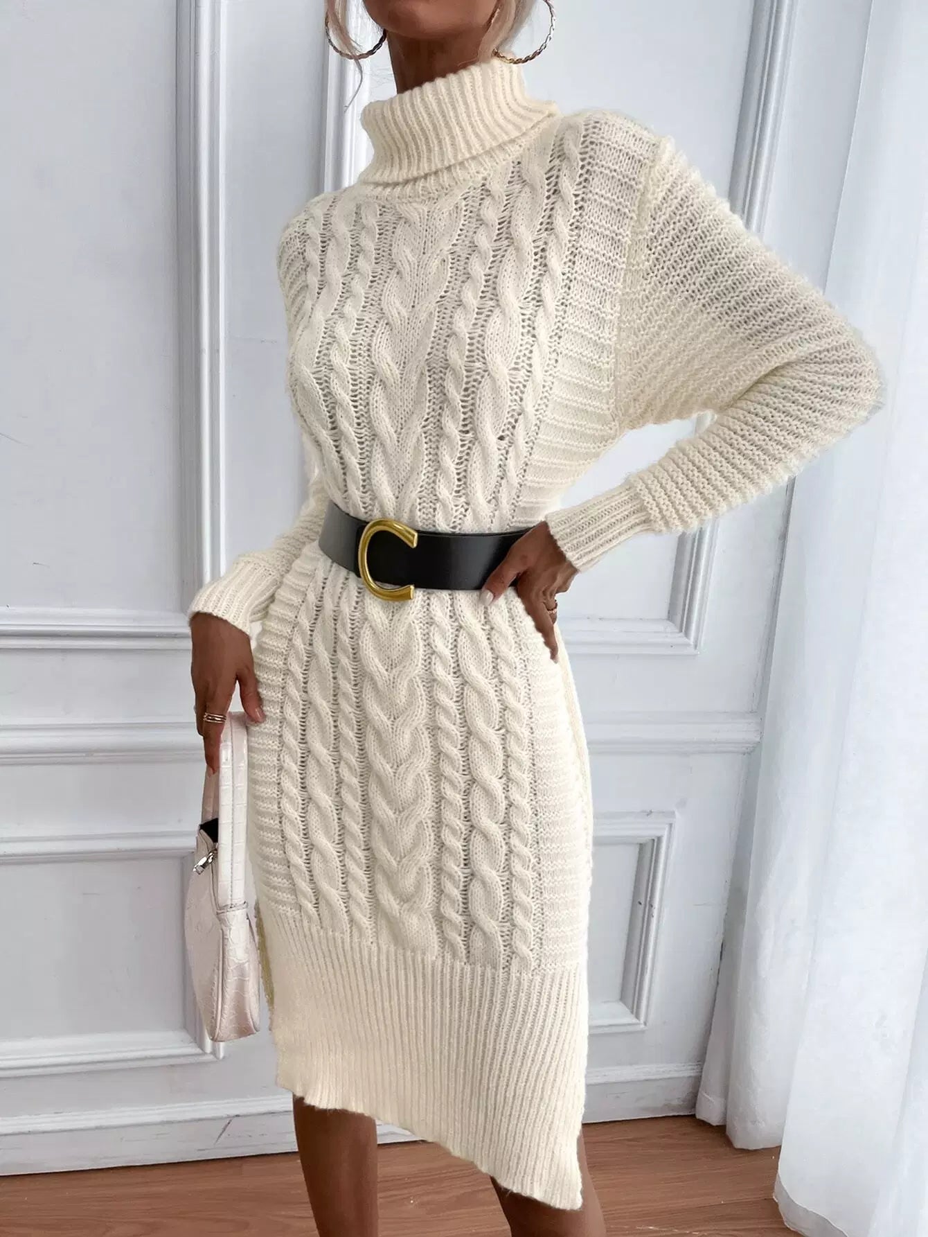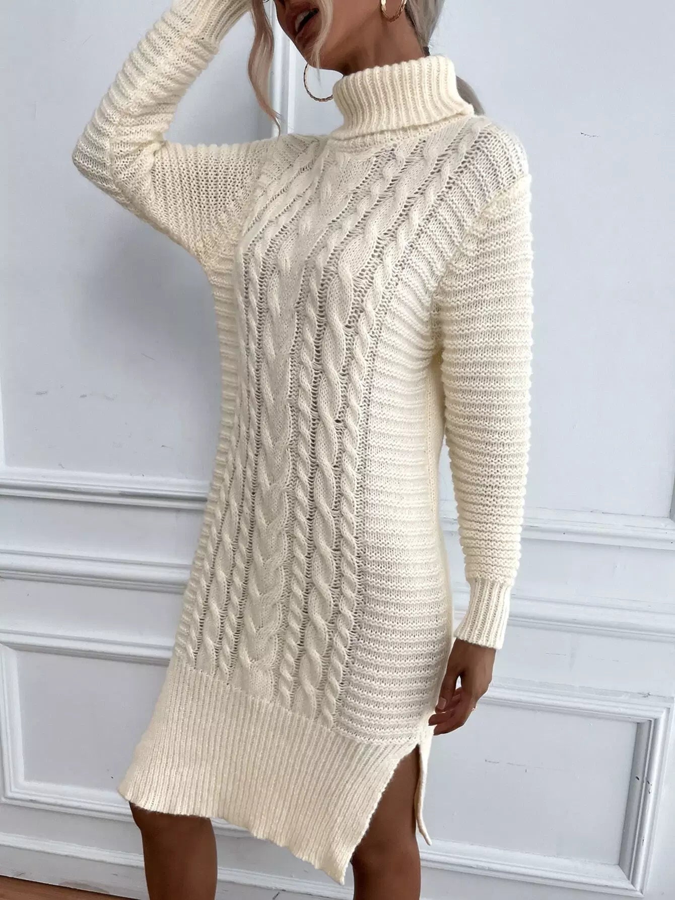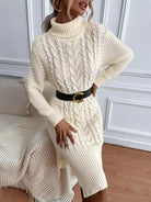فستان سترة بياقة مدورة متماسكة وحاشية مقسمة بدون حزام