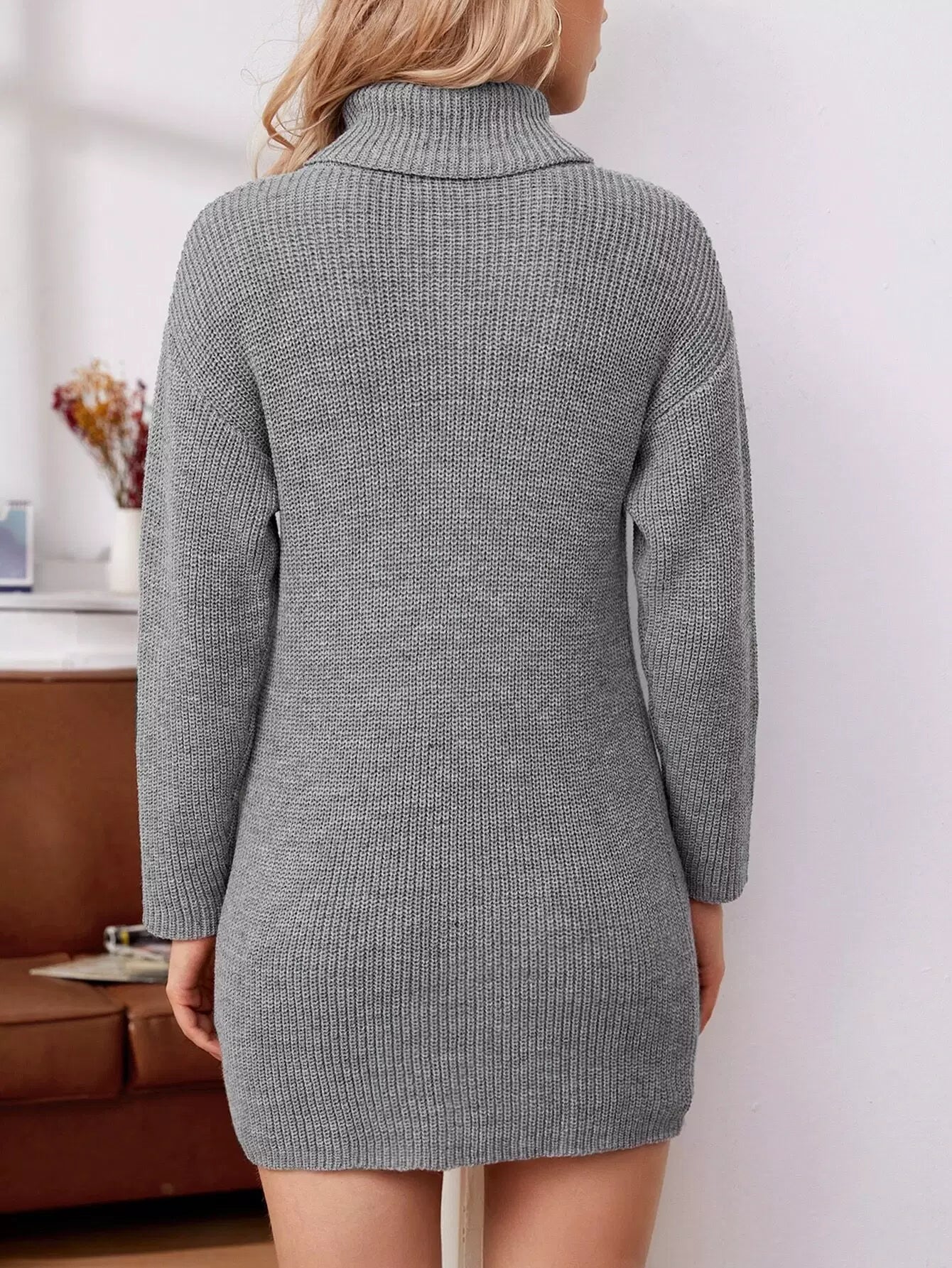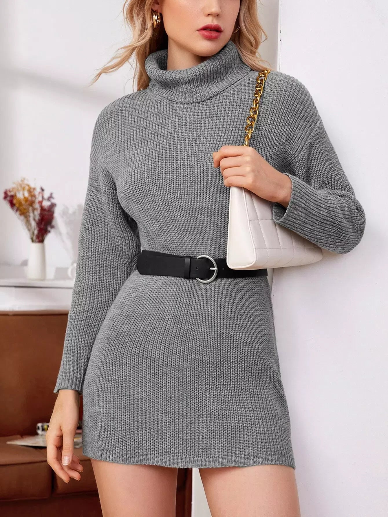 فستان سترة سادة بياقة مدورة وأكتاف منسدلة بدون حزام