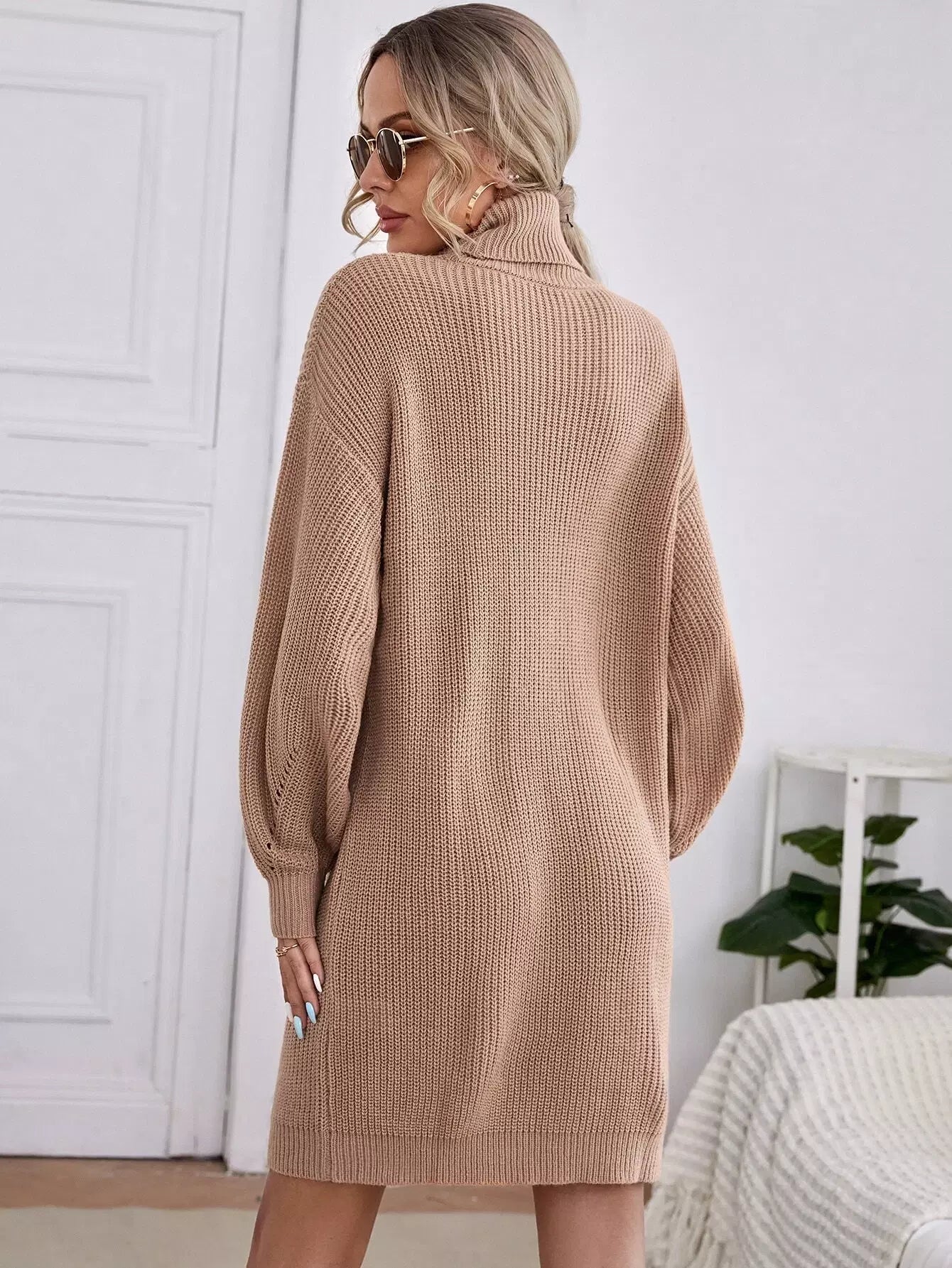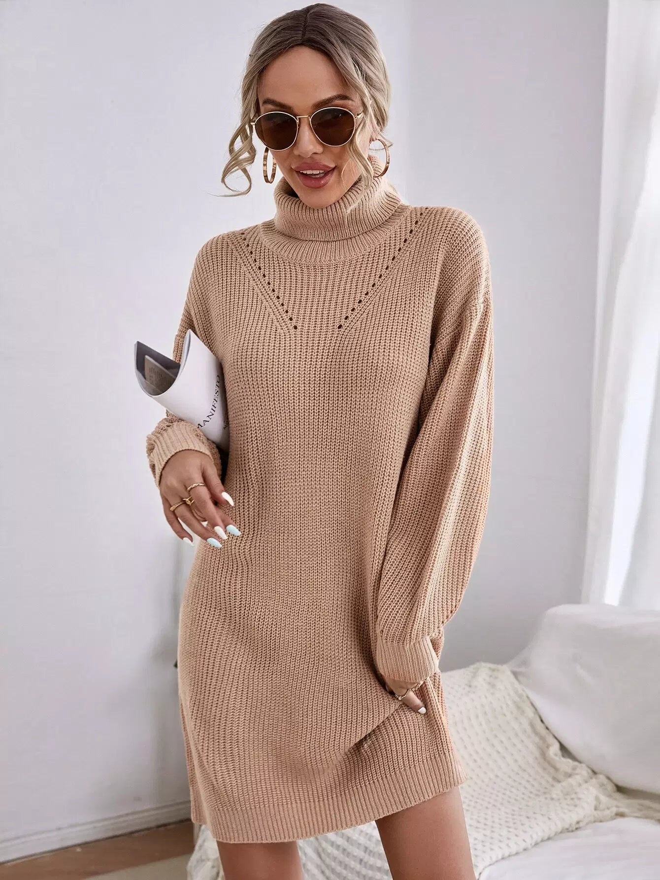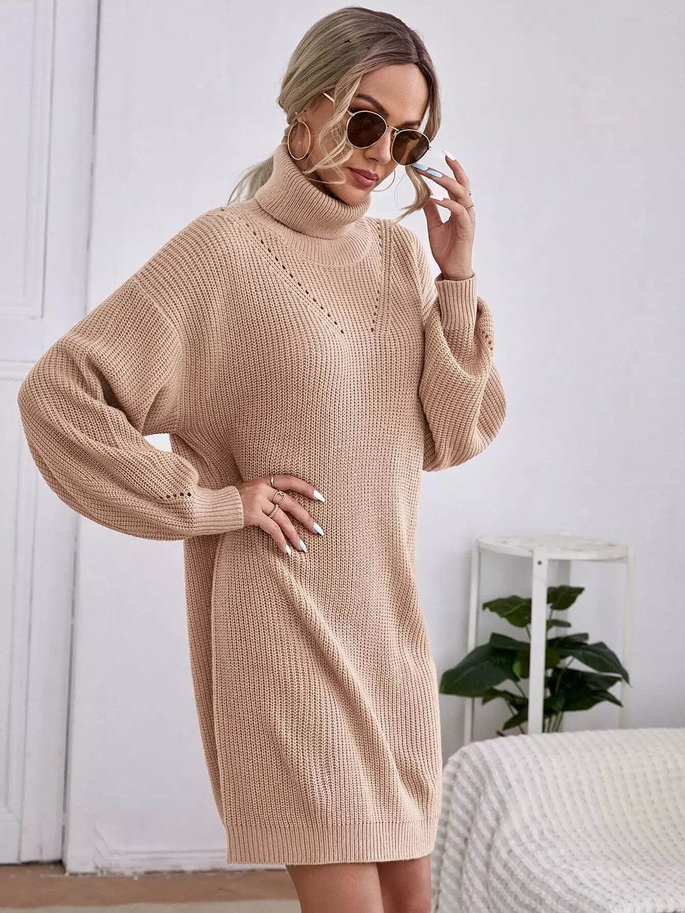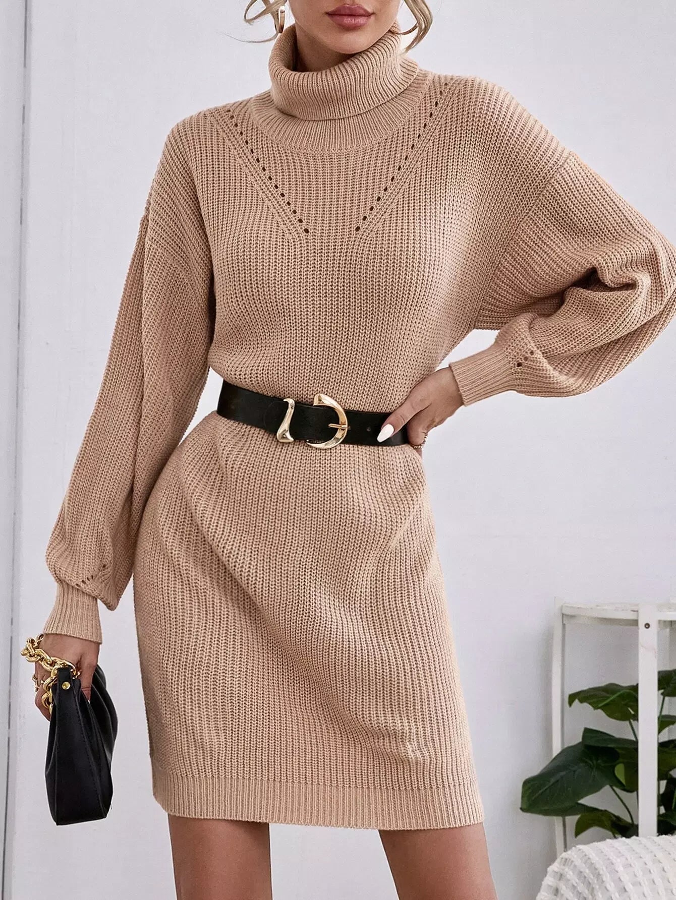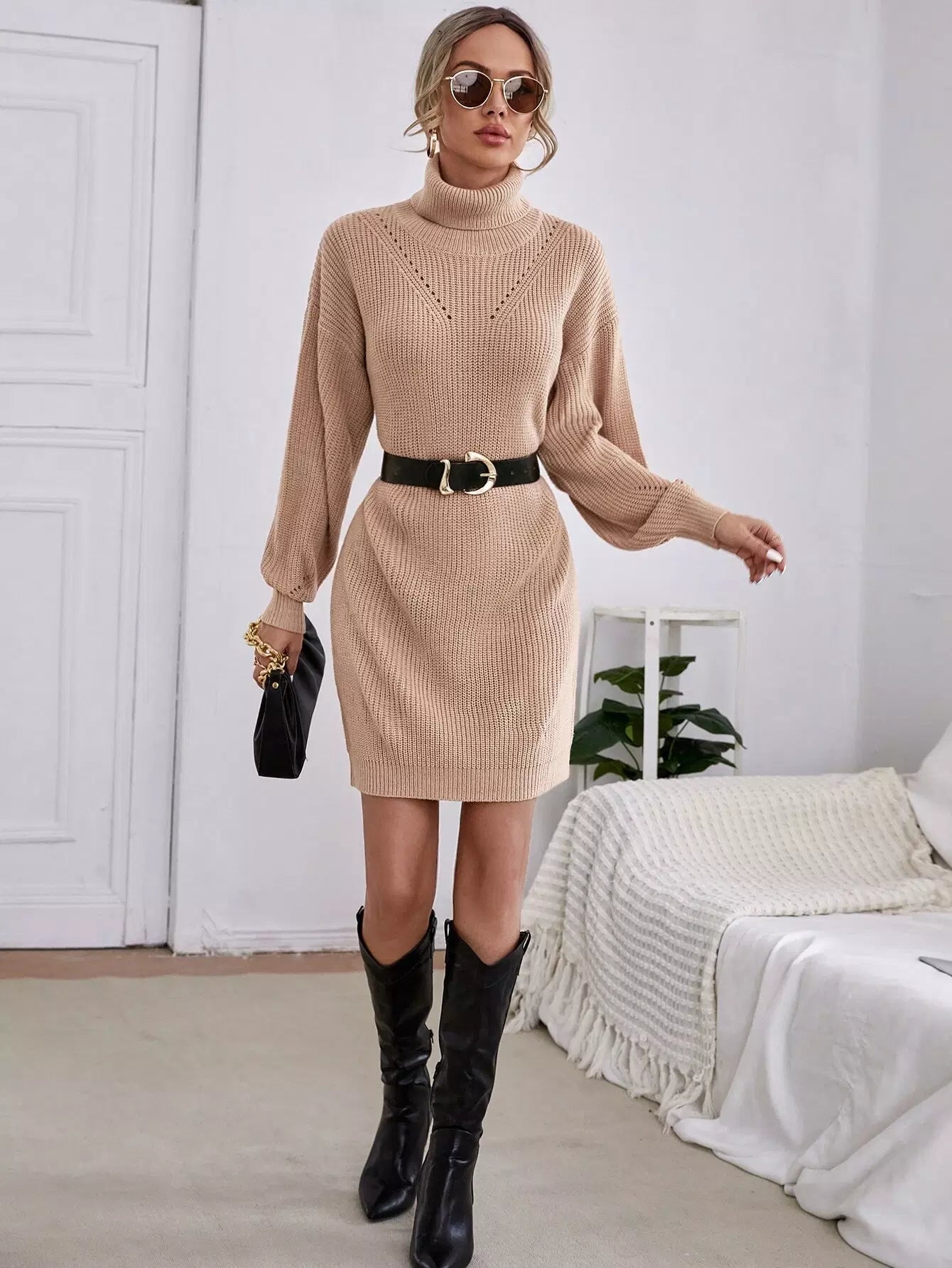 فستان بدون حزام بياقة مدورة بياقة مدورة بتفاصيل منسدلة على الكتفين