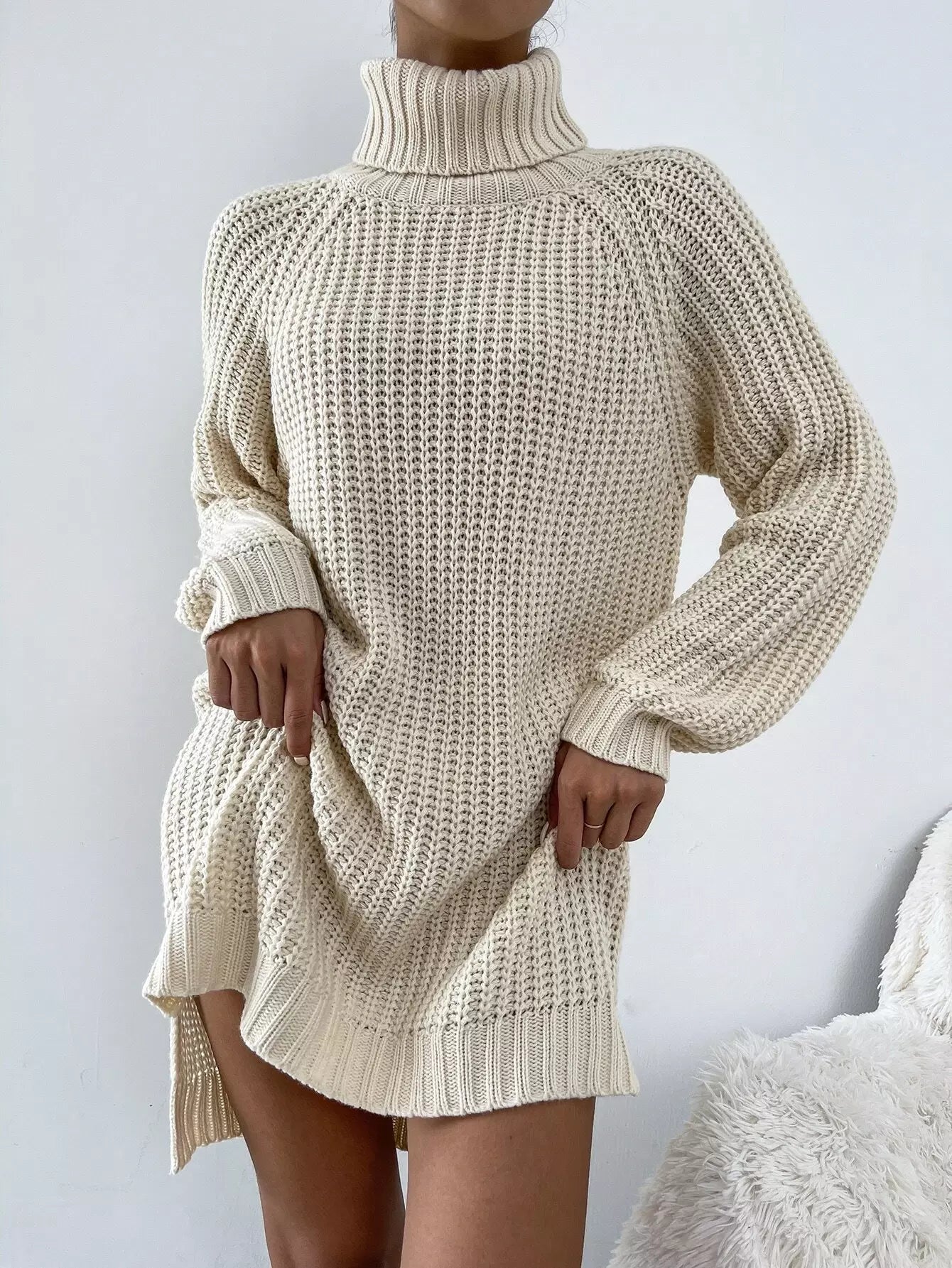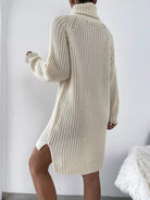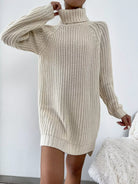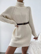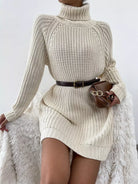 فستان بأكمام راجلان بياقة مدورة بدون حزام
