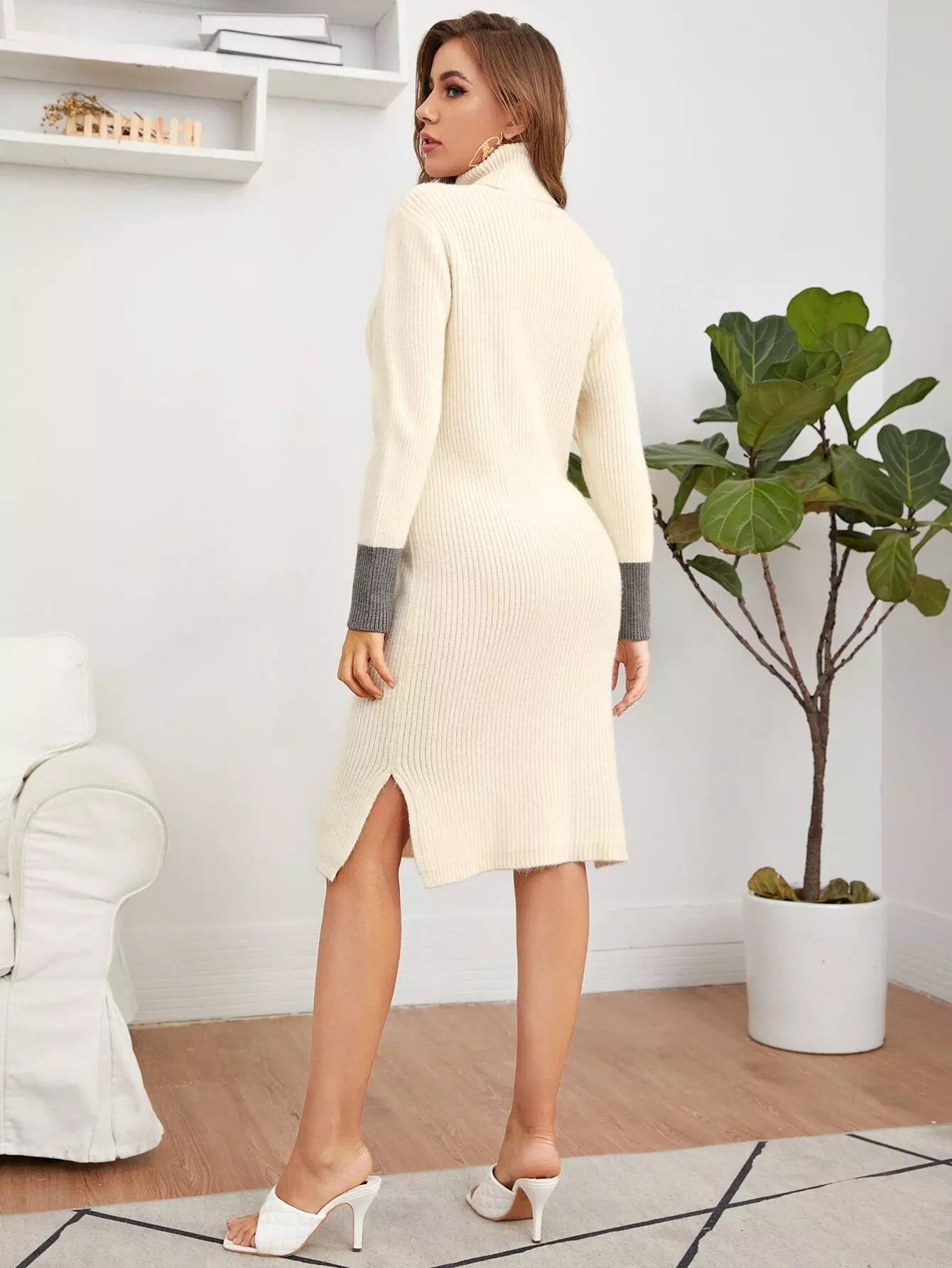 فستان سويت شيرت ضيق بياقة مدورة وحاشية مقسمة