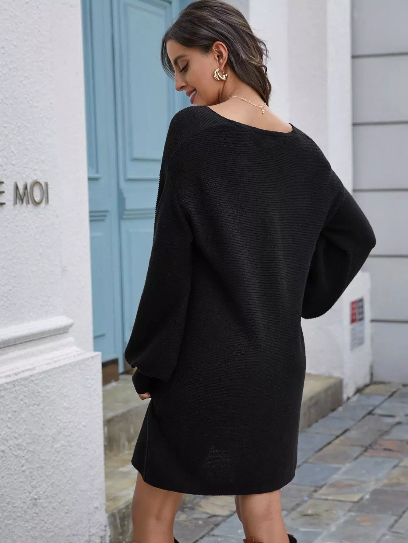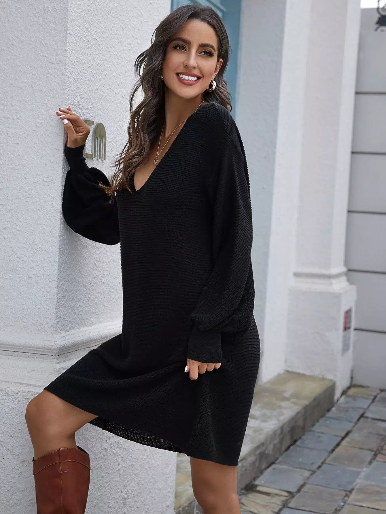 فستان بأكمام على شكل حرف V بياقة على شكل أسقف