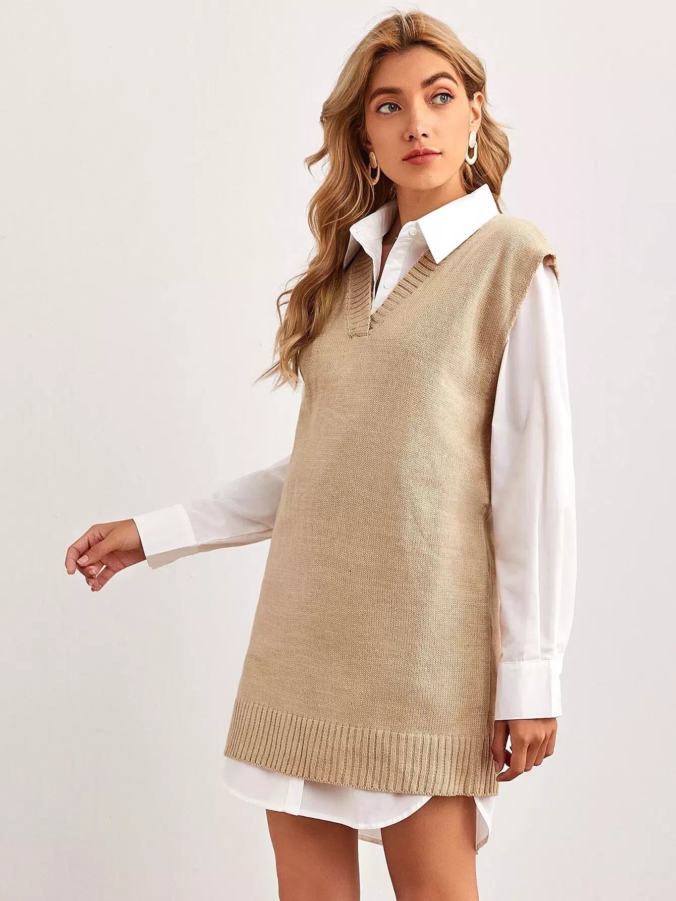 فستان بسترة برقبة على شكل حرف V بدون بلوزة بدون حزام