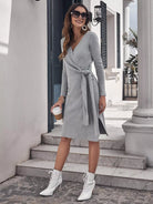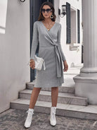 فستان بسترة بفتحة جانبية بفتحة جانبية ملفوفة بعقد ملفوفة