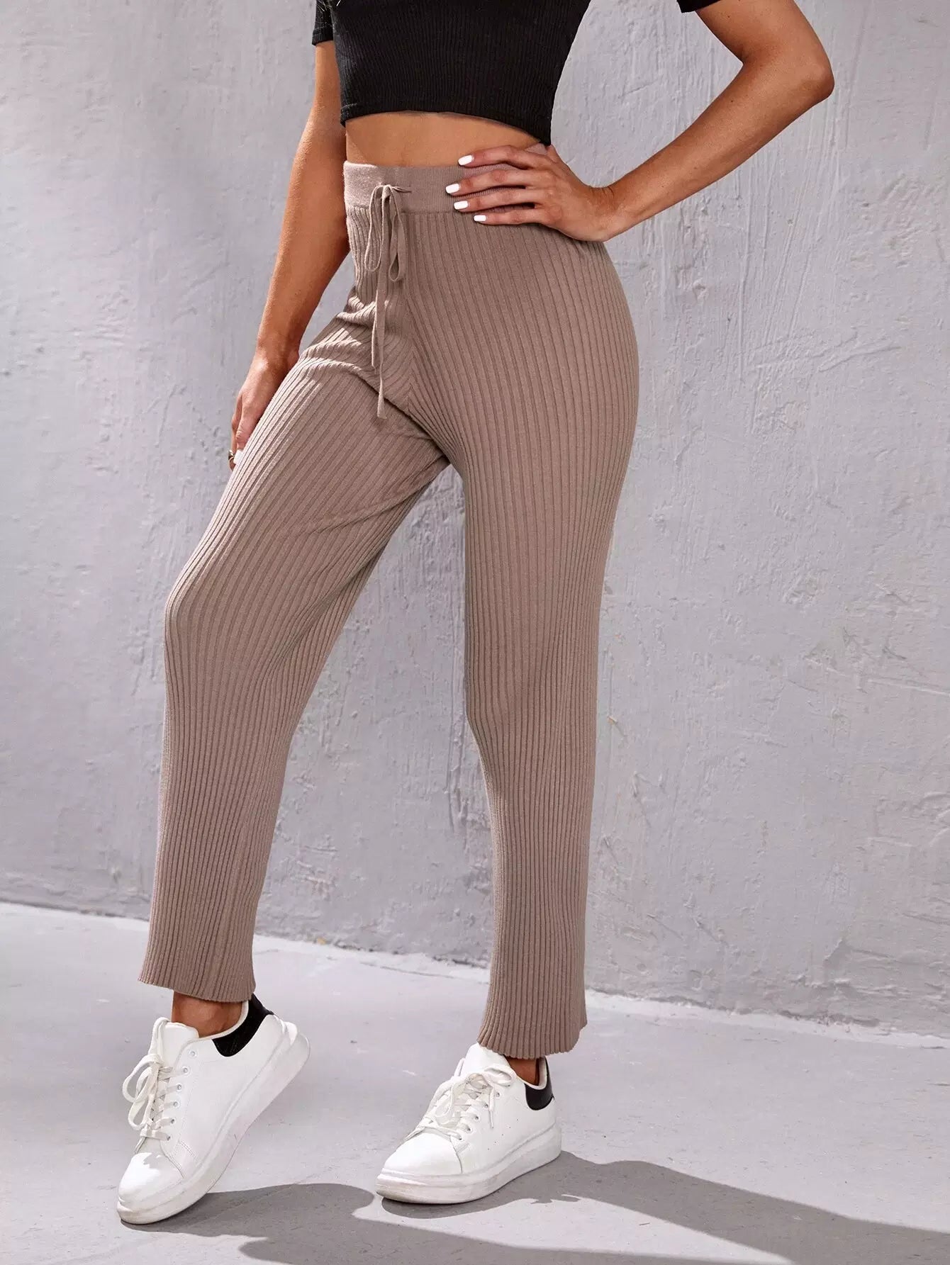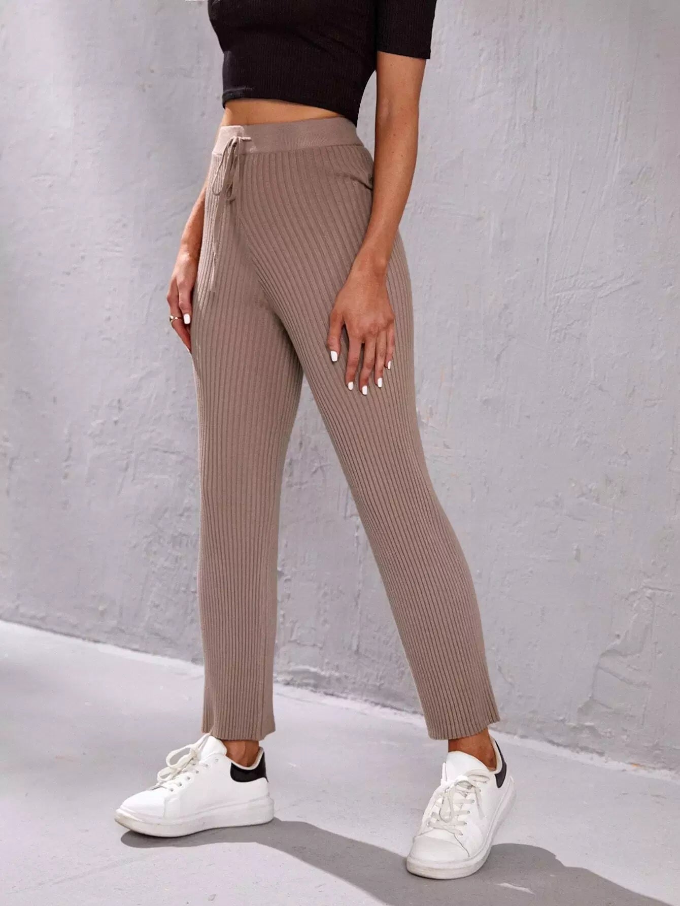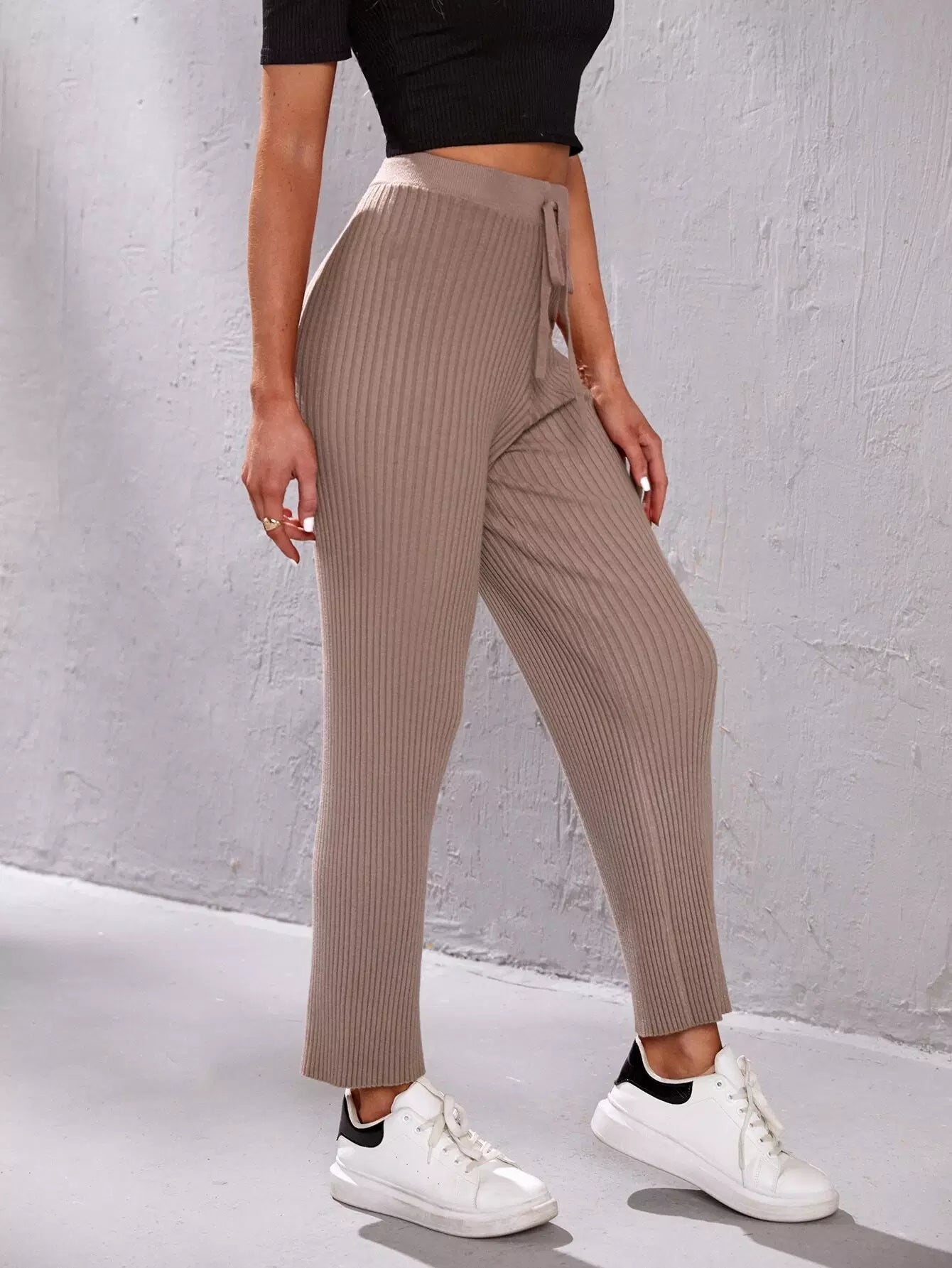 بنطلون برباط خصر مضلع متماسك ومضلع
