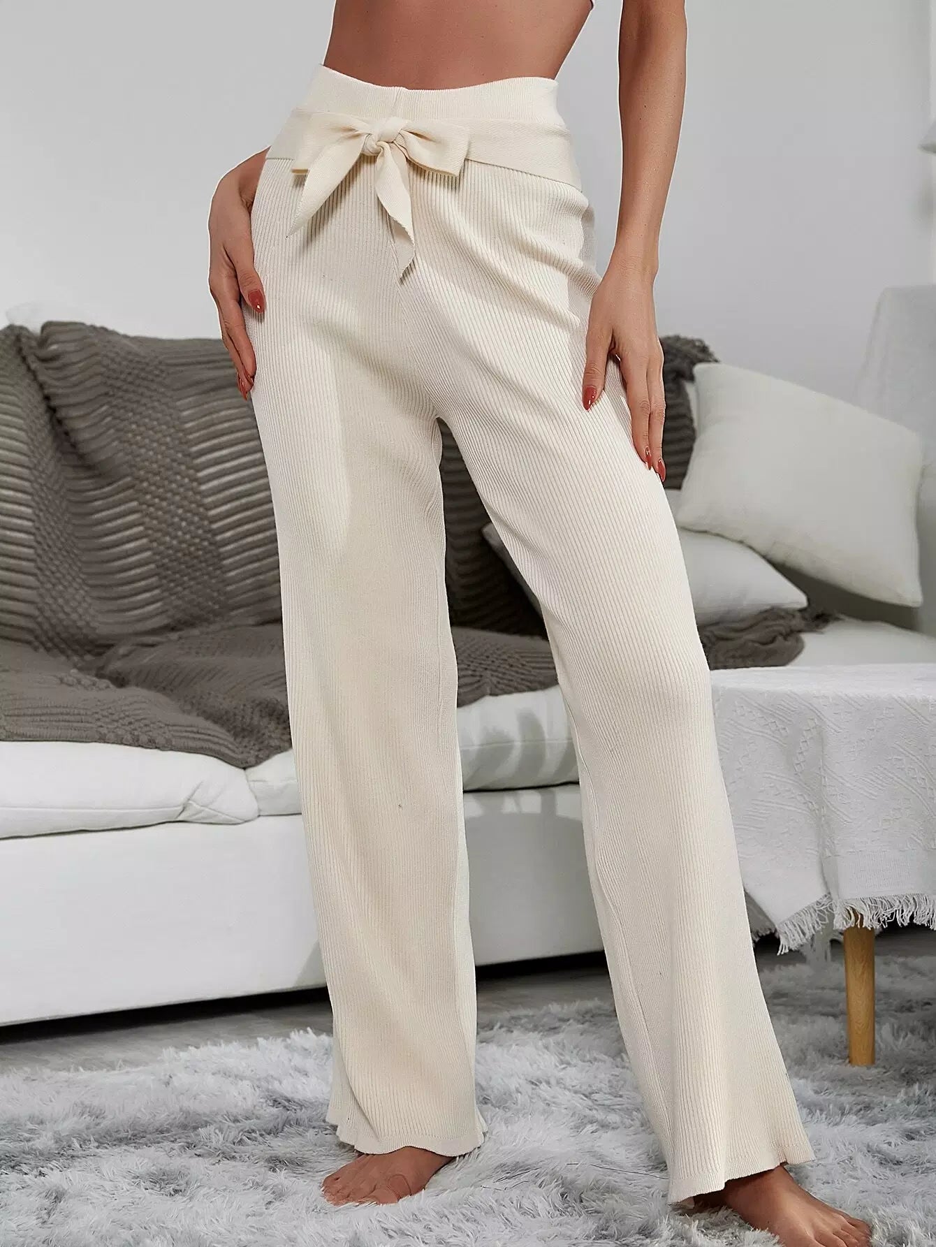 بنطلون سادة محبوك برباط أمامي محبوك بربطة أمامية