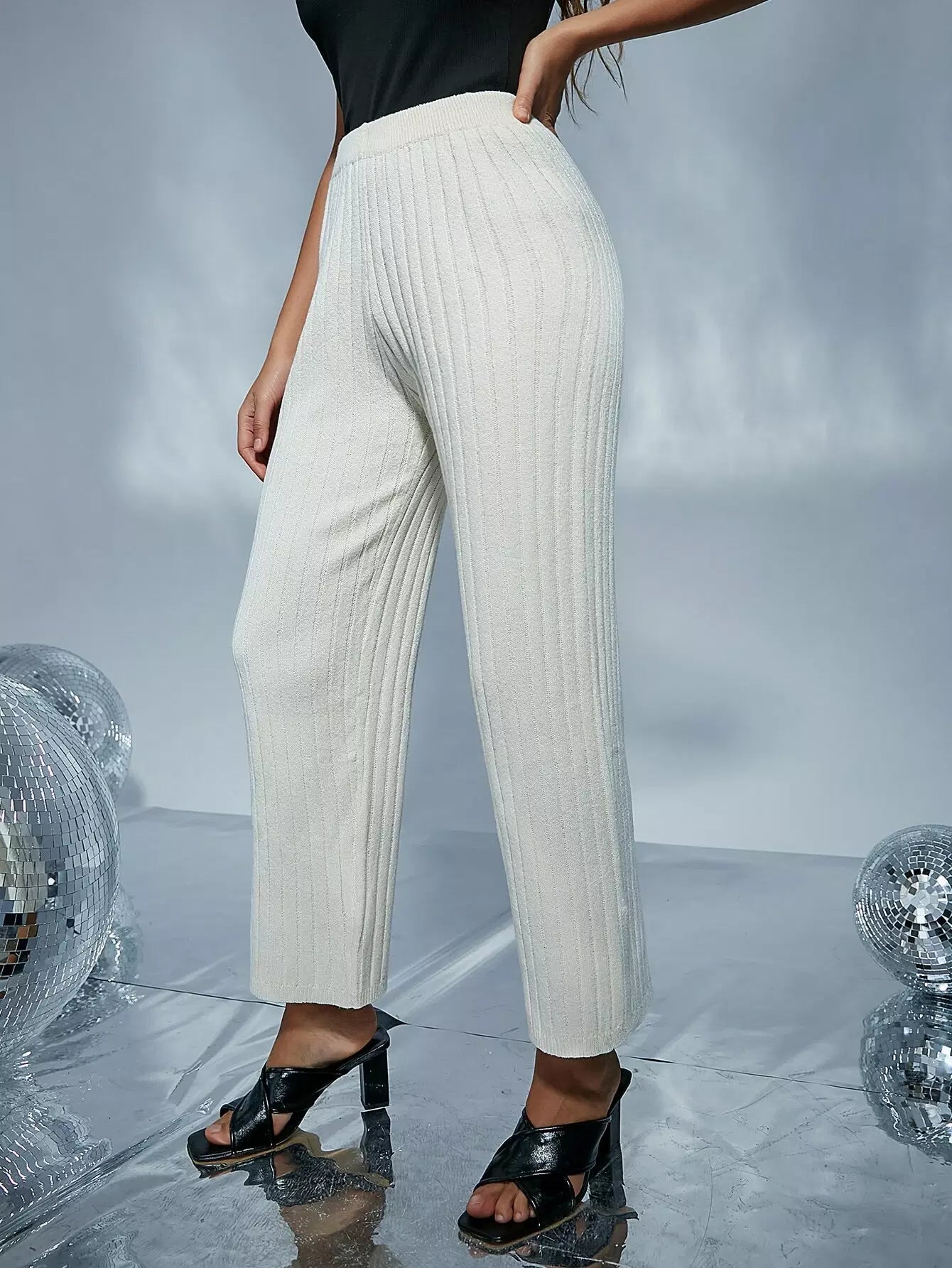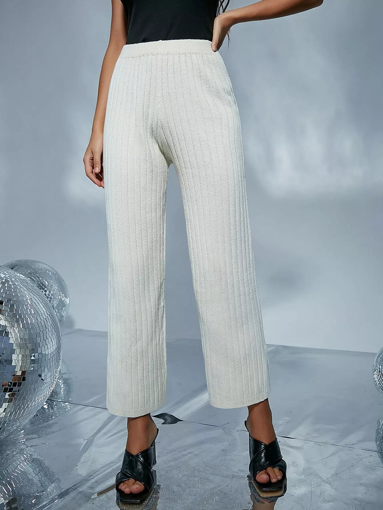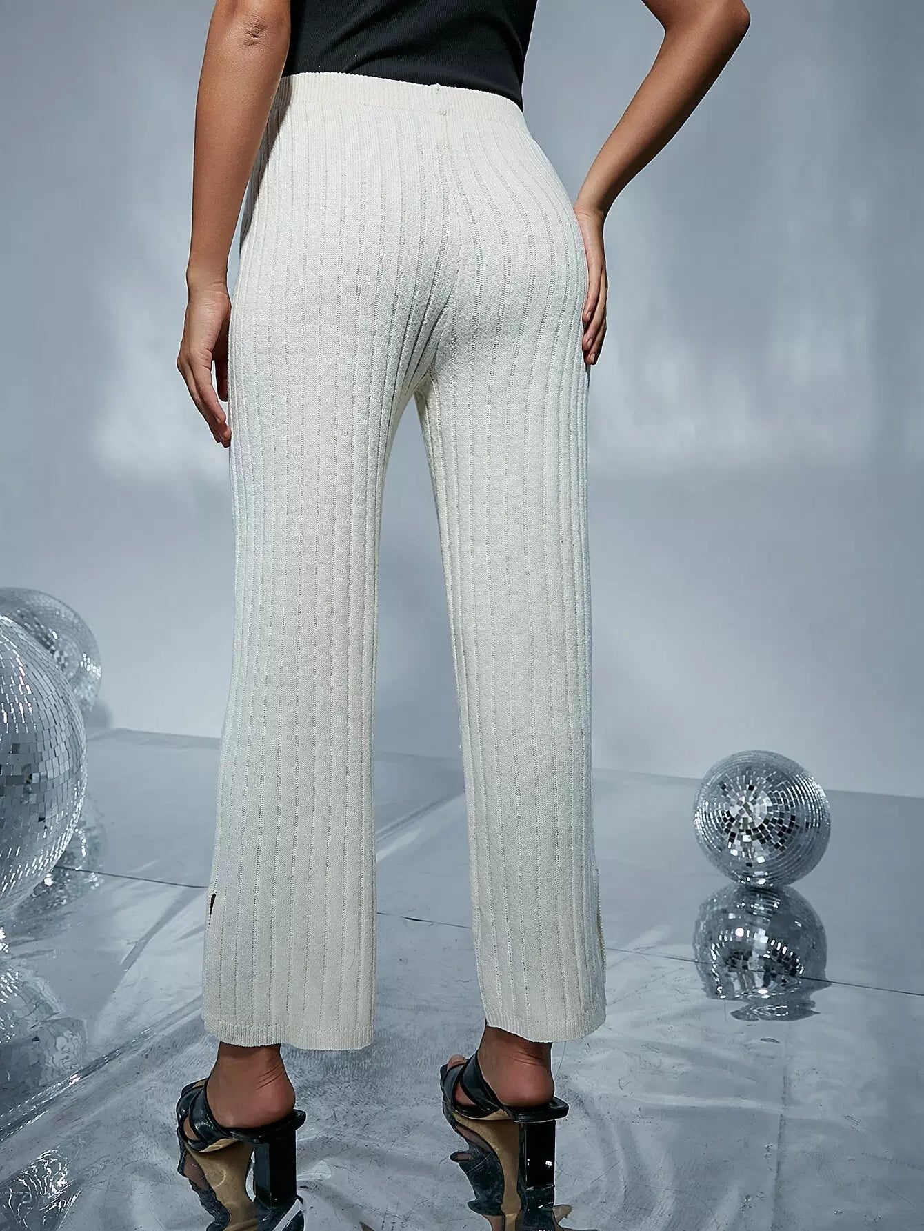 بنطلون بحافة مشقوقة مضلعة محبوكة