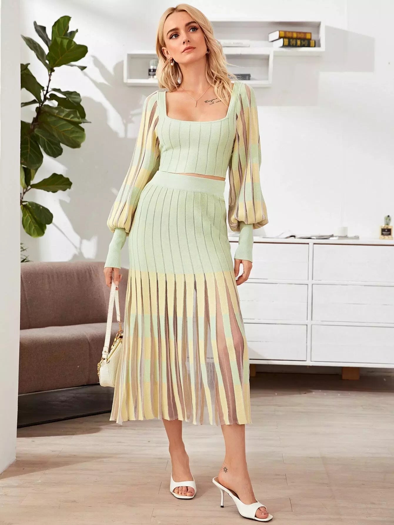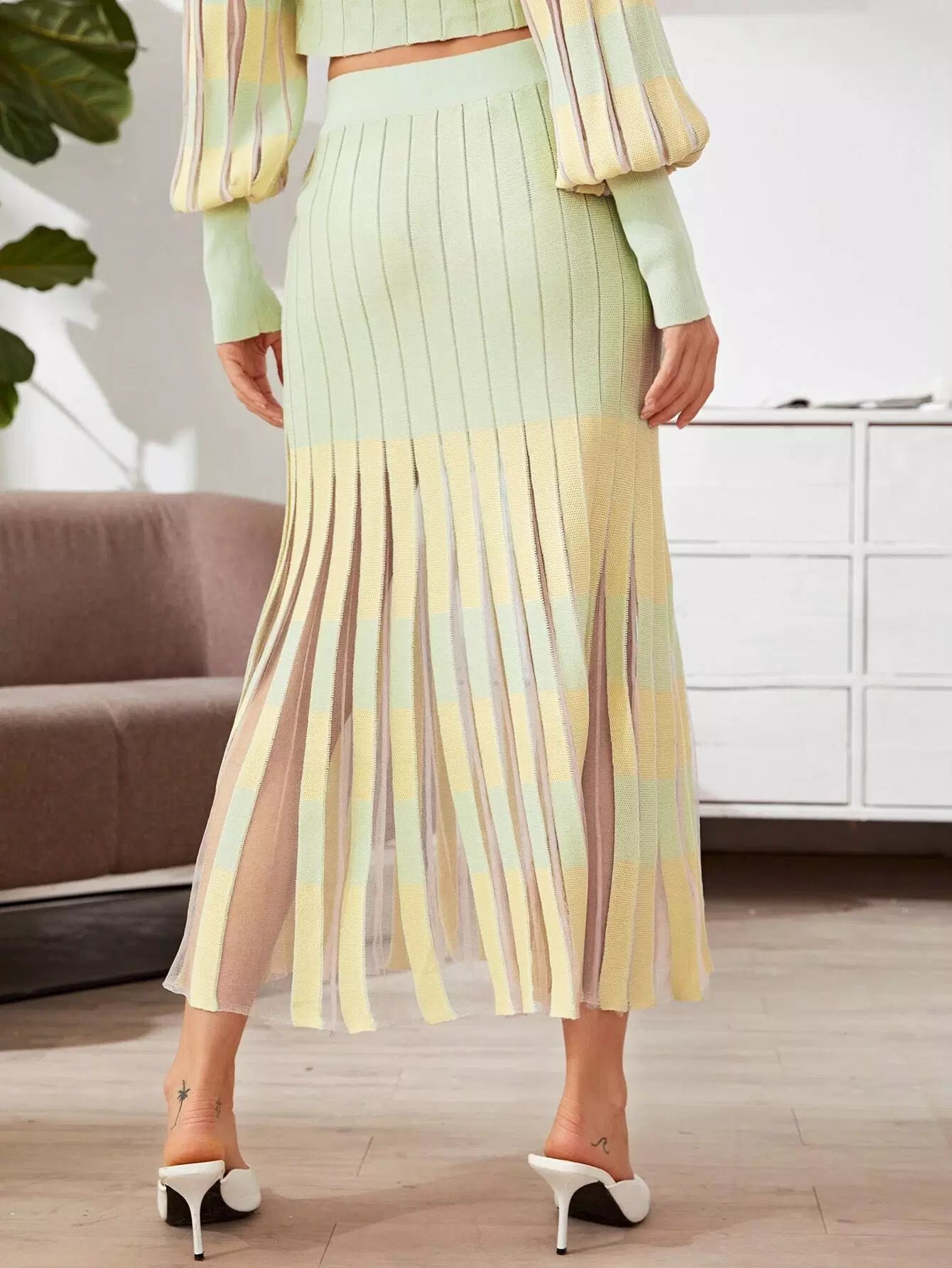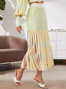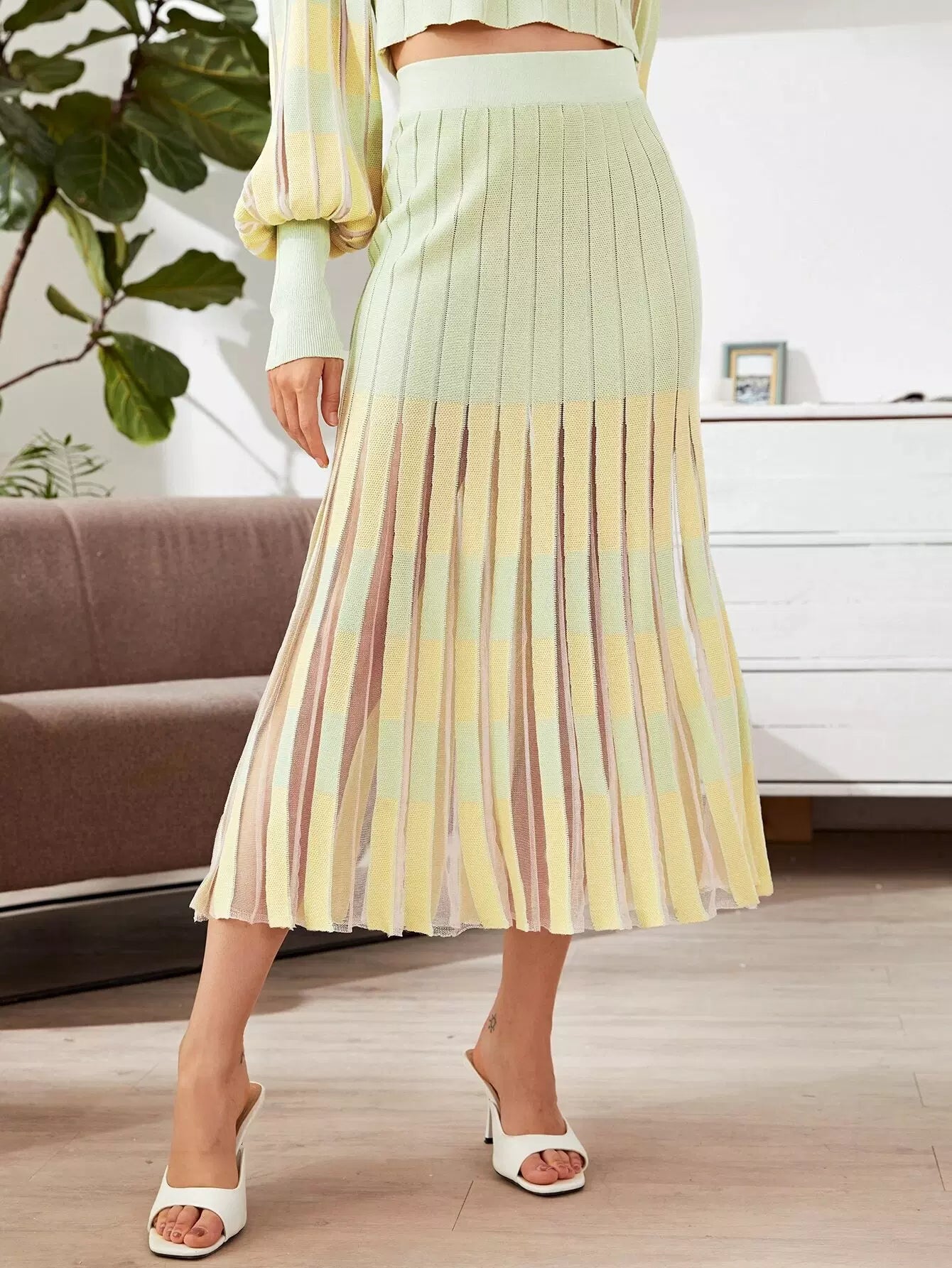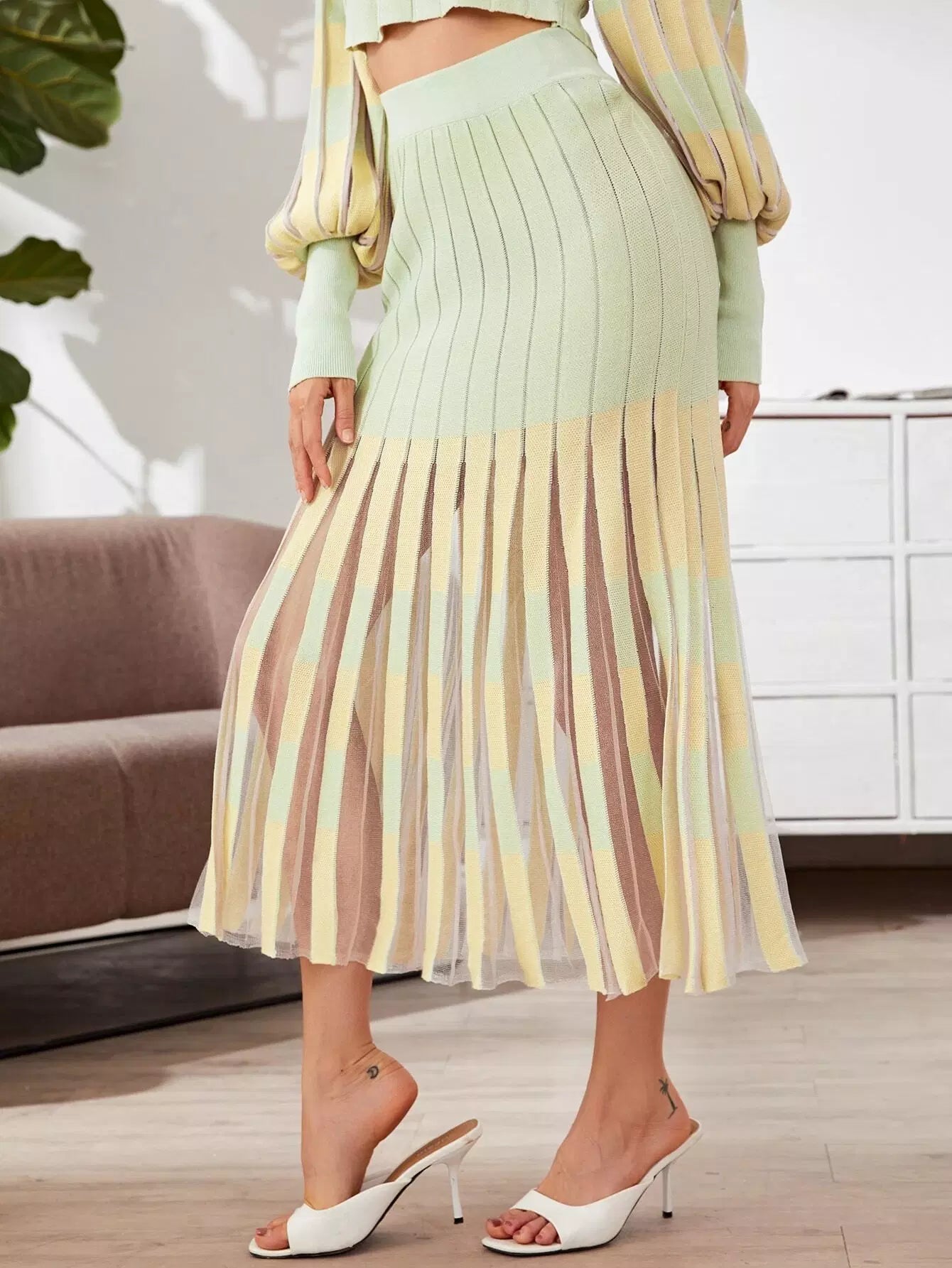 تنورة محبوكة مطوية من قماش شبكي متباين