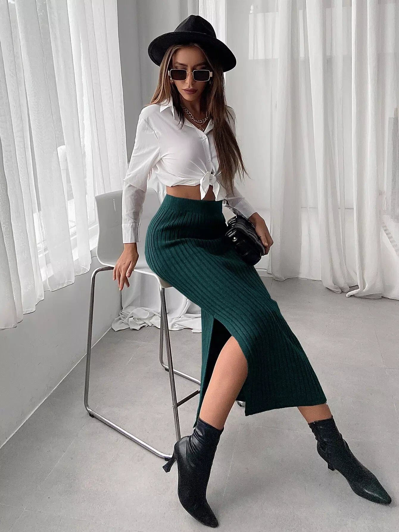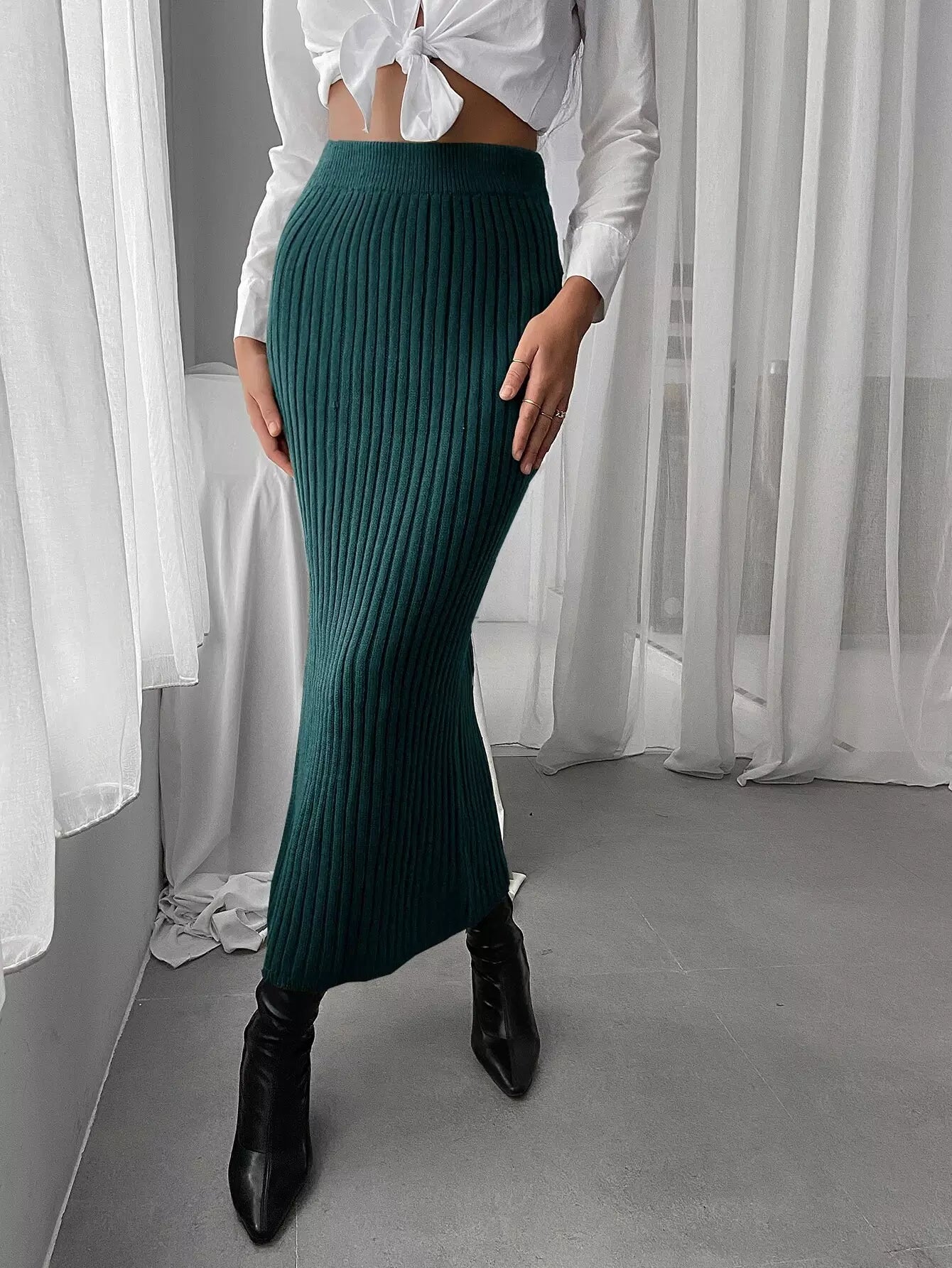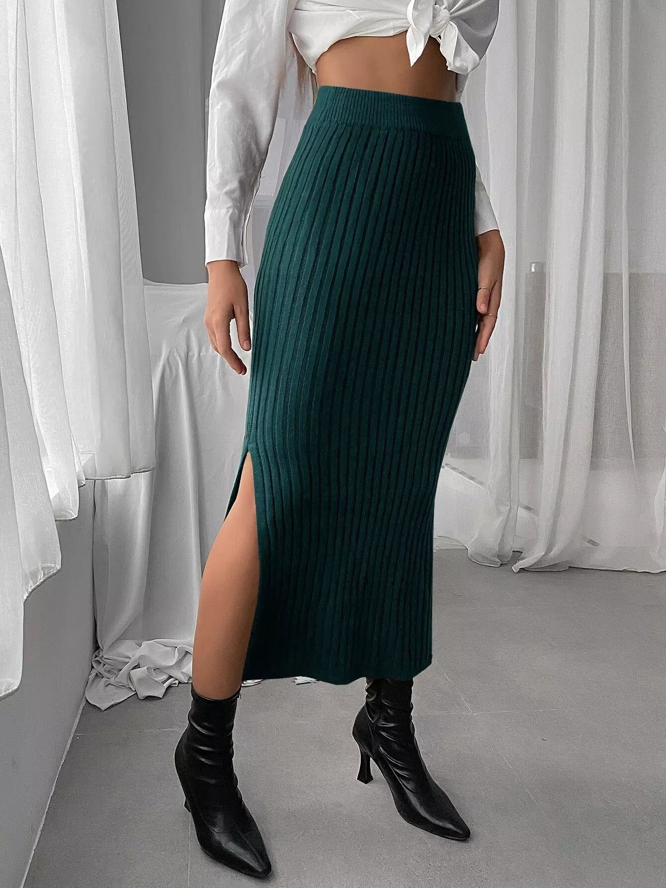 النساء - تنورة متماسكة ومضلعة بفتحة جانبية