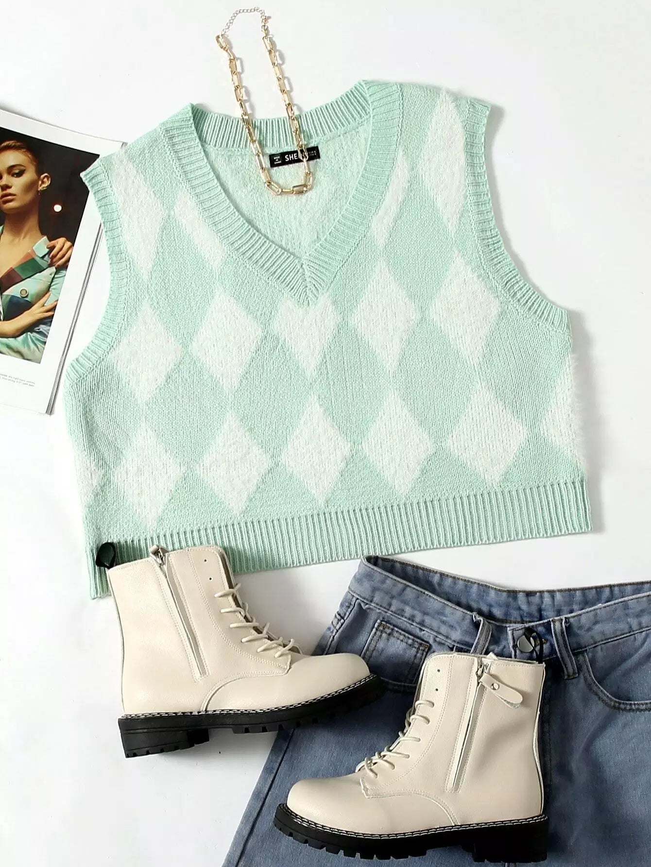 النساء - سترة سترة بنمط Argyle