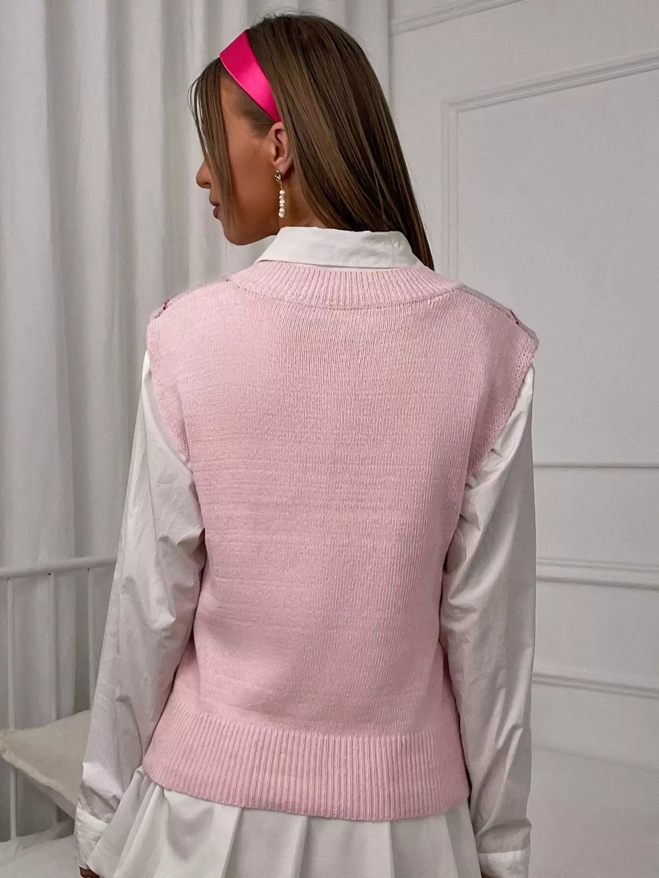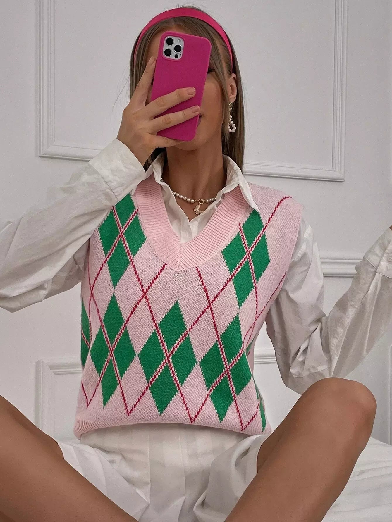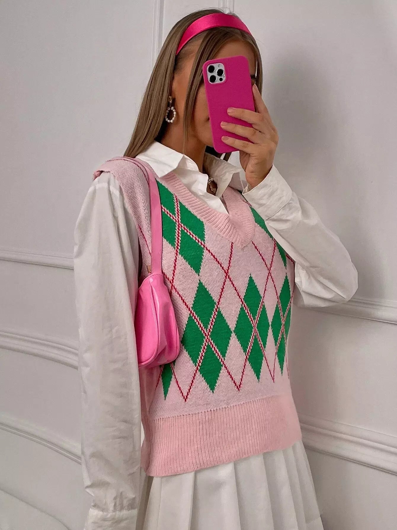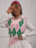 بلوزة محبوكة بنقشة أرجيل برقبة على شكل V