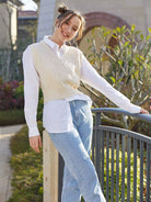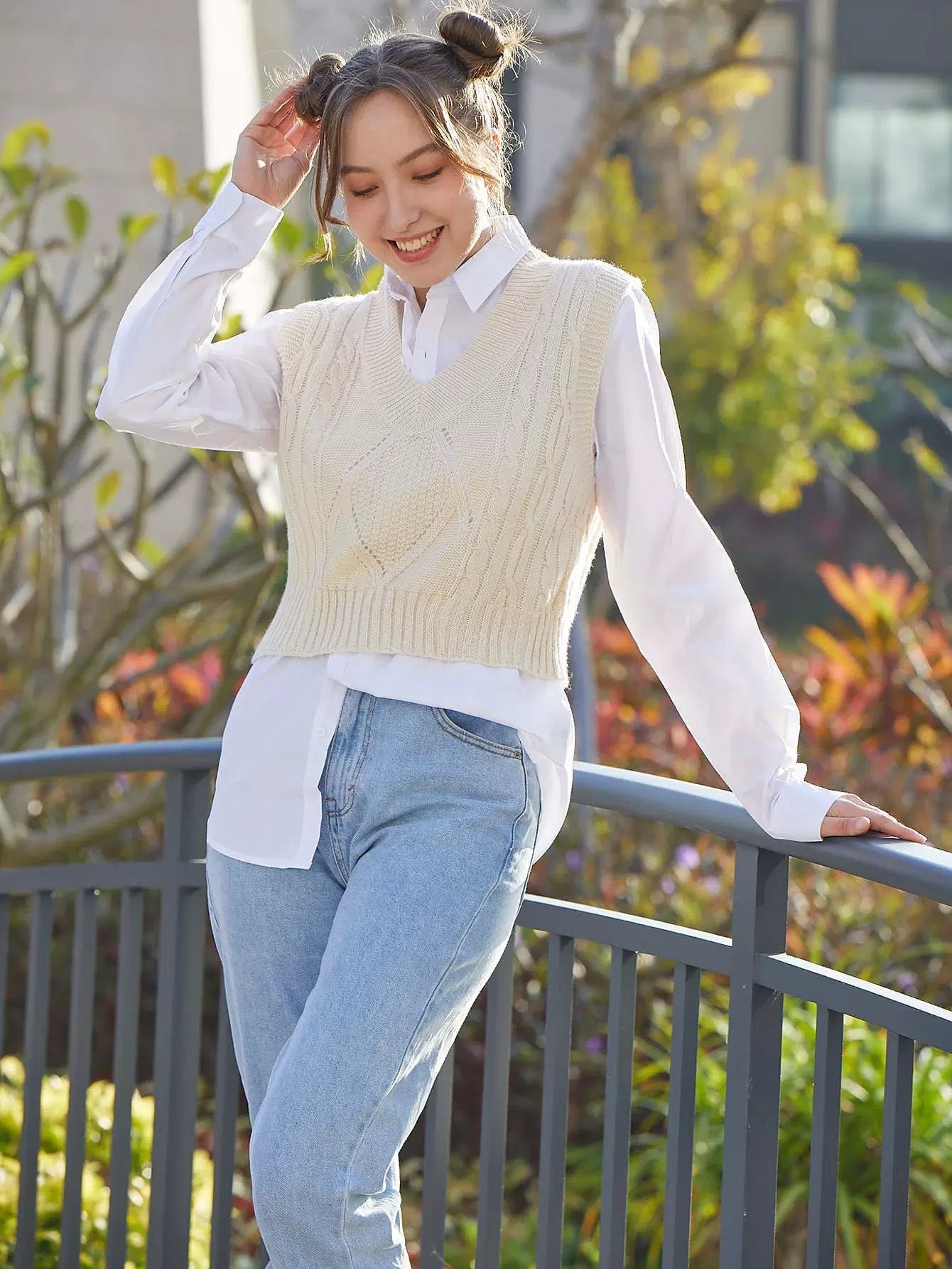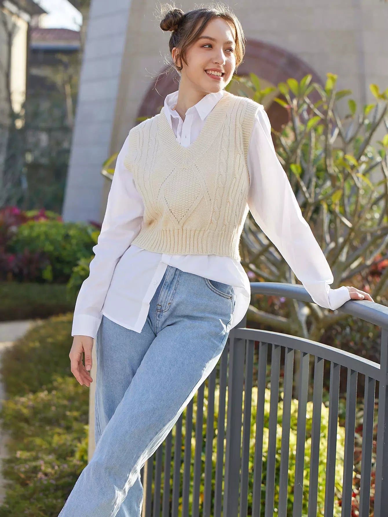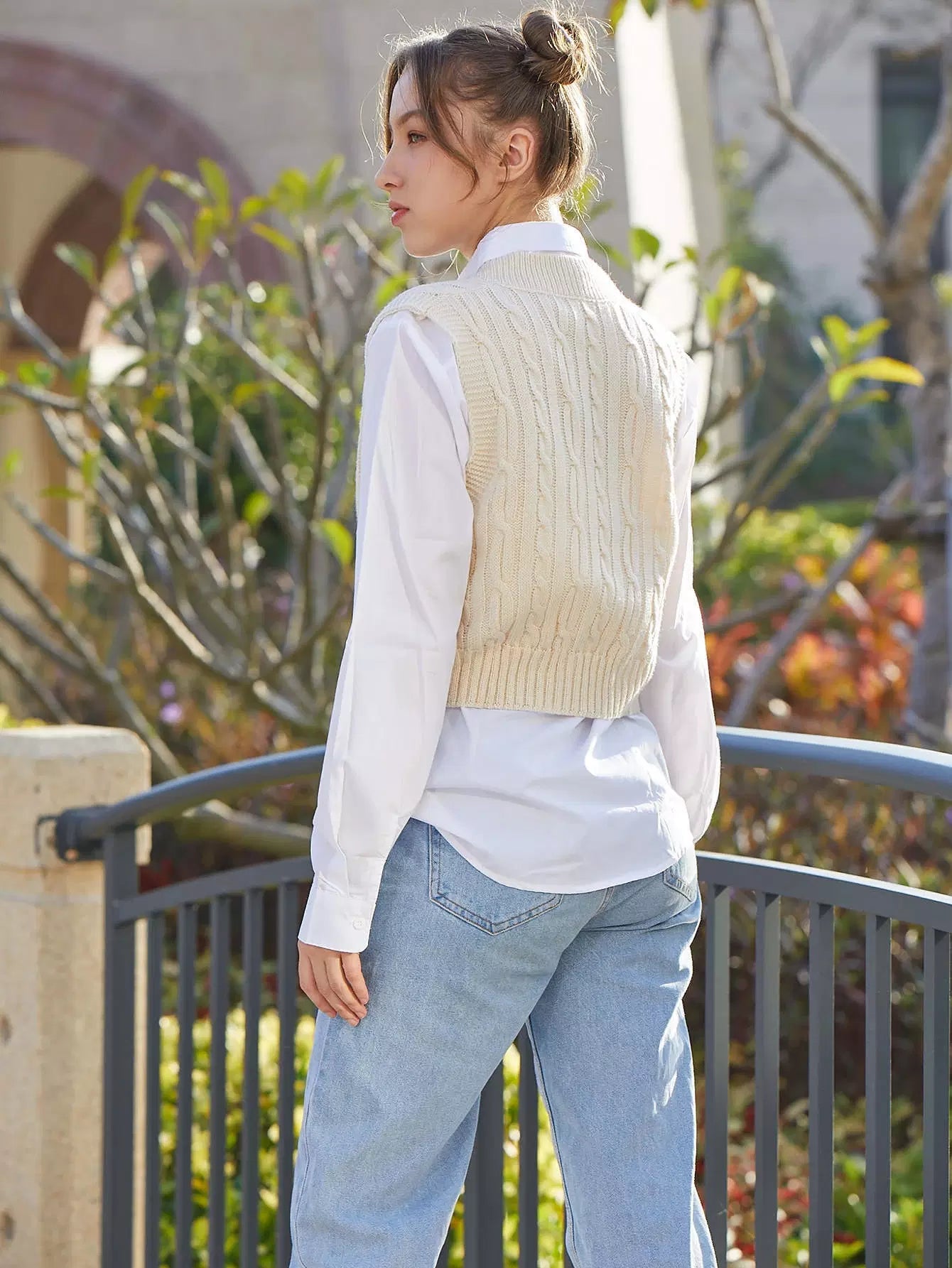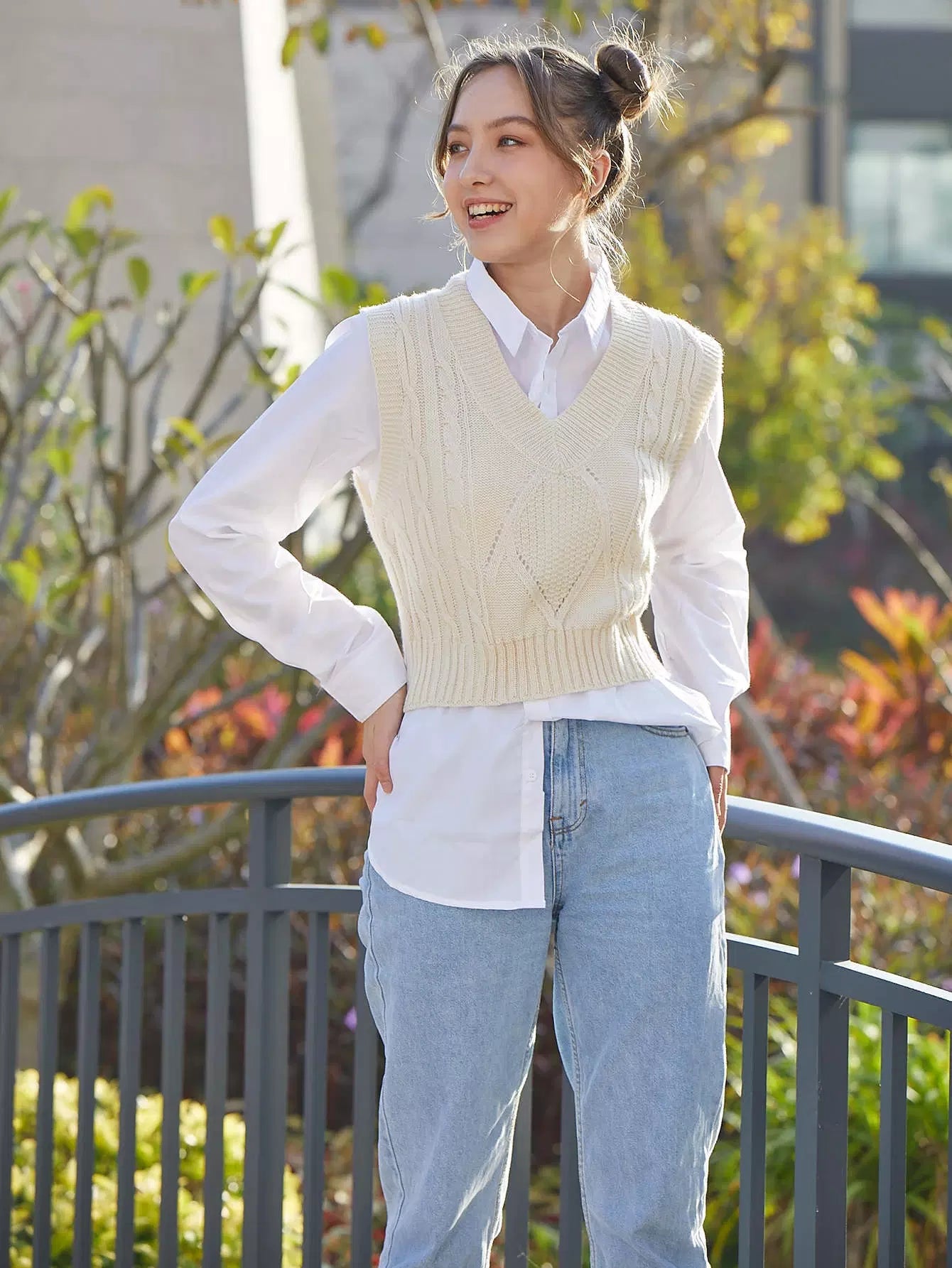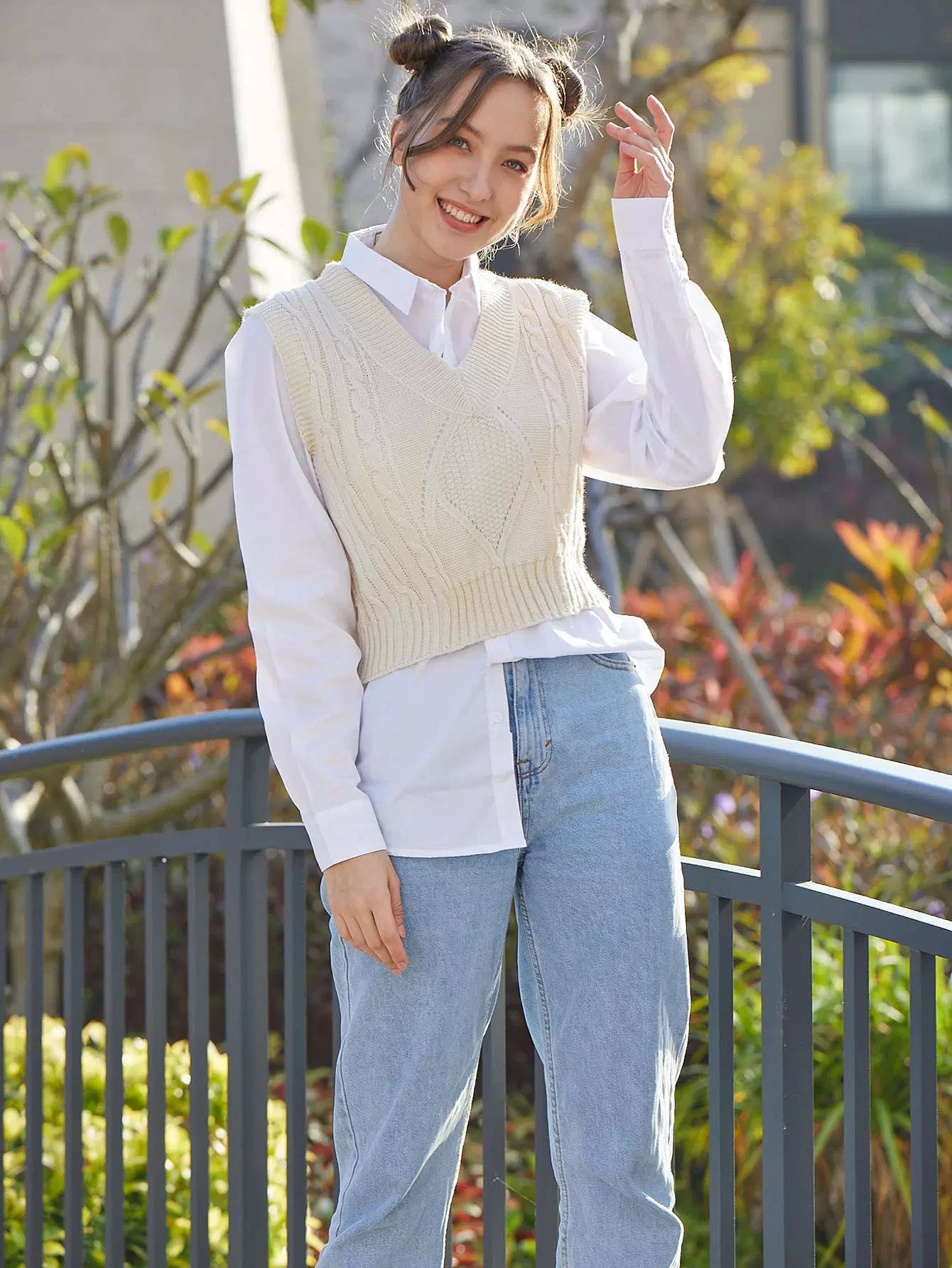 سترة صوفية سادة محبوكة بكابلات بدون بلوزة