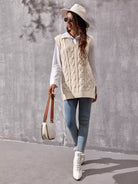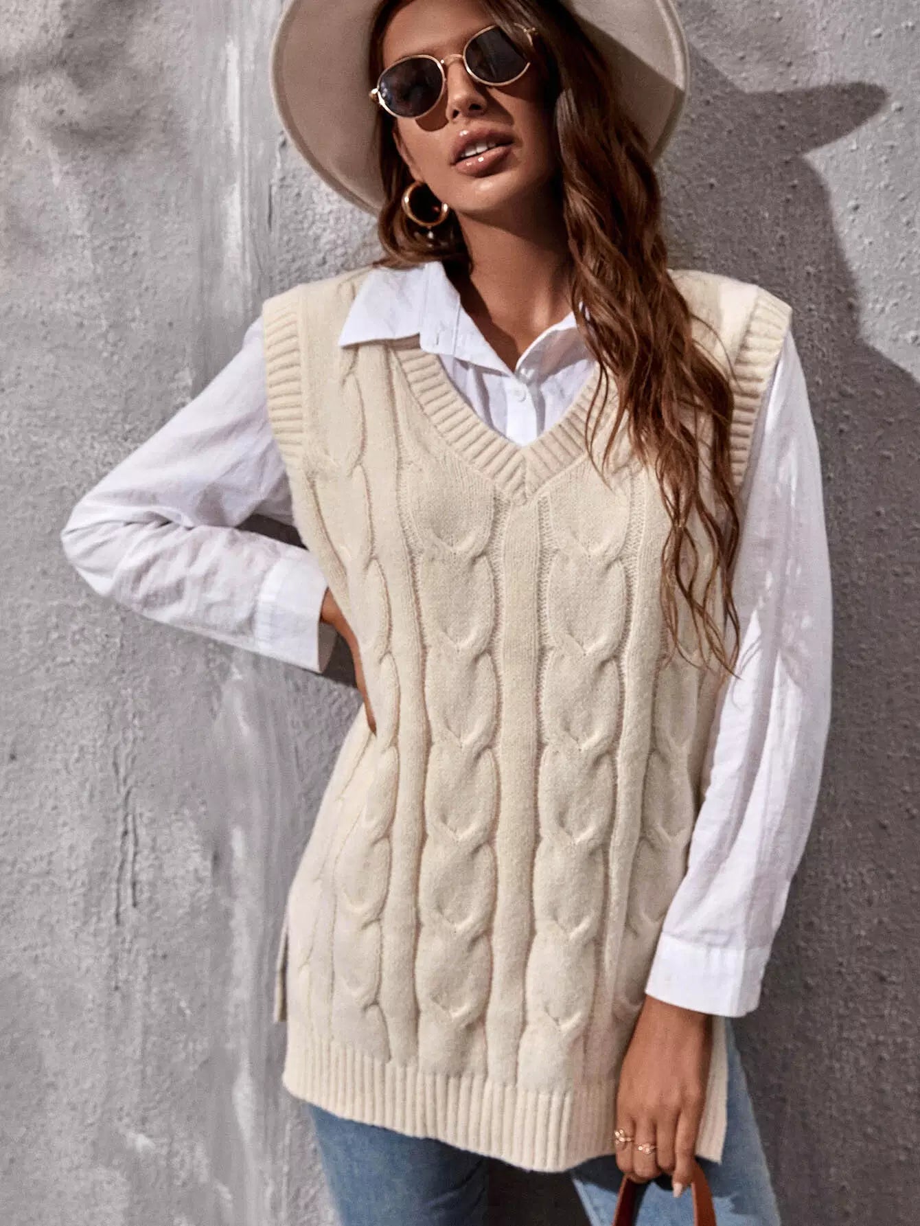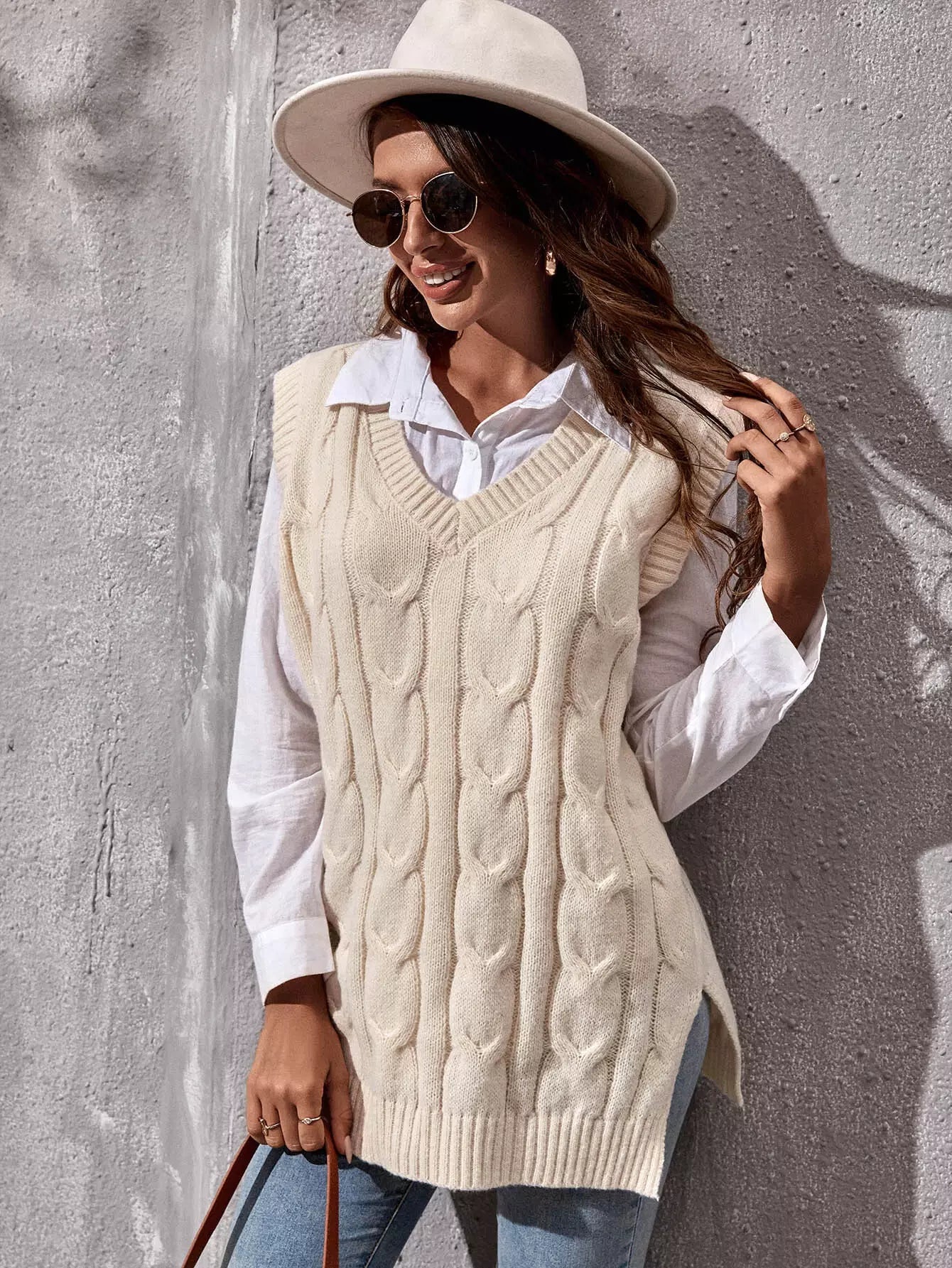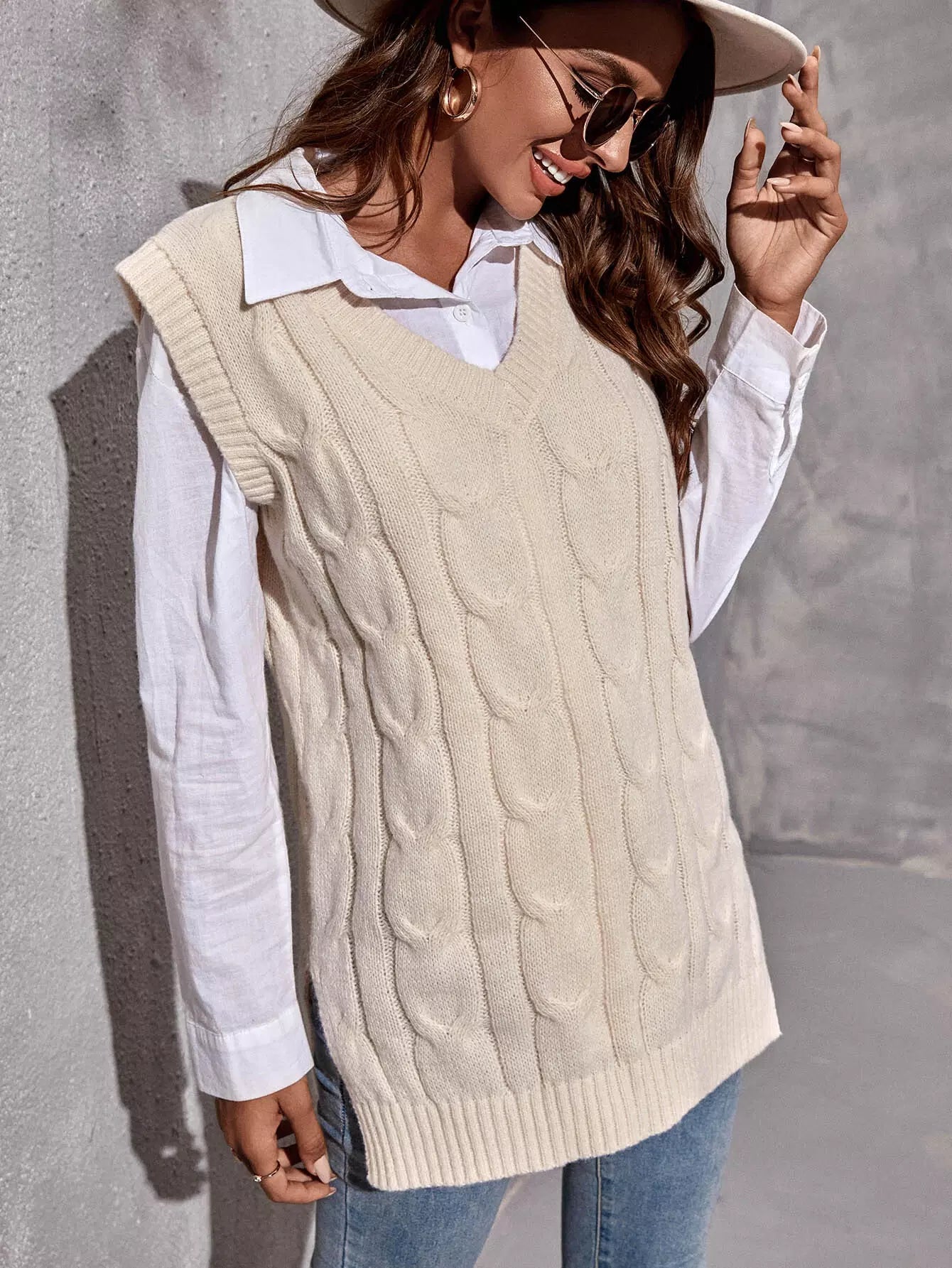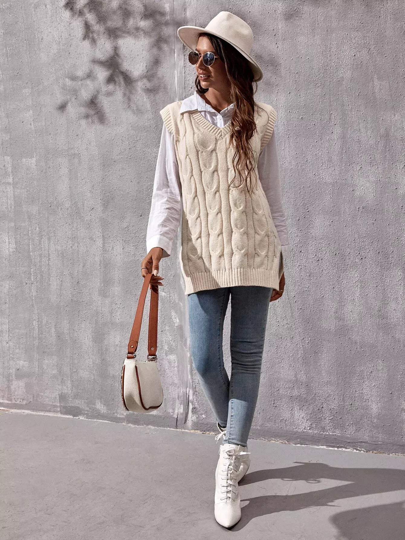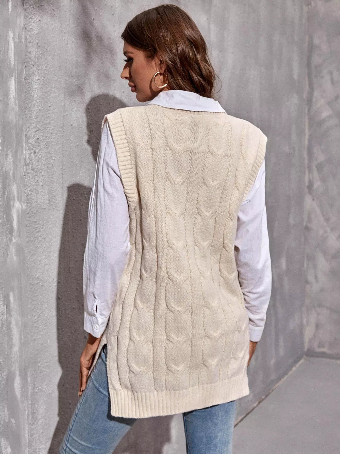 سترة كنزة بحاشية كبلية محبوكة منقسمة الحواف بدون بلوزة