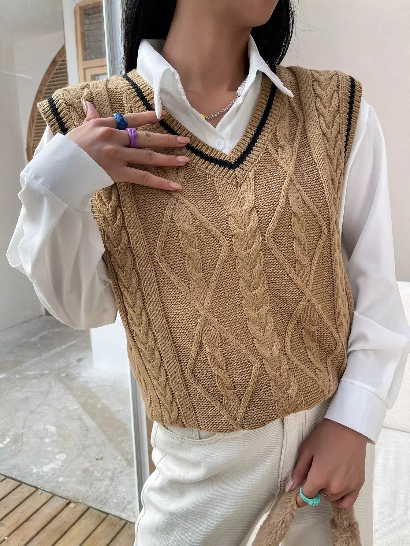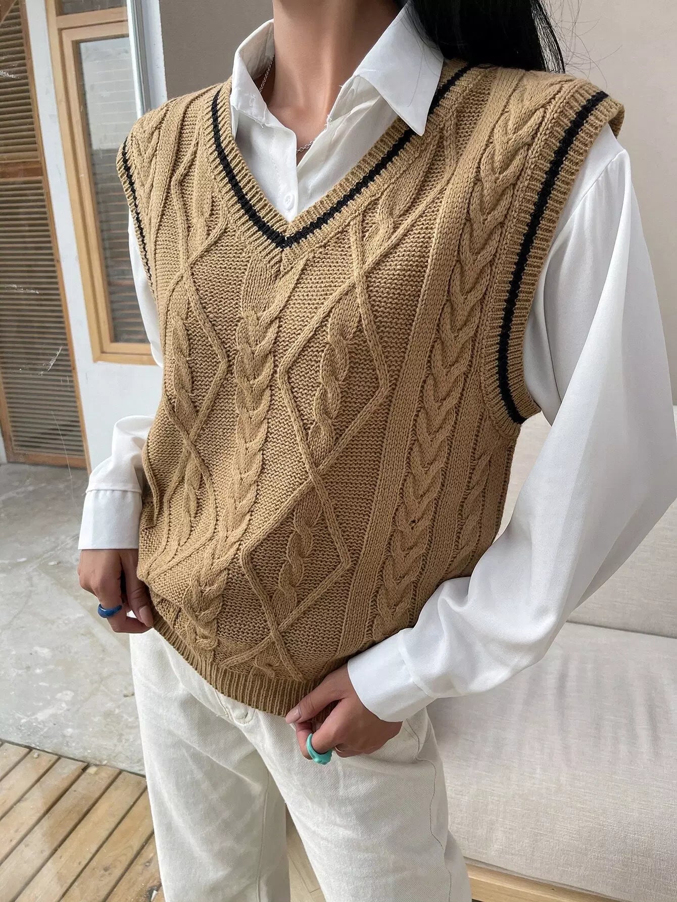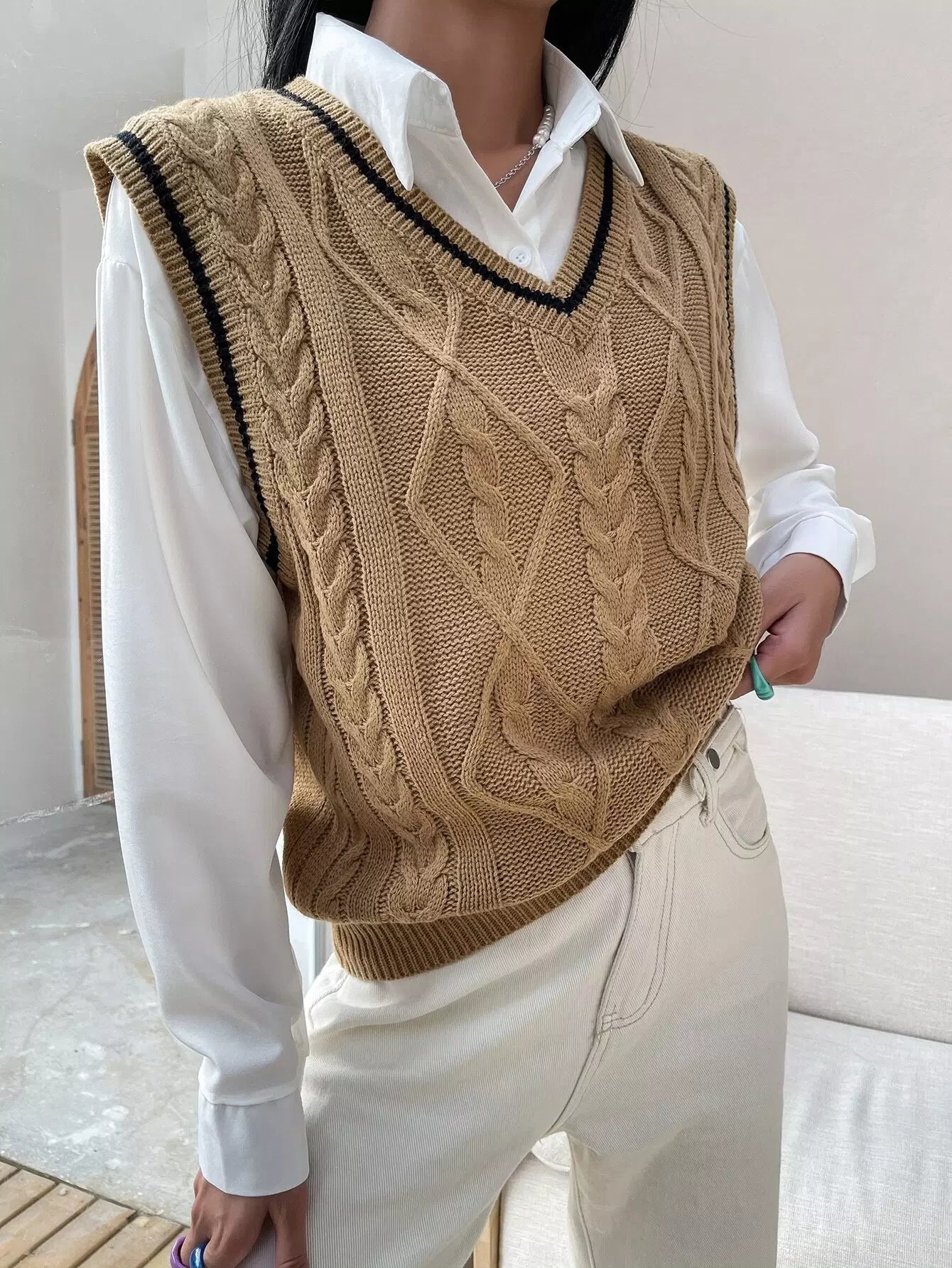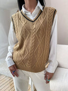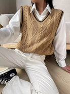 سترة كنزة بحياكة كبلية مخططة بدون بلوزة