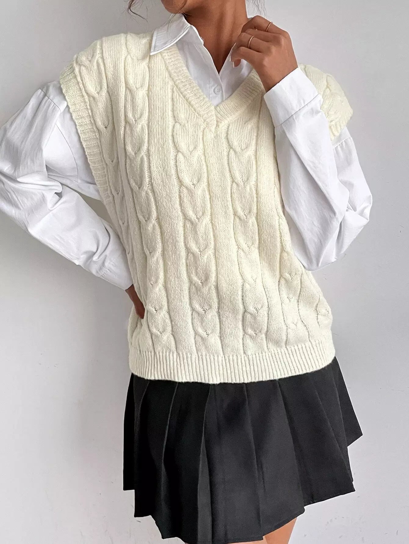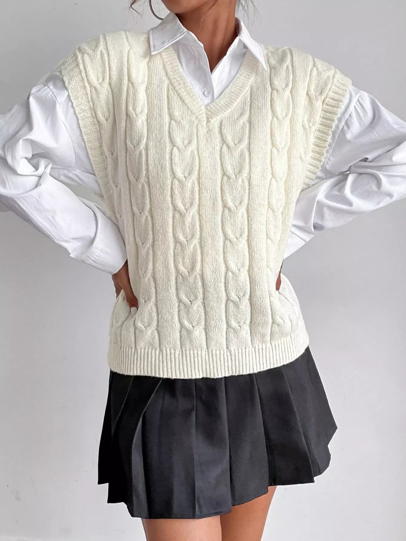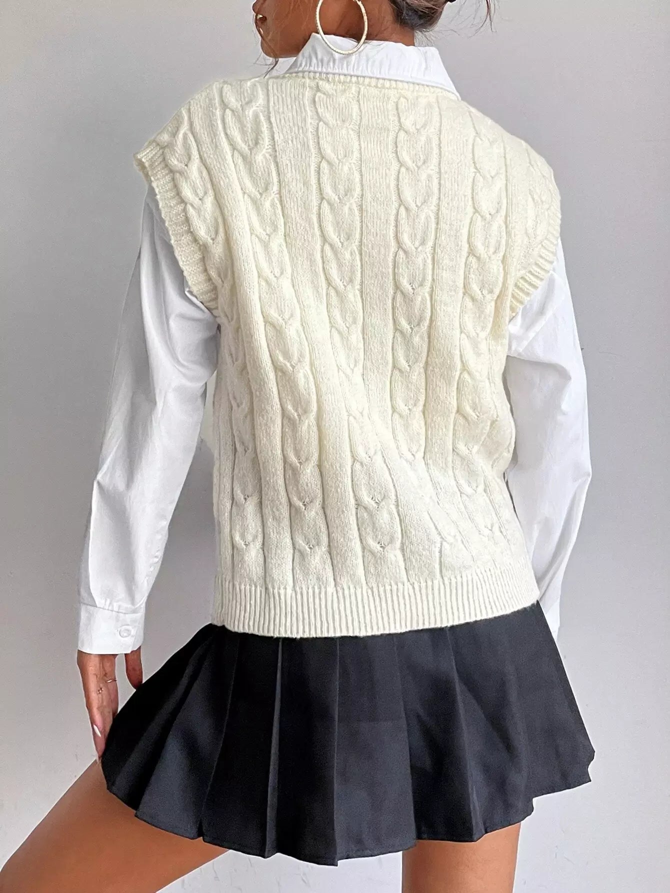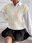 سترة كنزة صوفية محبوكة بكابلات بدون بلوزة