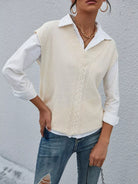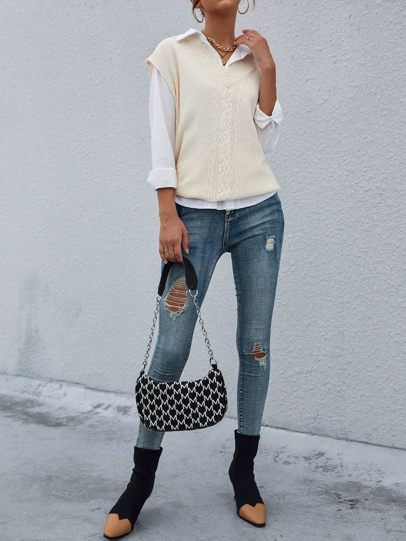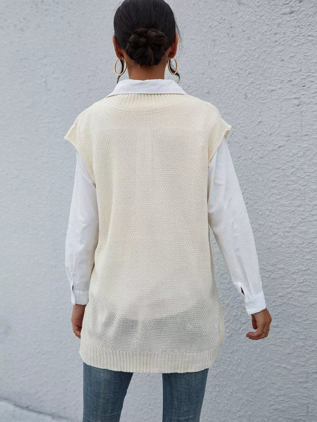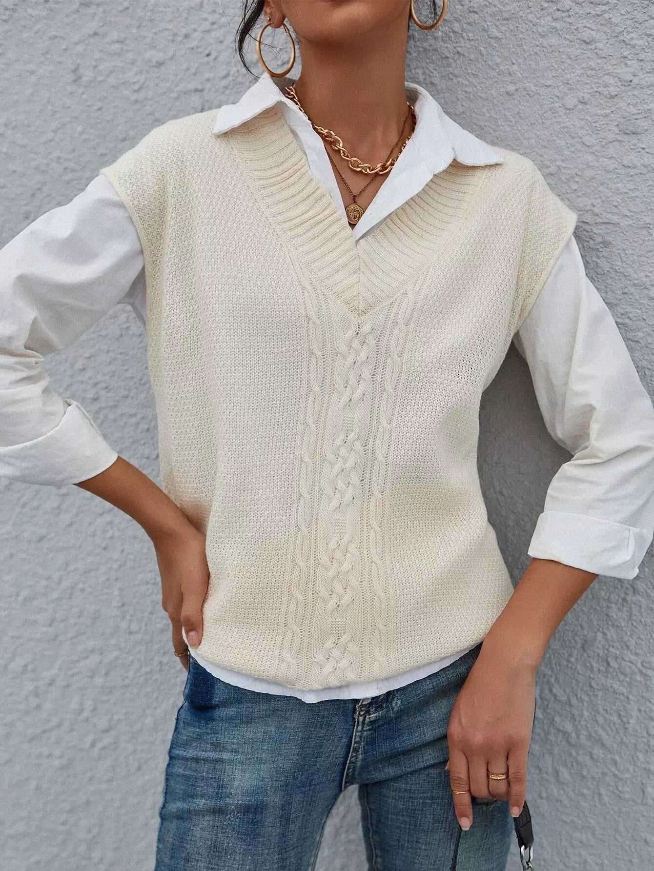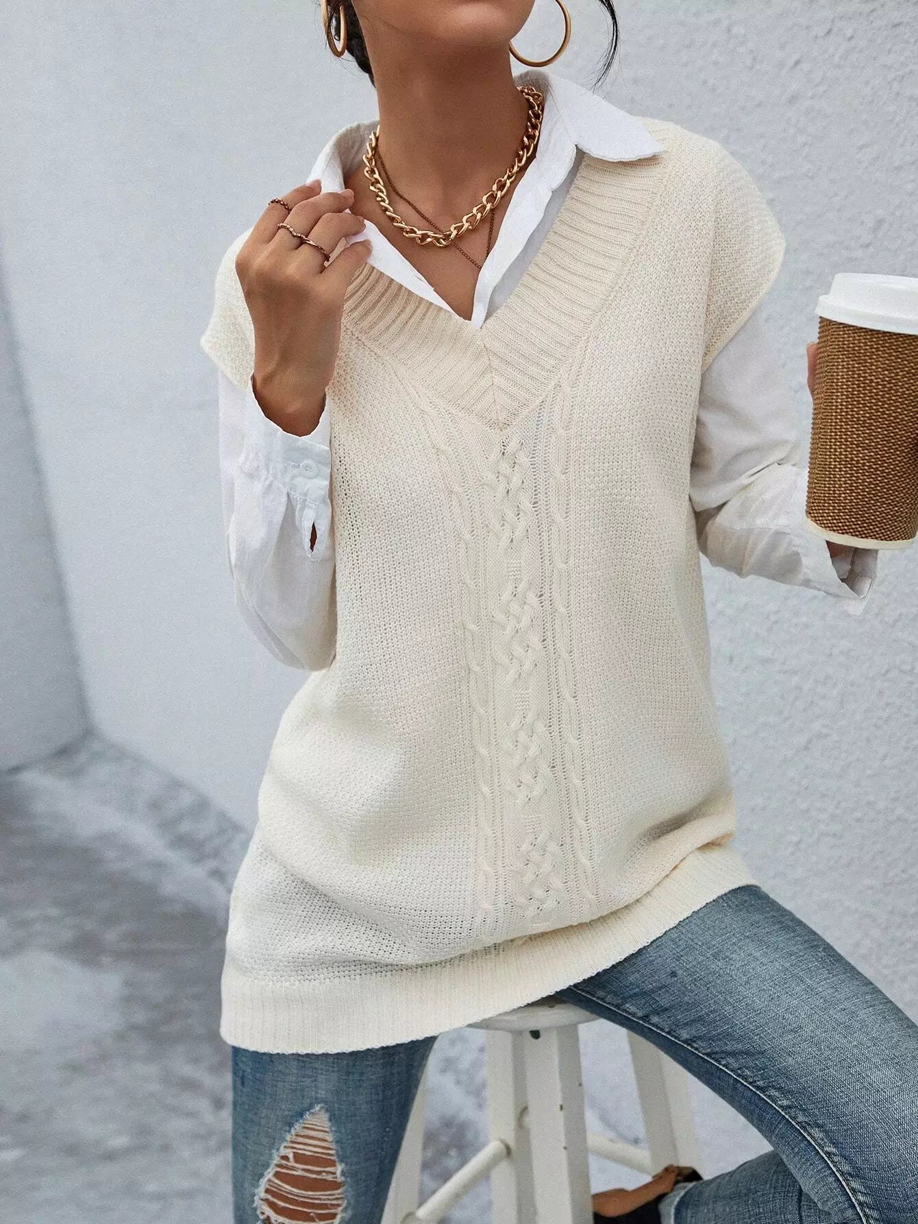 سترة كنزة صوفية محبوكة بكابلات بدون بلوزة