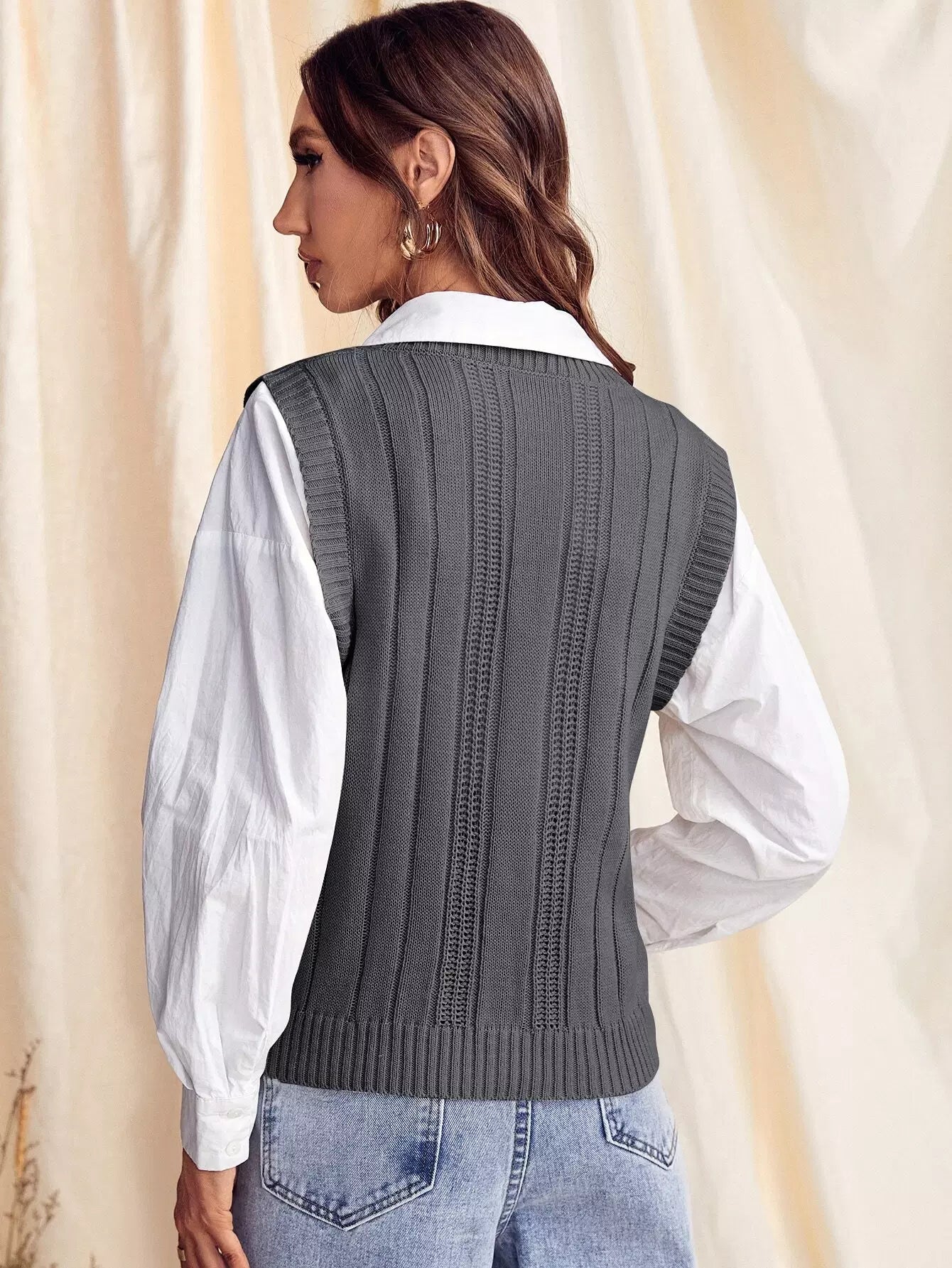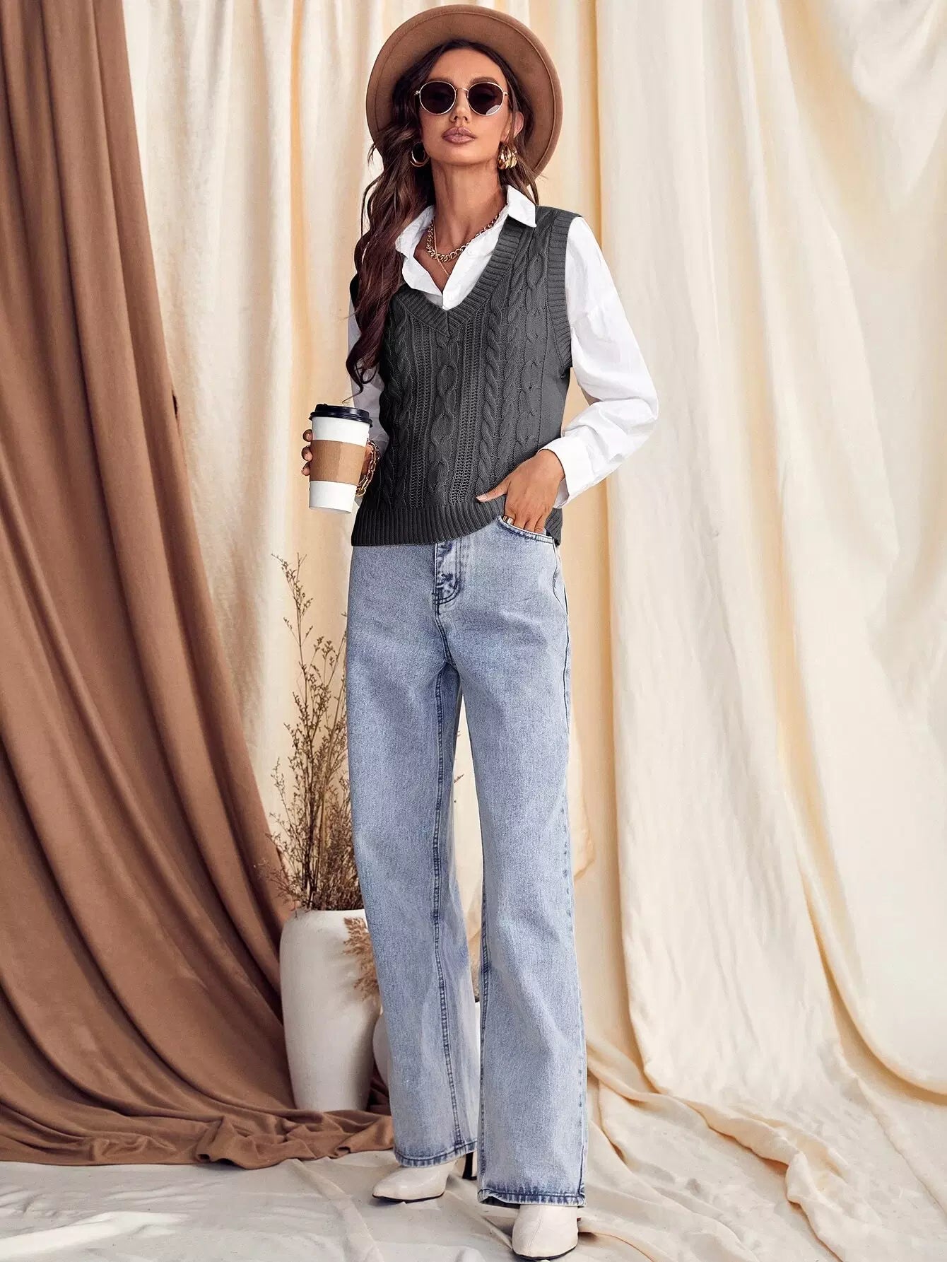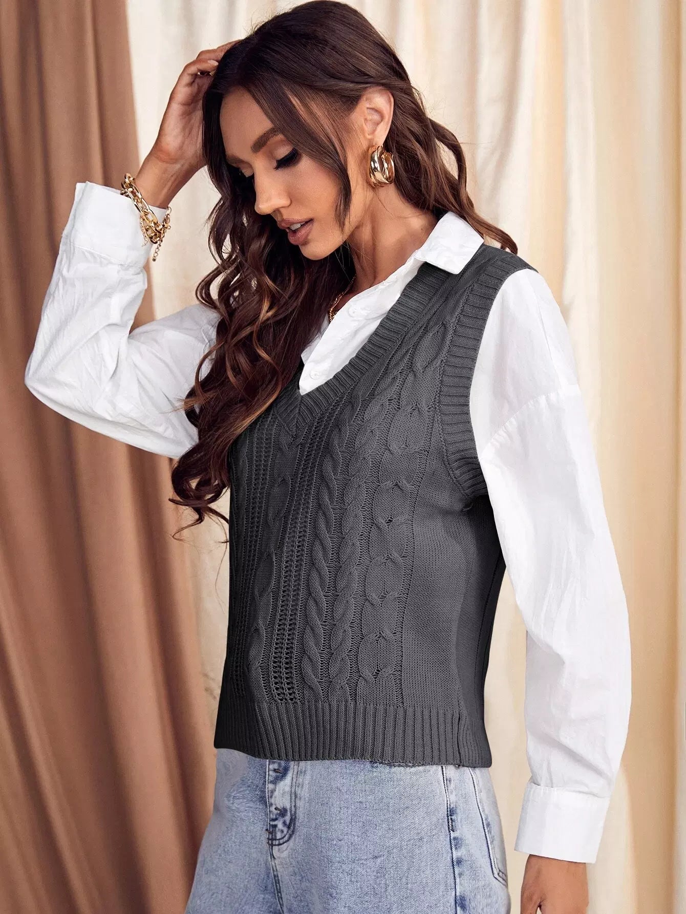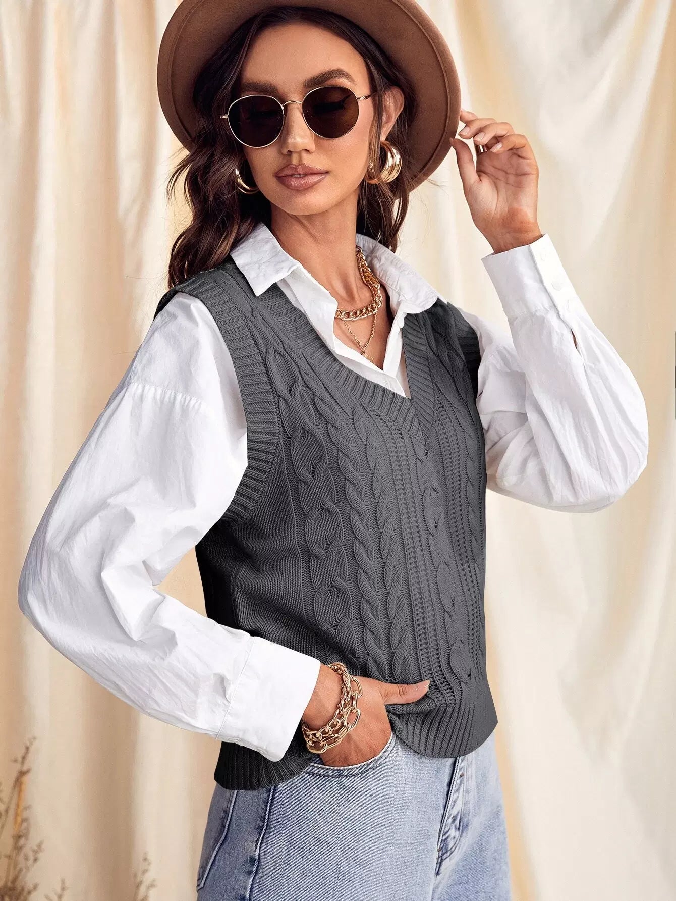 سترة كنزة صوفية محبوكة بكابلات بدون بلوزة