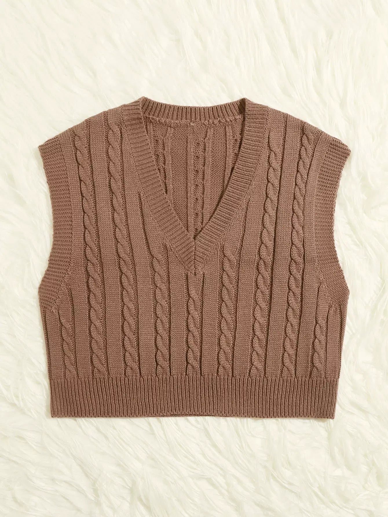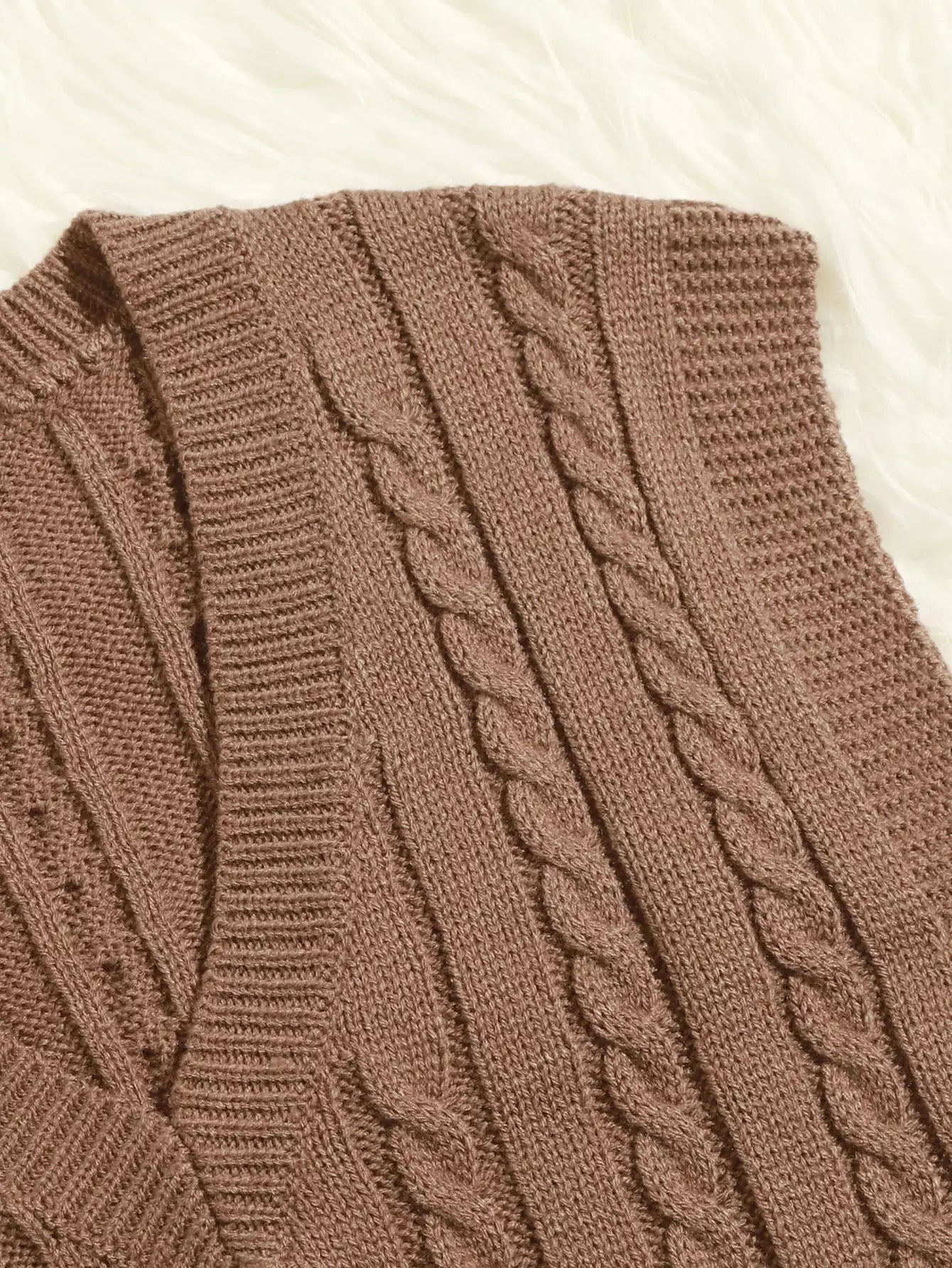 سترة كنزة برقبة على شكل كابل محبوكة على شكل V
