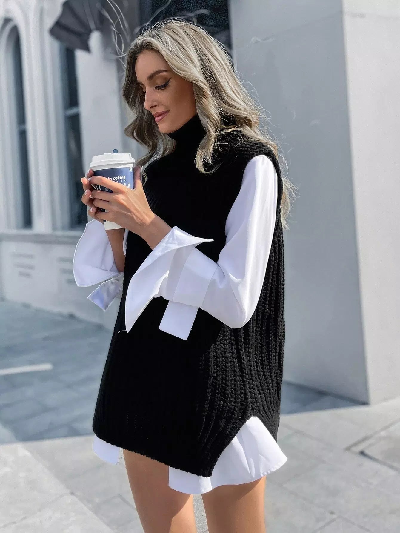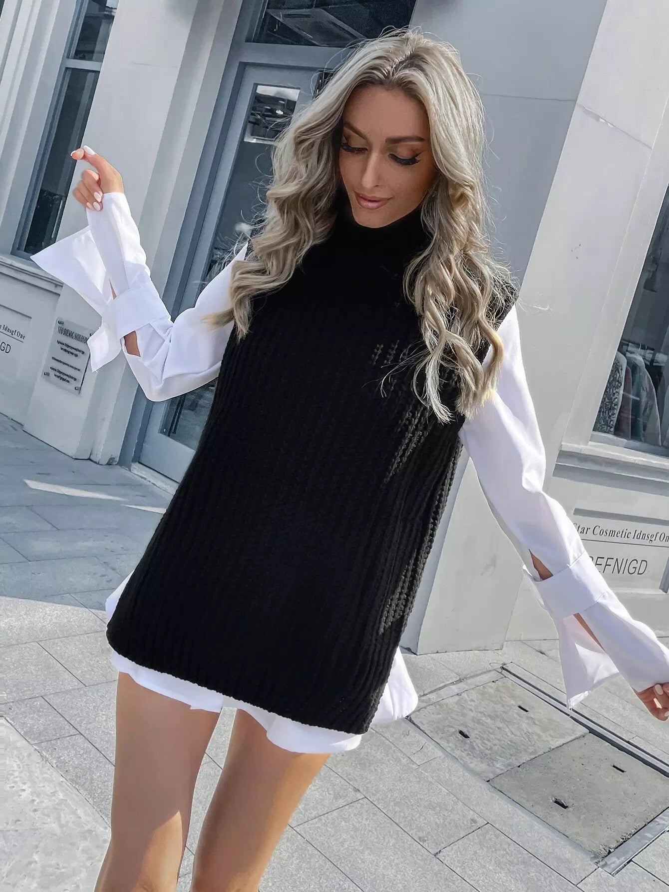 سترة بسترة برقبة عالية بفتحة عنق عالية