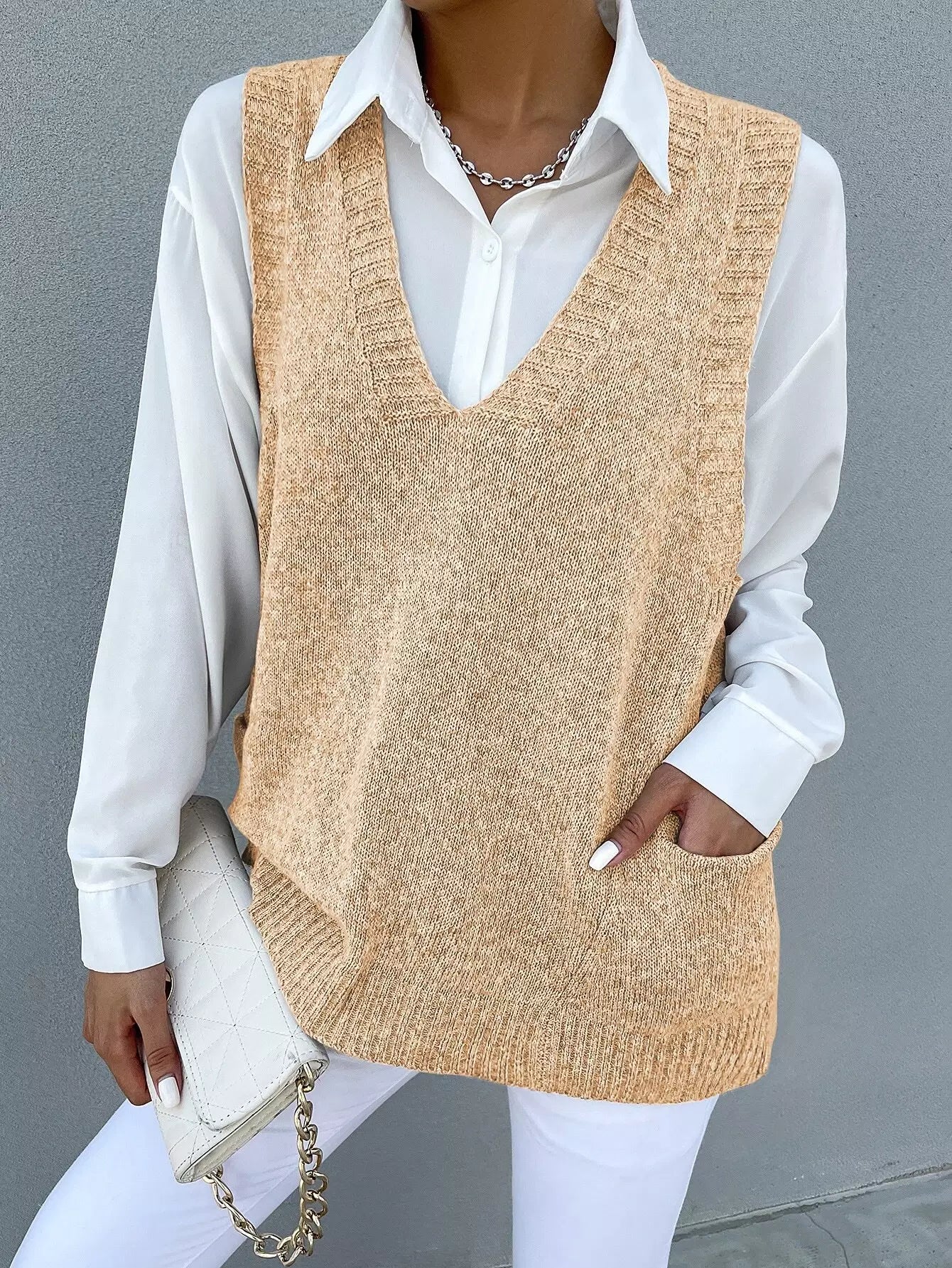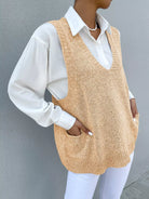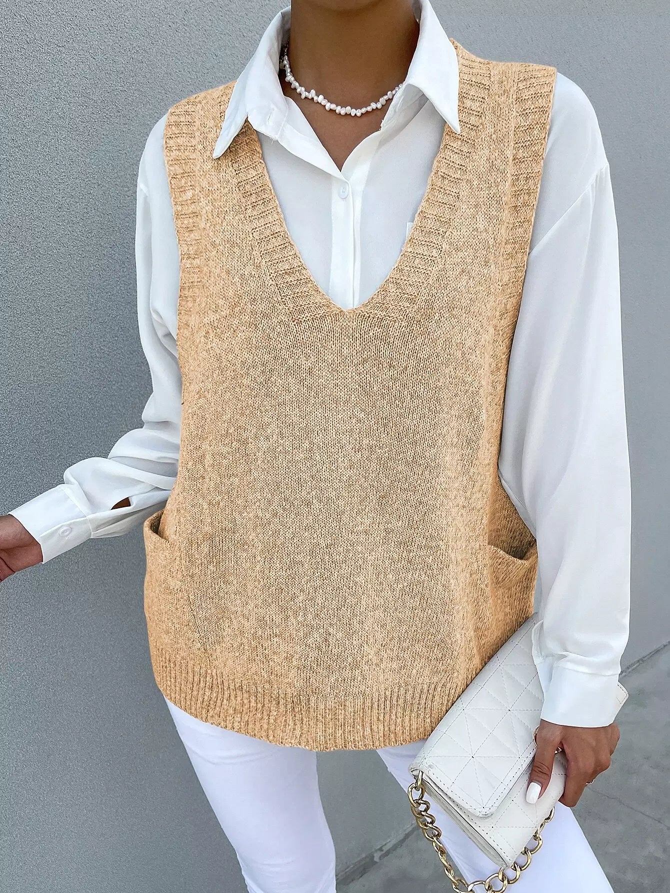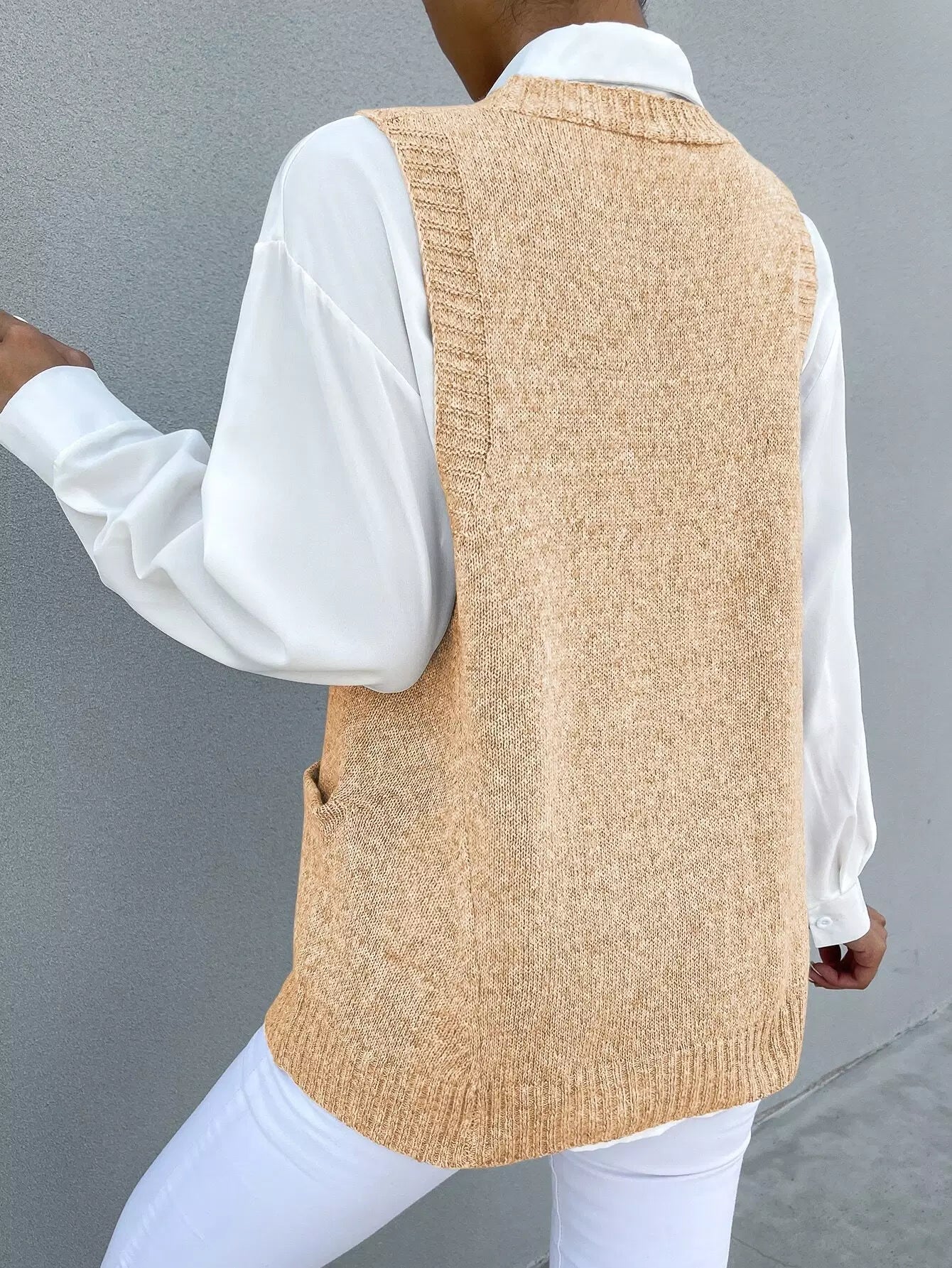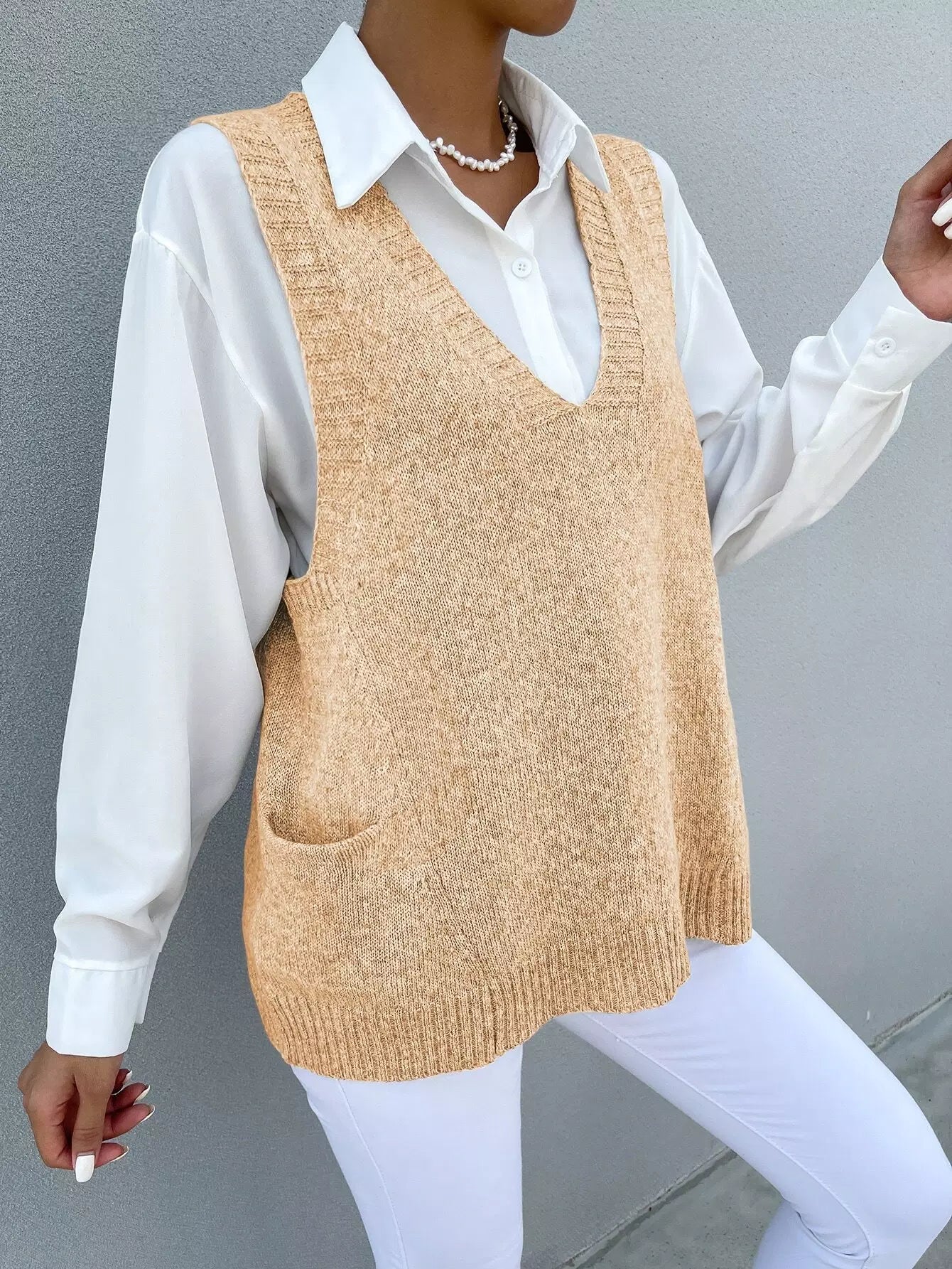 سترة كنزة صوفية محبوكة بجيبين بدون بلوزة