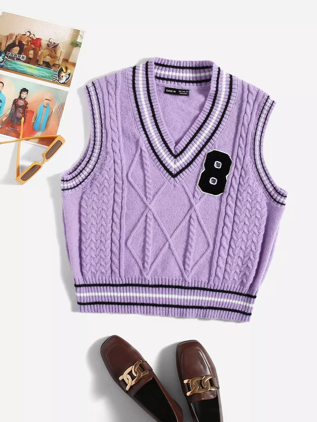 سترة سترة مرقعة مرقعة مخططة ذات حواف مرقعة