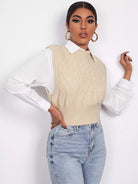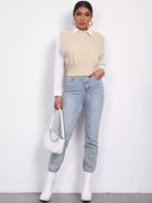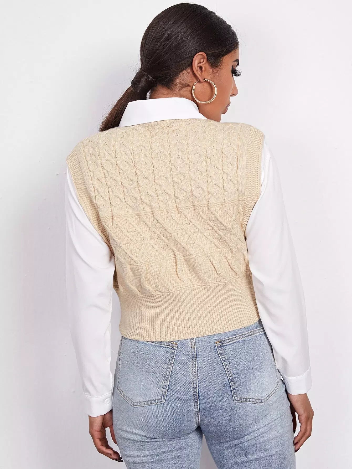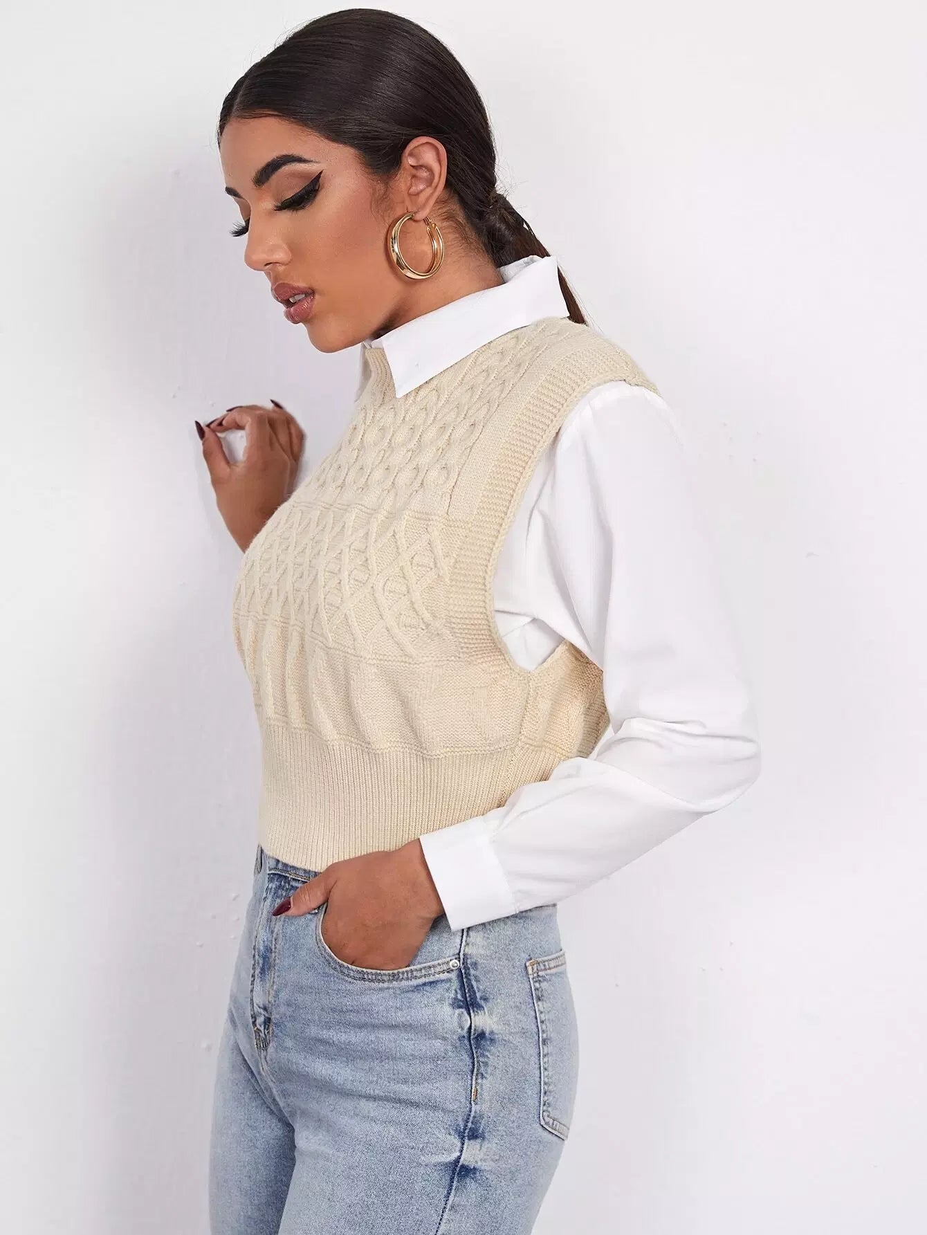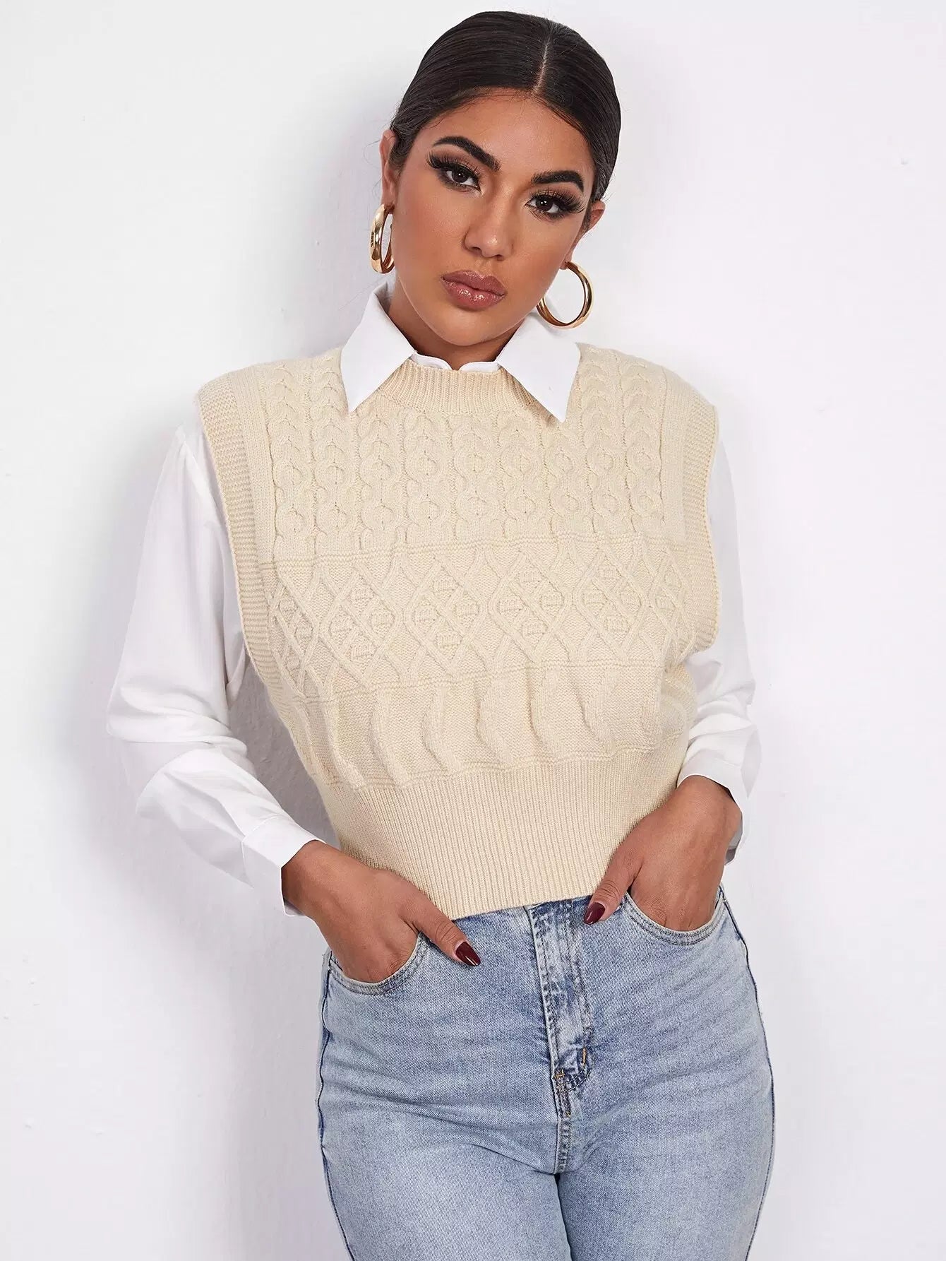 سترة برقبة دائرية برقبة دائرية محبوكة بكابل
