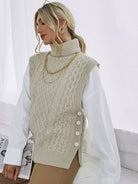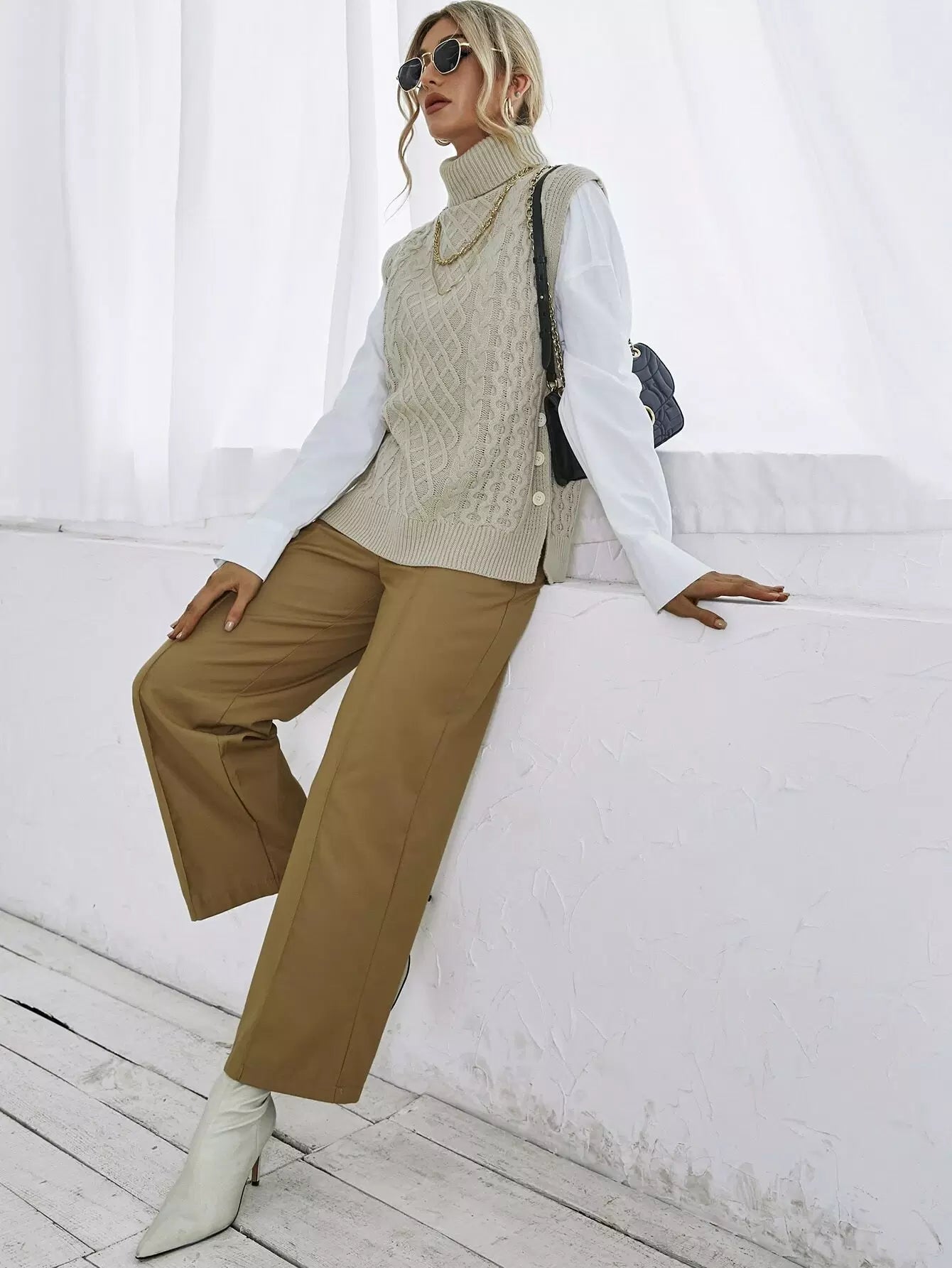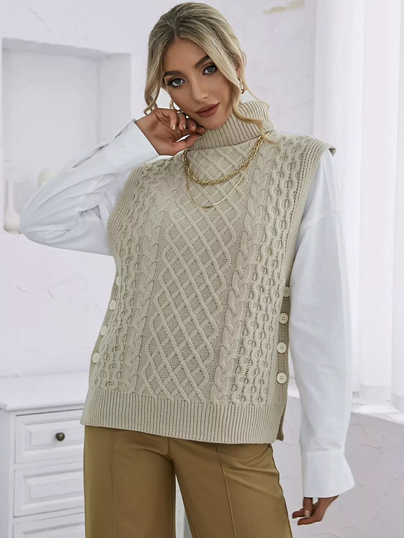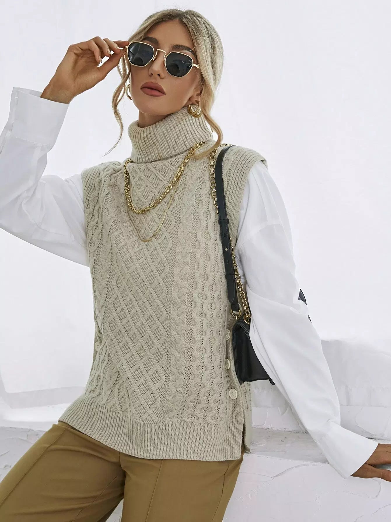 سترة كنزة برقبة سلحفاة محبوكة بكابل بدون بلوزة