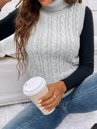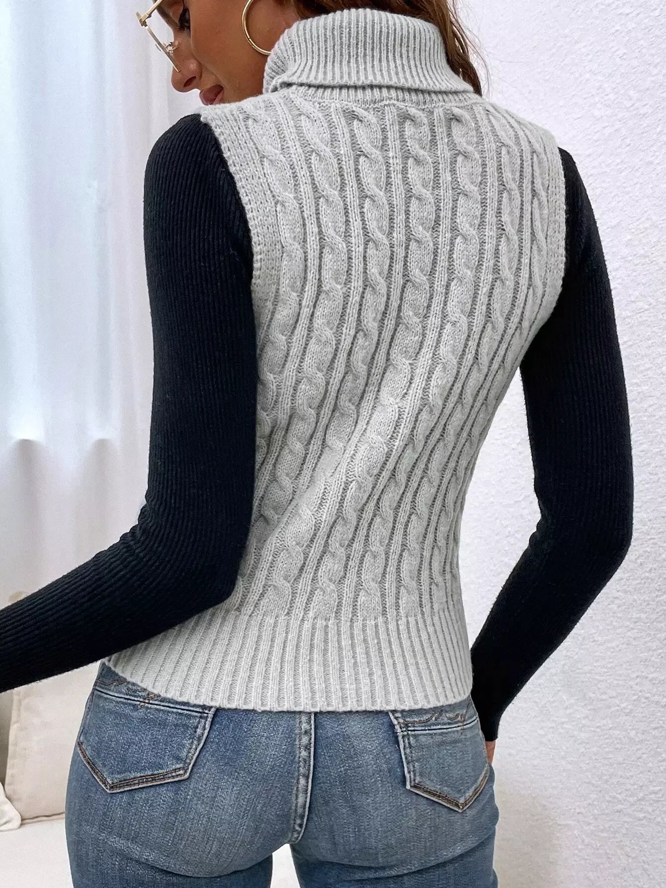 سترة كنزة بياقة كبلية محبوكة بياقة مدورة
