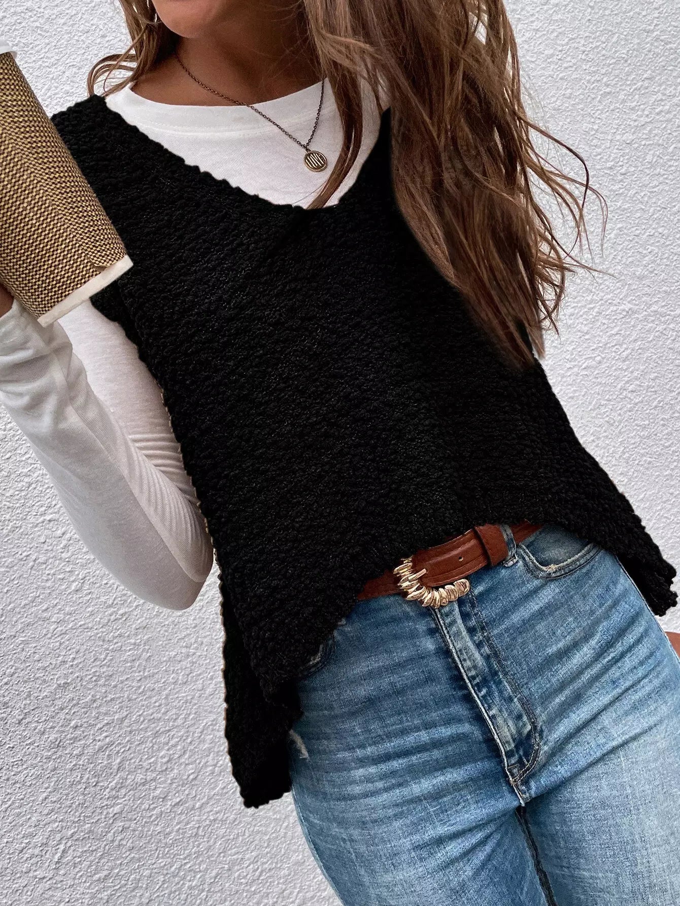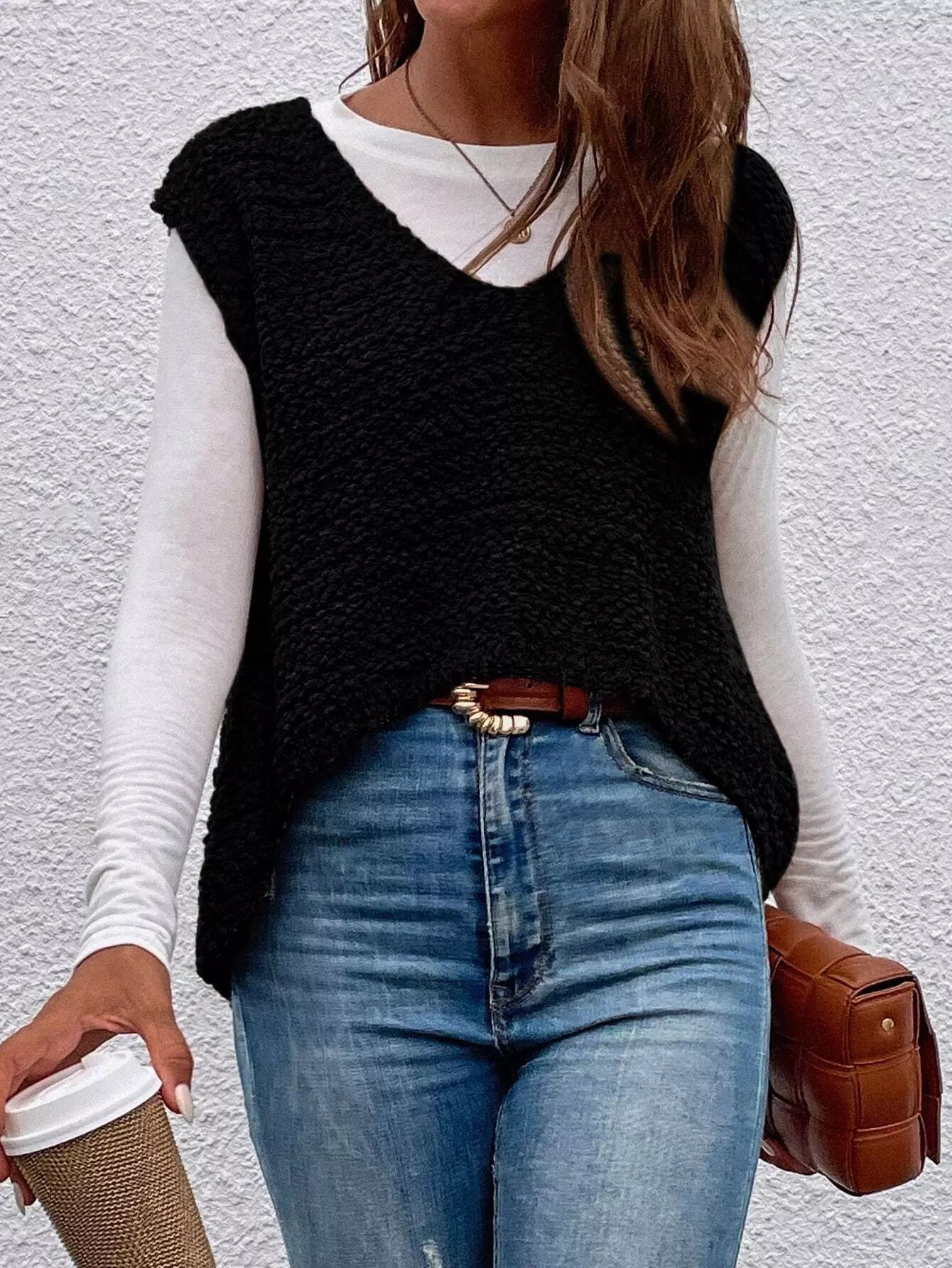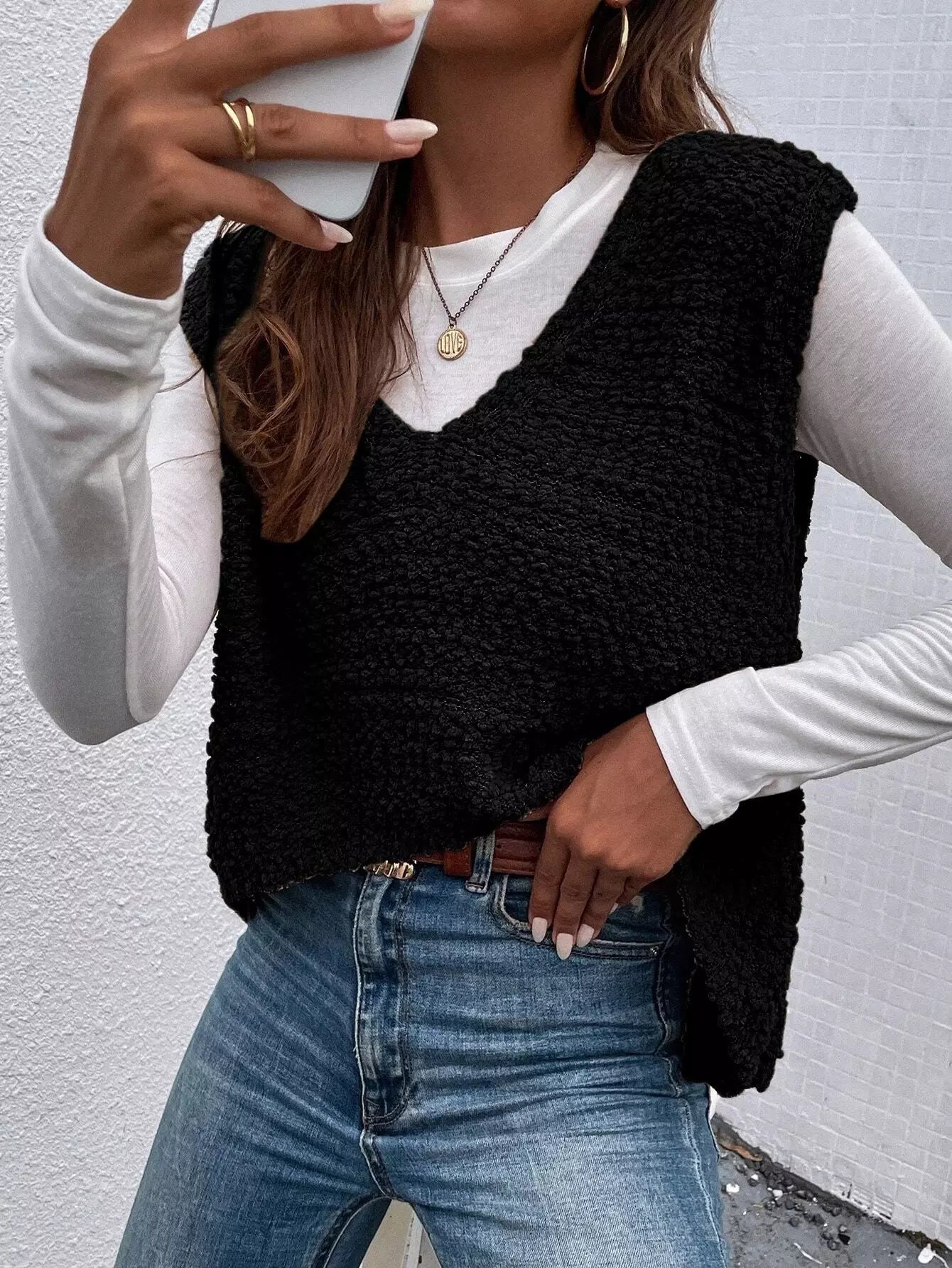 سترة برقبة على شكل حرف V بفتحة عنق على شكل حرف V بفتحة من الخلف عالية ومنخفضة