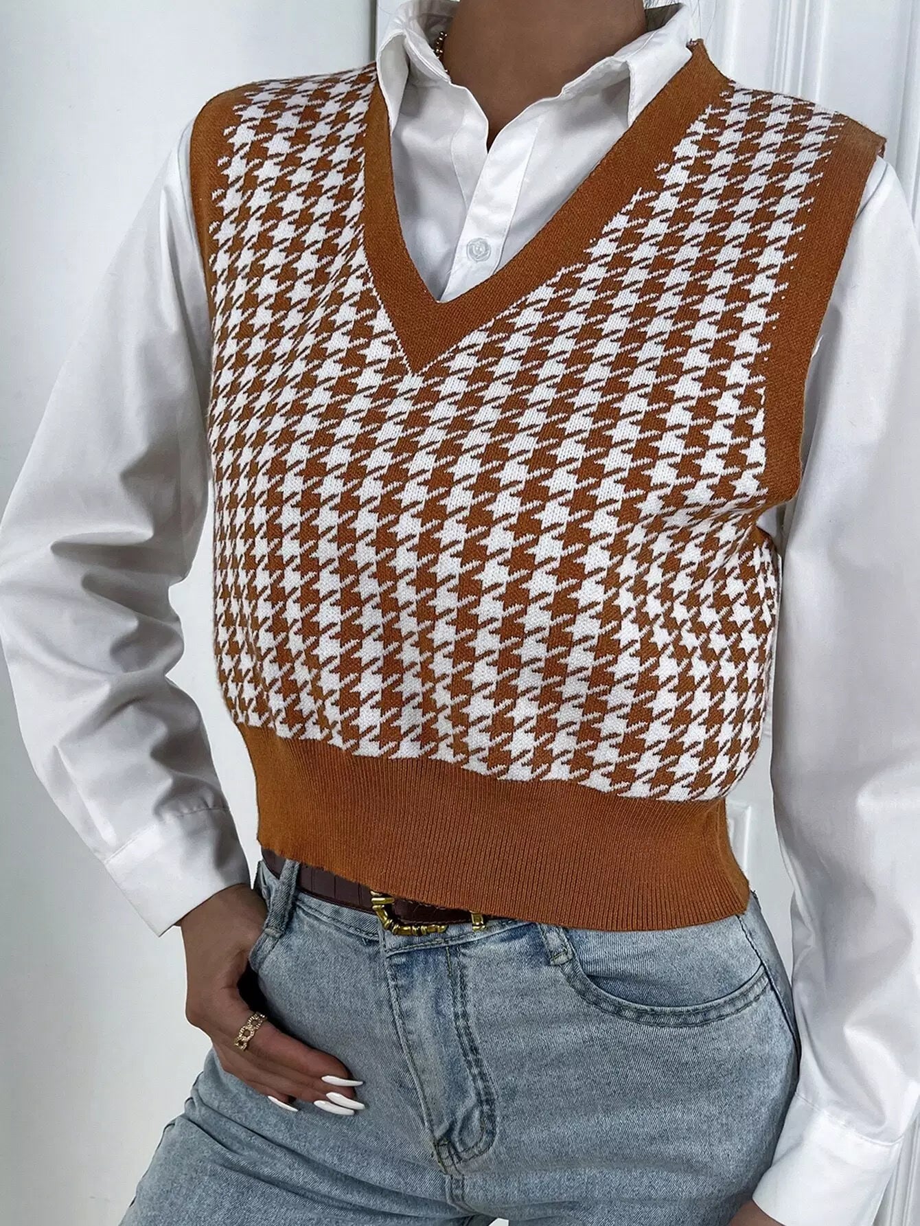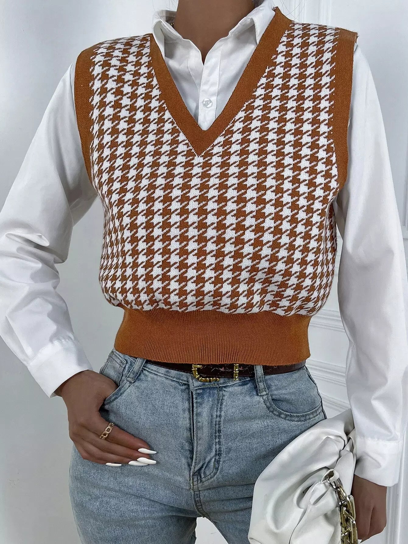 سترة برقبة على شكل حرف V برقبة على شكل كلب الصيد