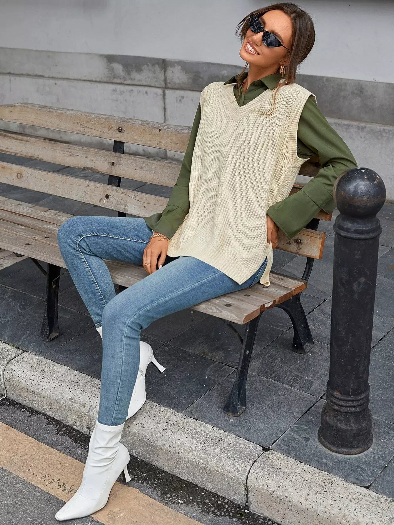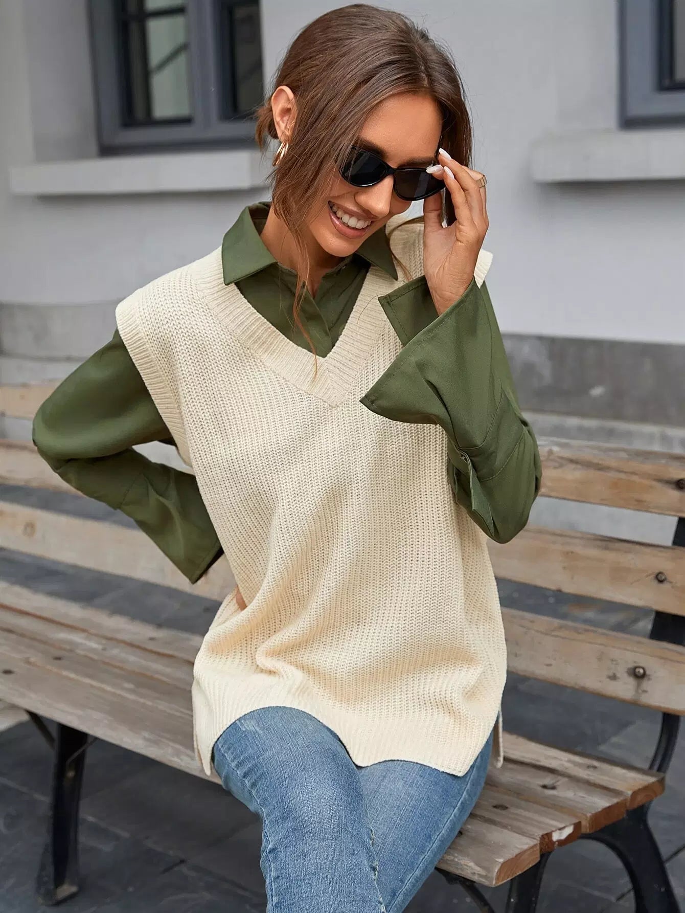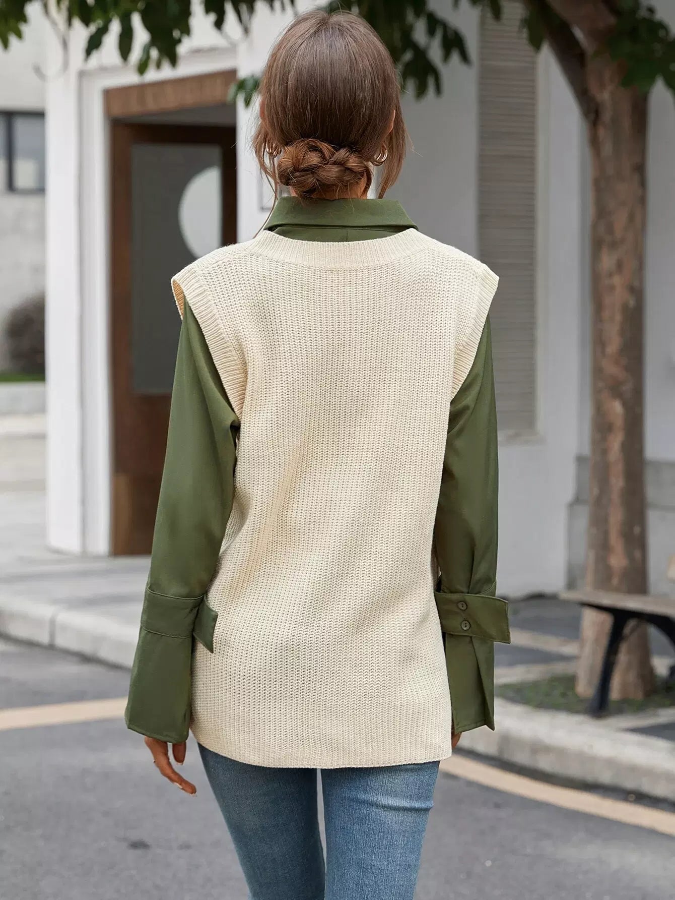 سترة صوفية محبوكة من الوافل بدون بلوزة