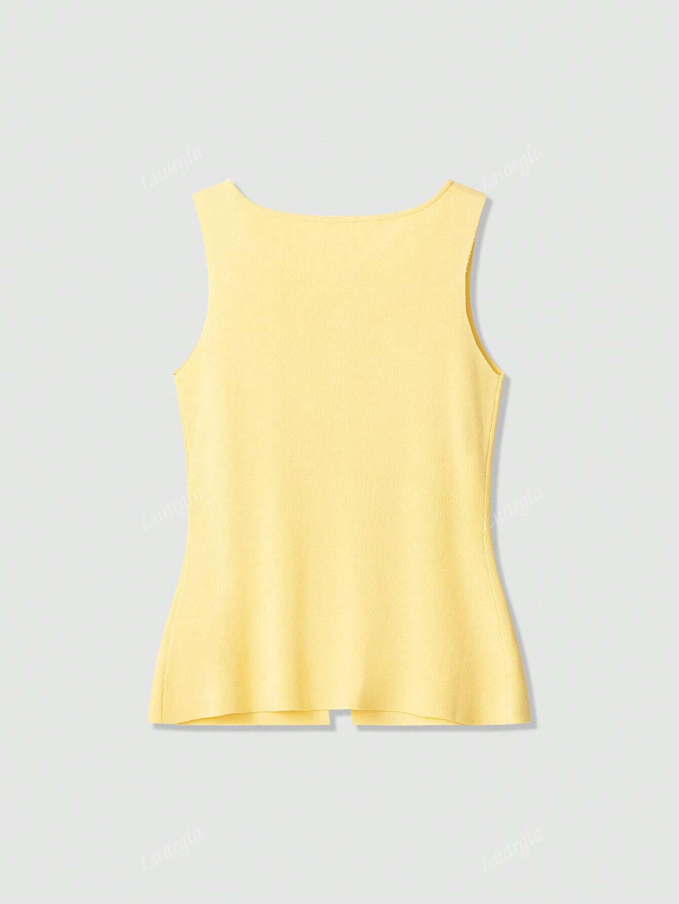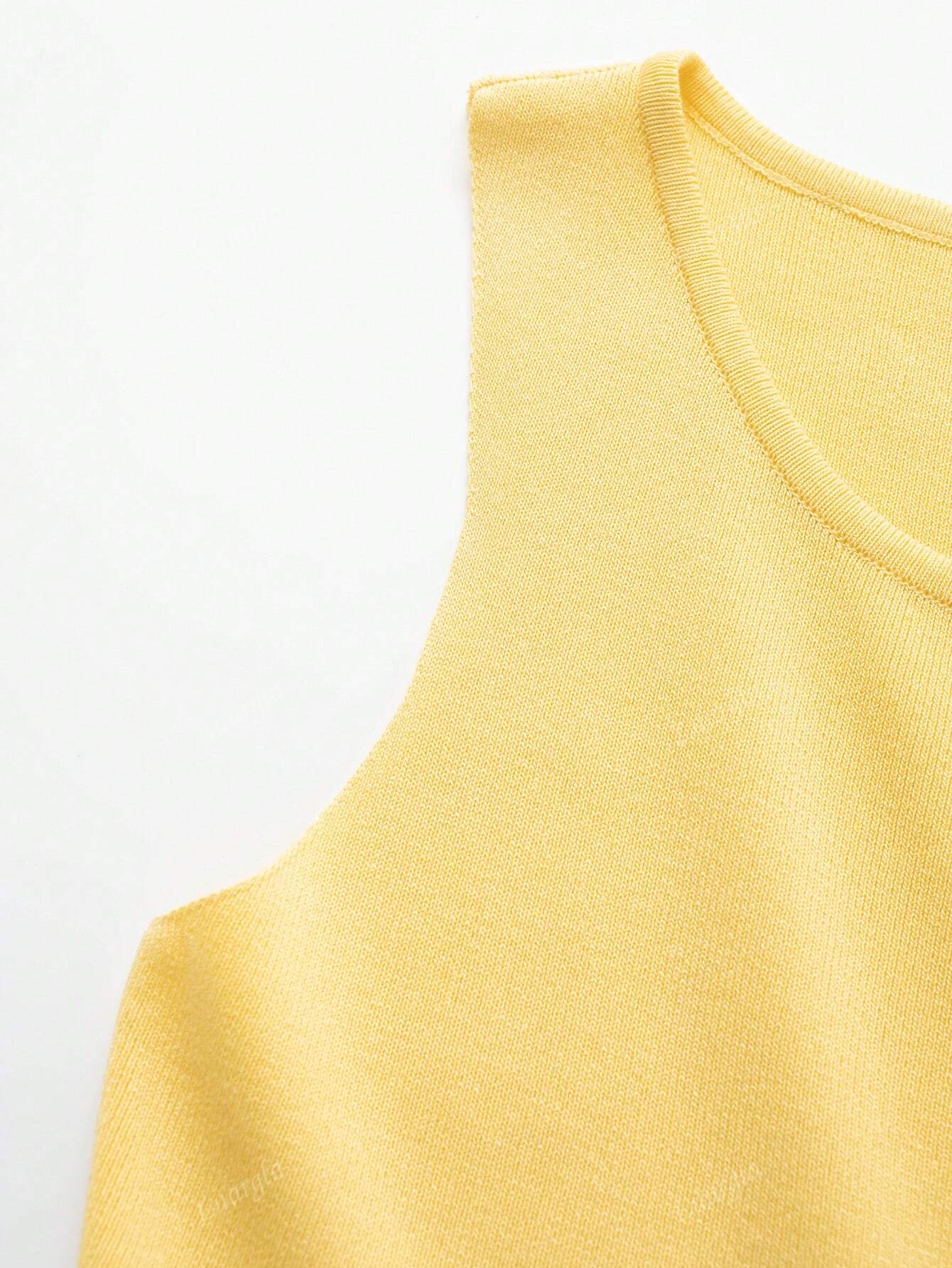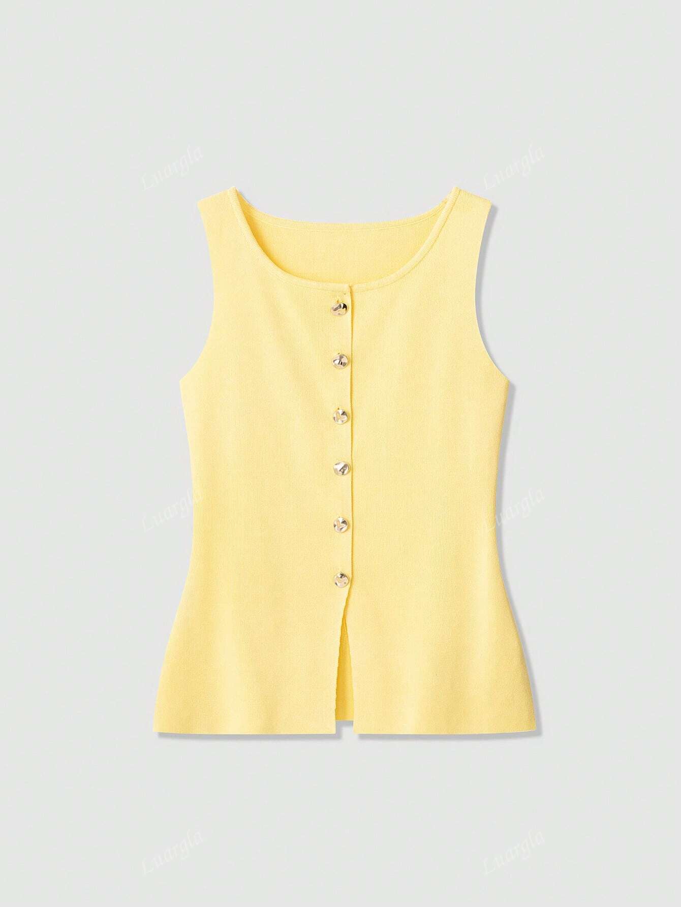 Women's Casual Butter Yellow Buttoned Front Knitted Vest