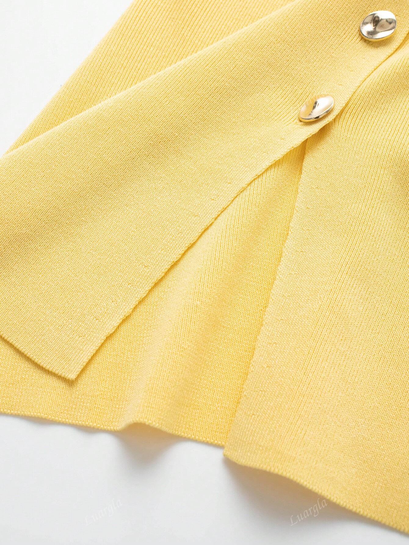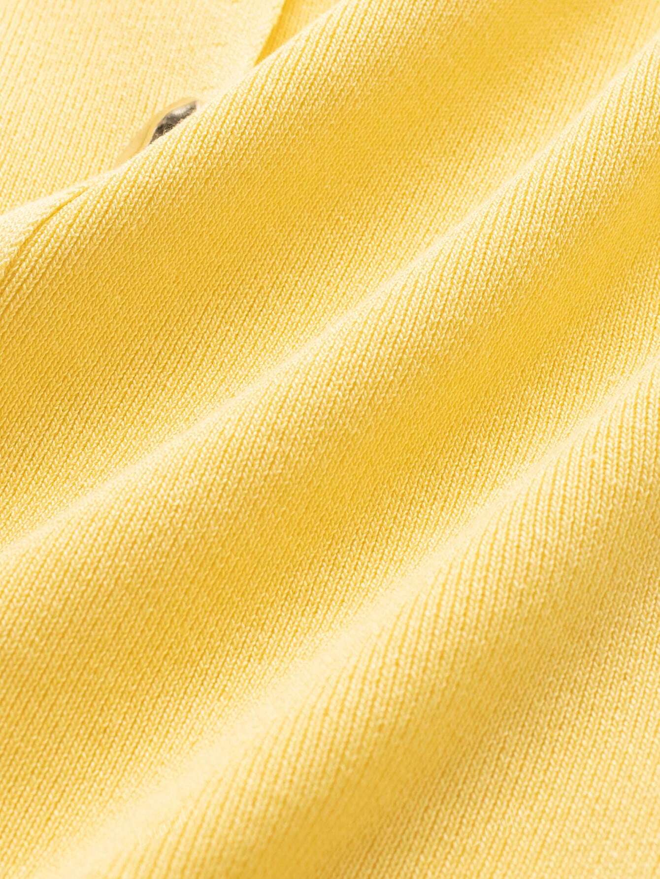 سترة نسائية محبوكة بأزرار أمامية باللون الأصفر الزبدي