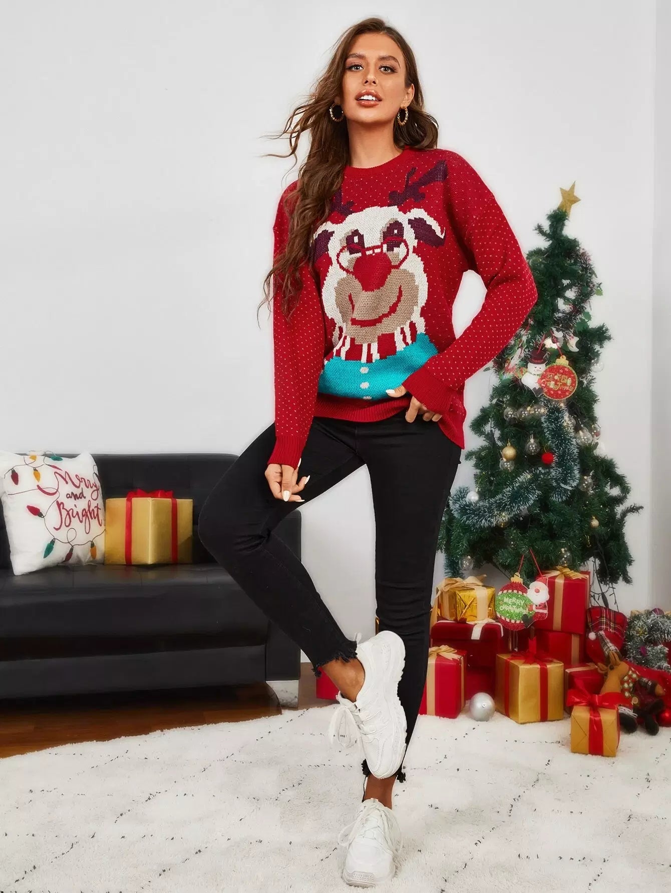 1 قطعة سترة منسدلة الكتف على شكل غزال عيد الميلاد