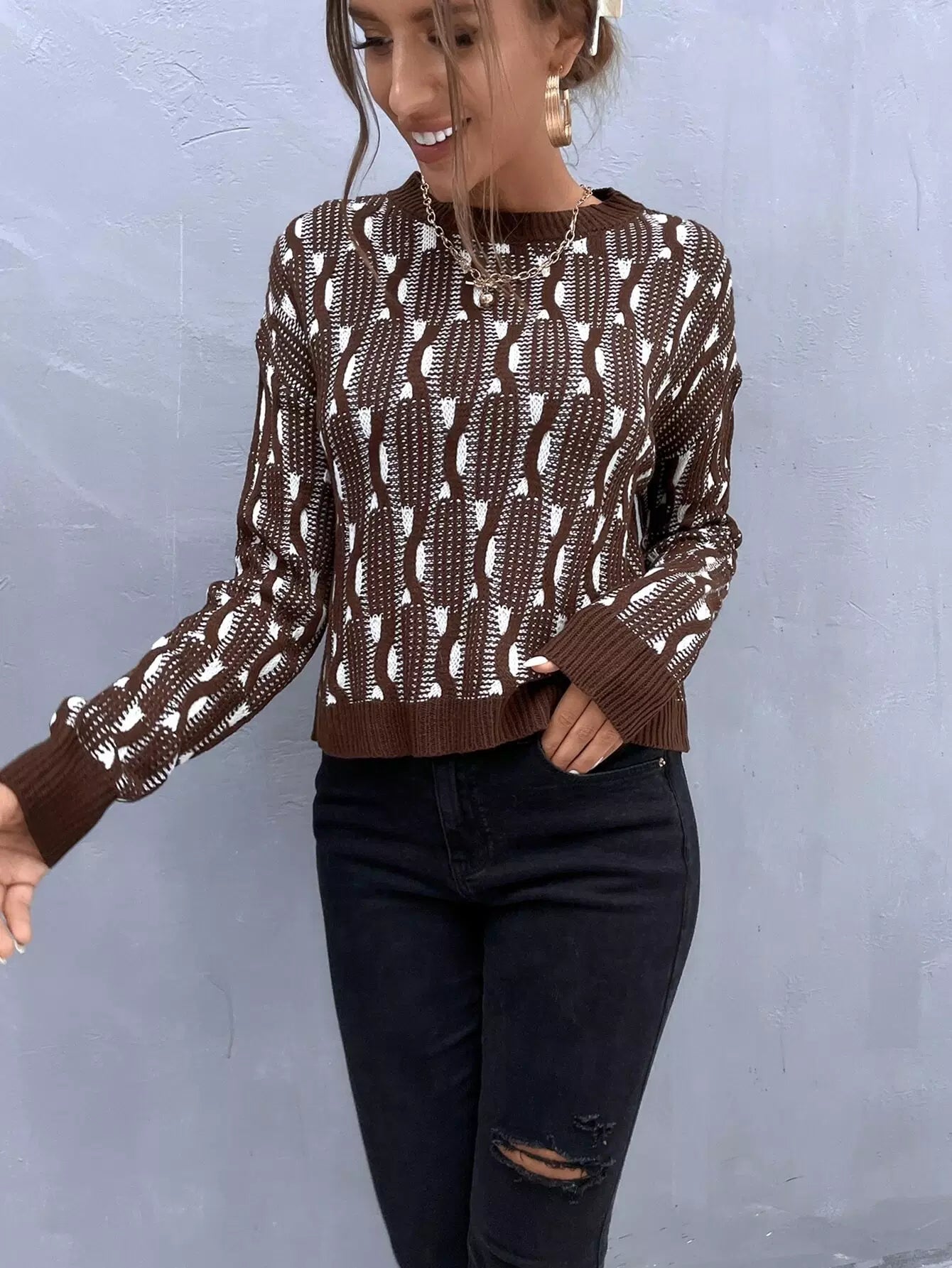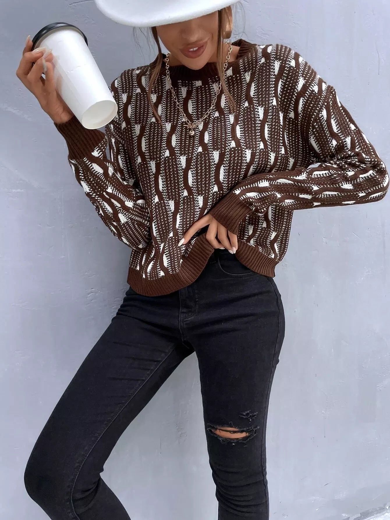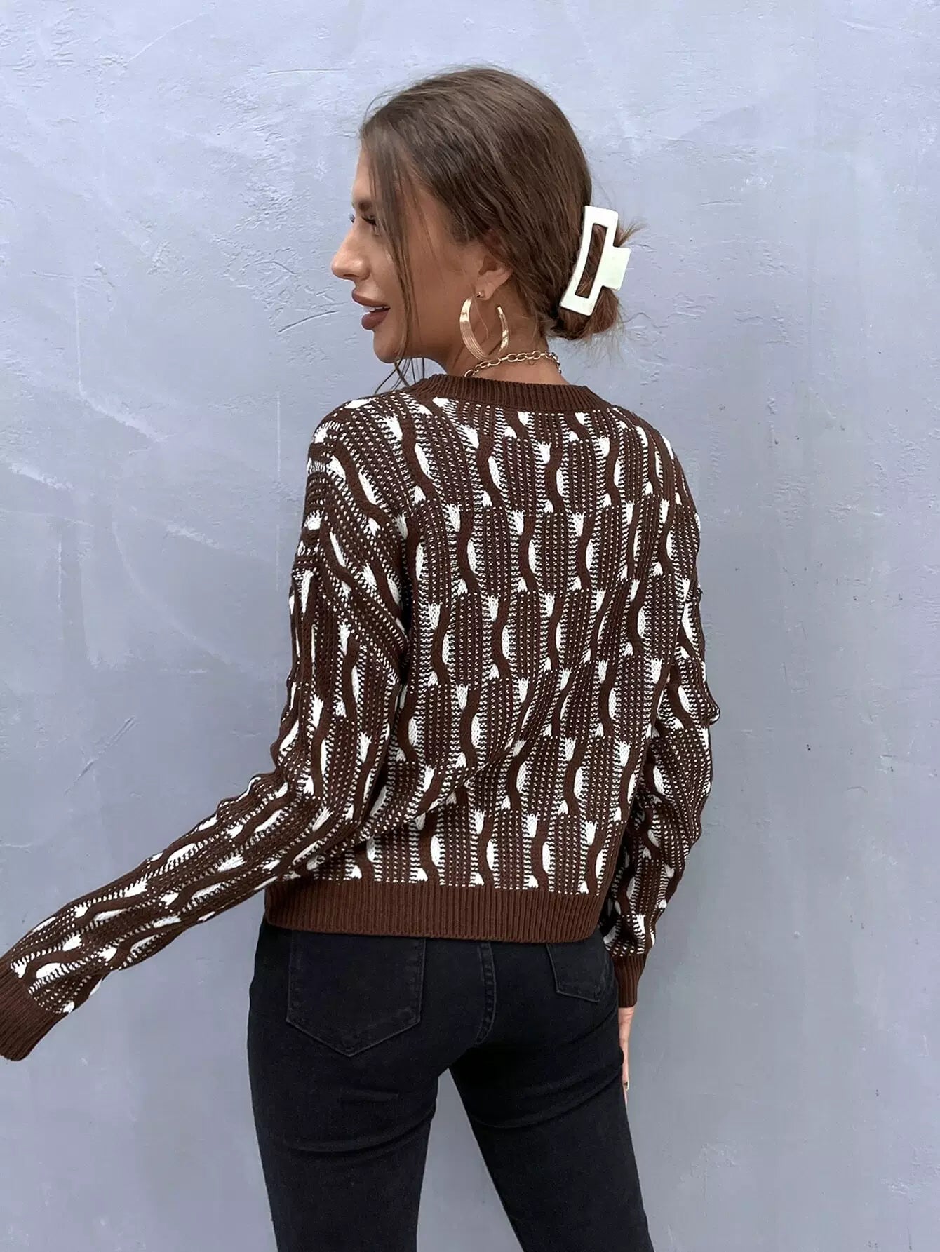 سترة منسدلة الكتف منسدلة النقش بالكامل