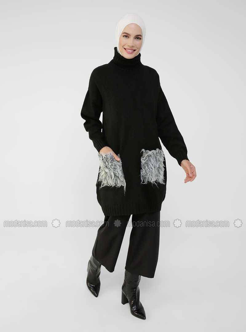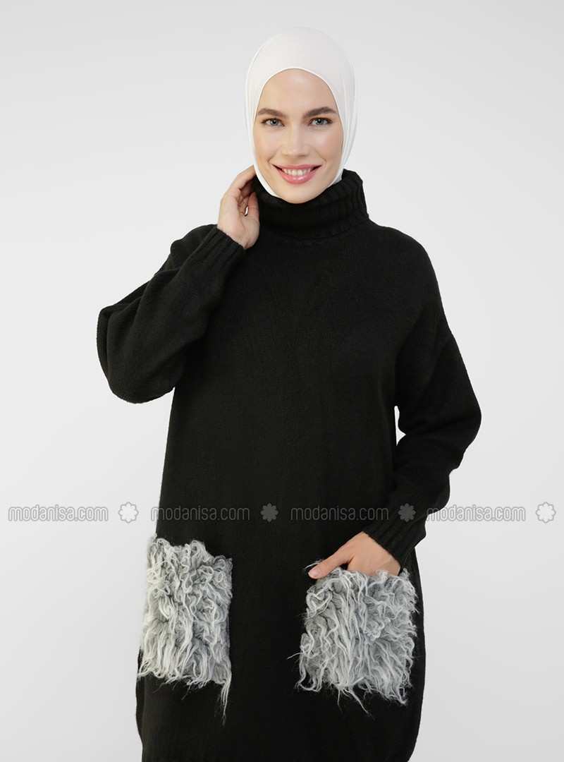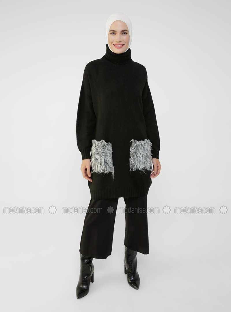 تونيك محبوك غير مُبطن بياقة بولو سوداء