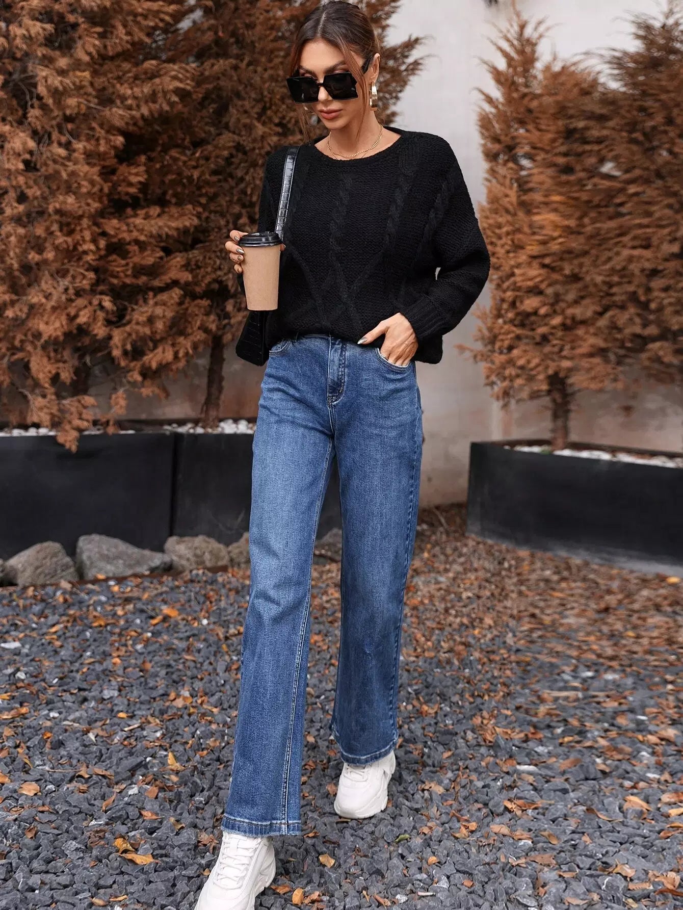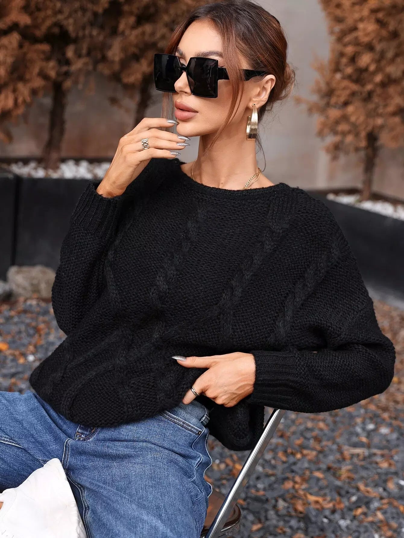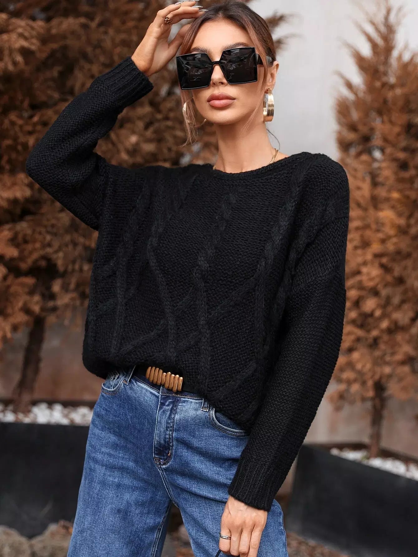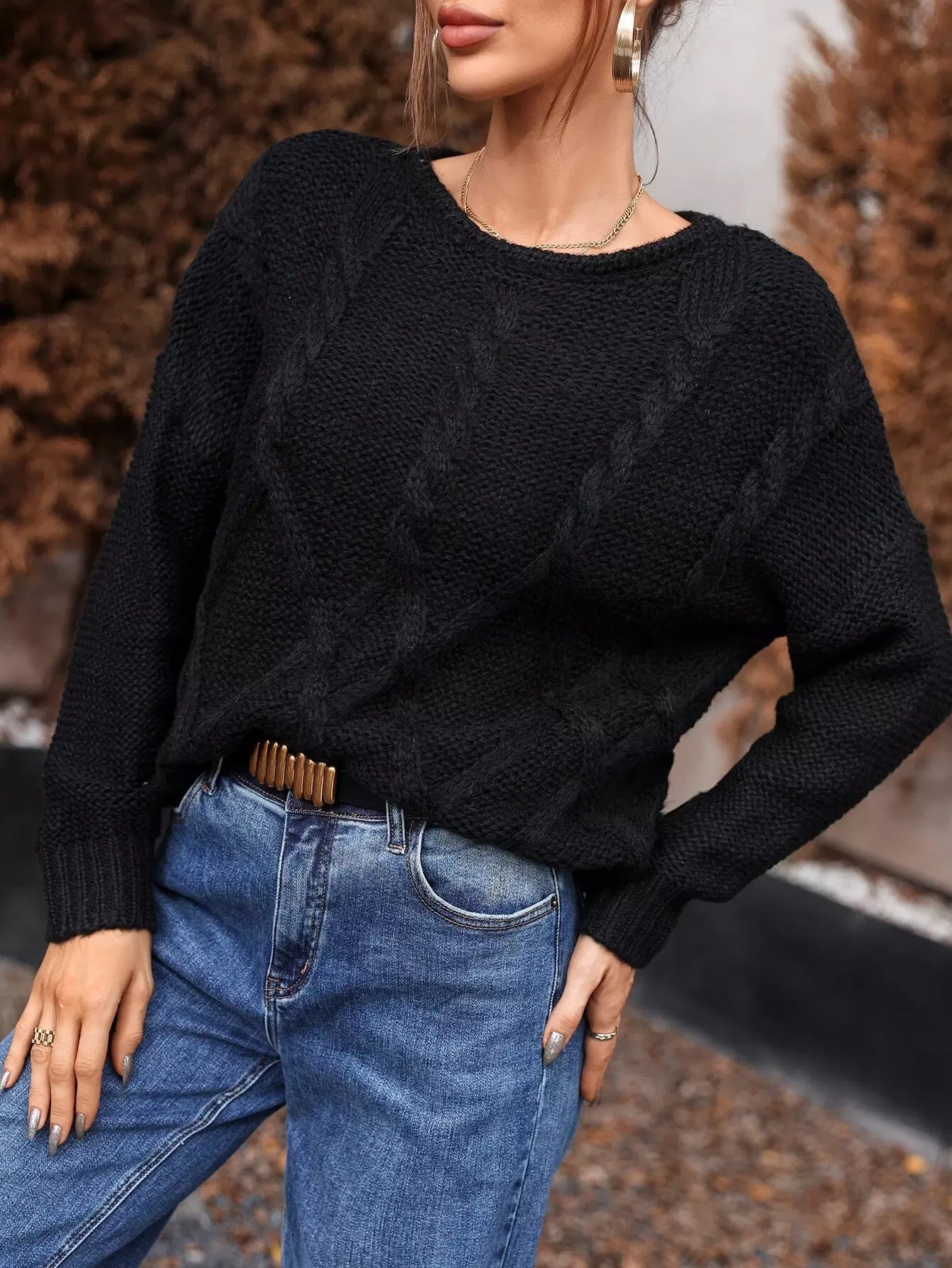 سترة كابل محبوكة منسدلة الكتفين