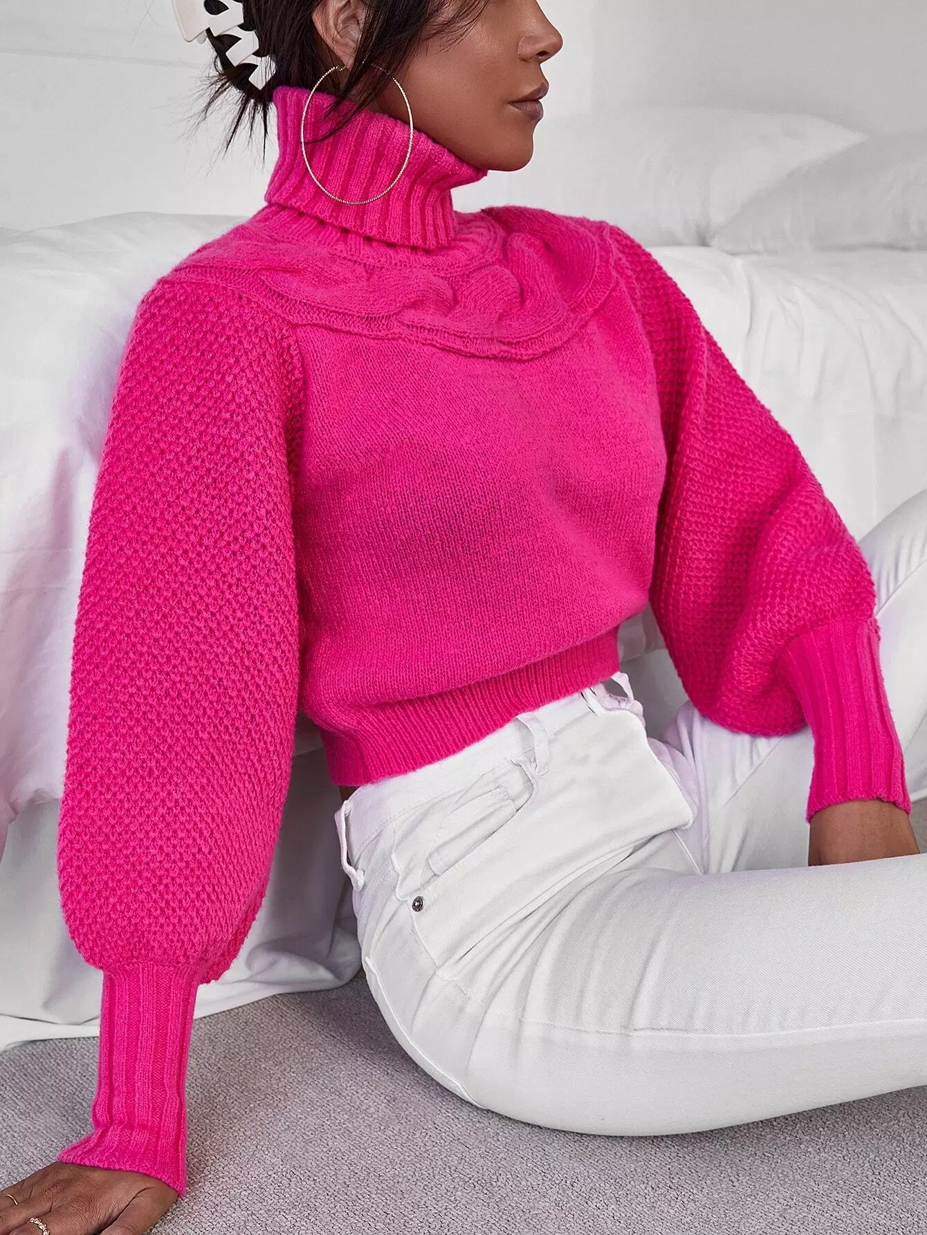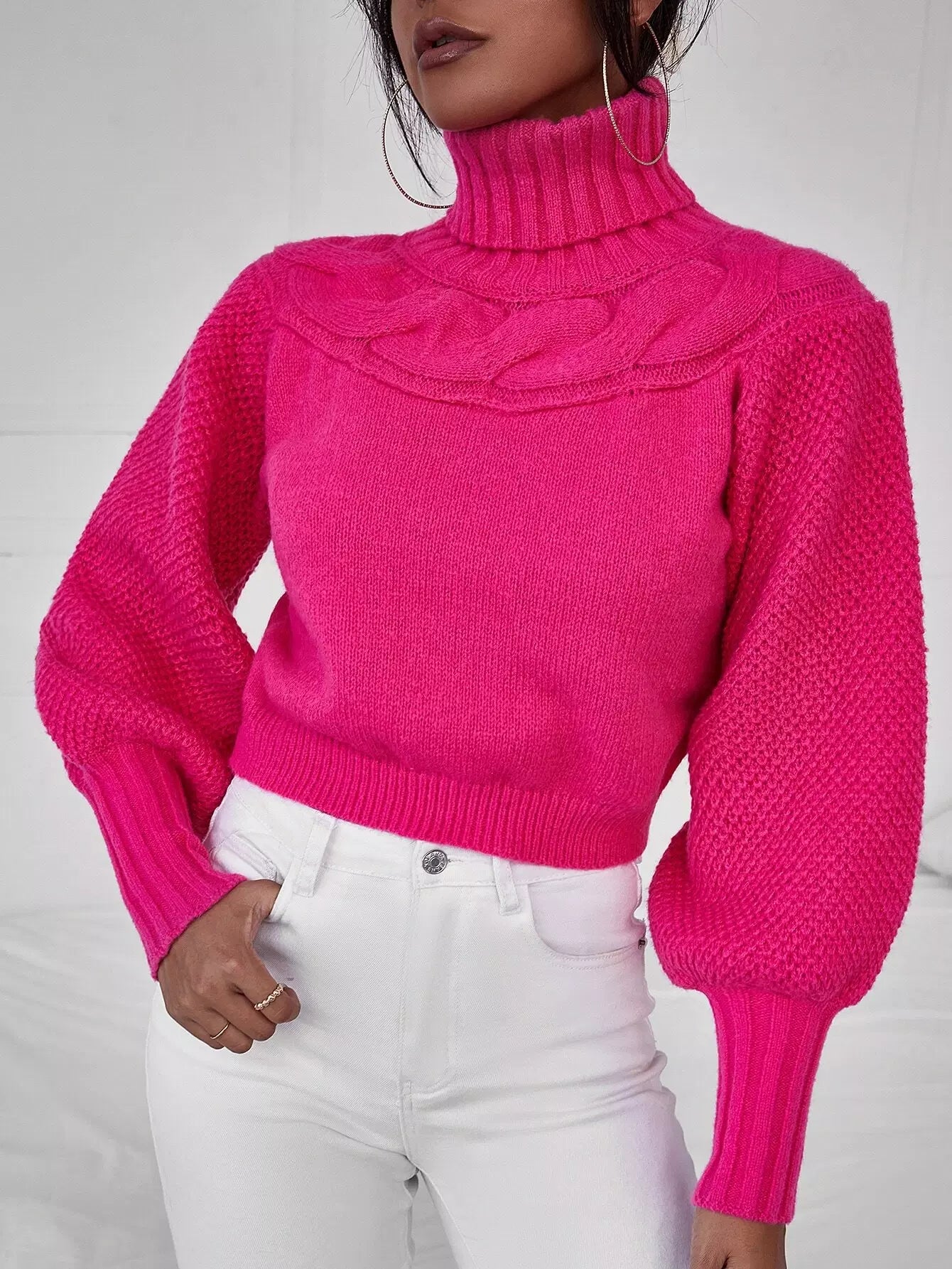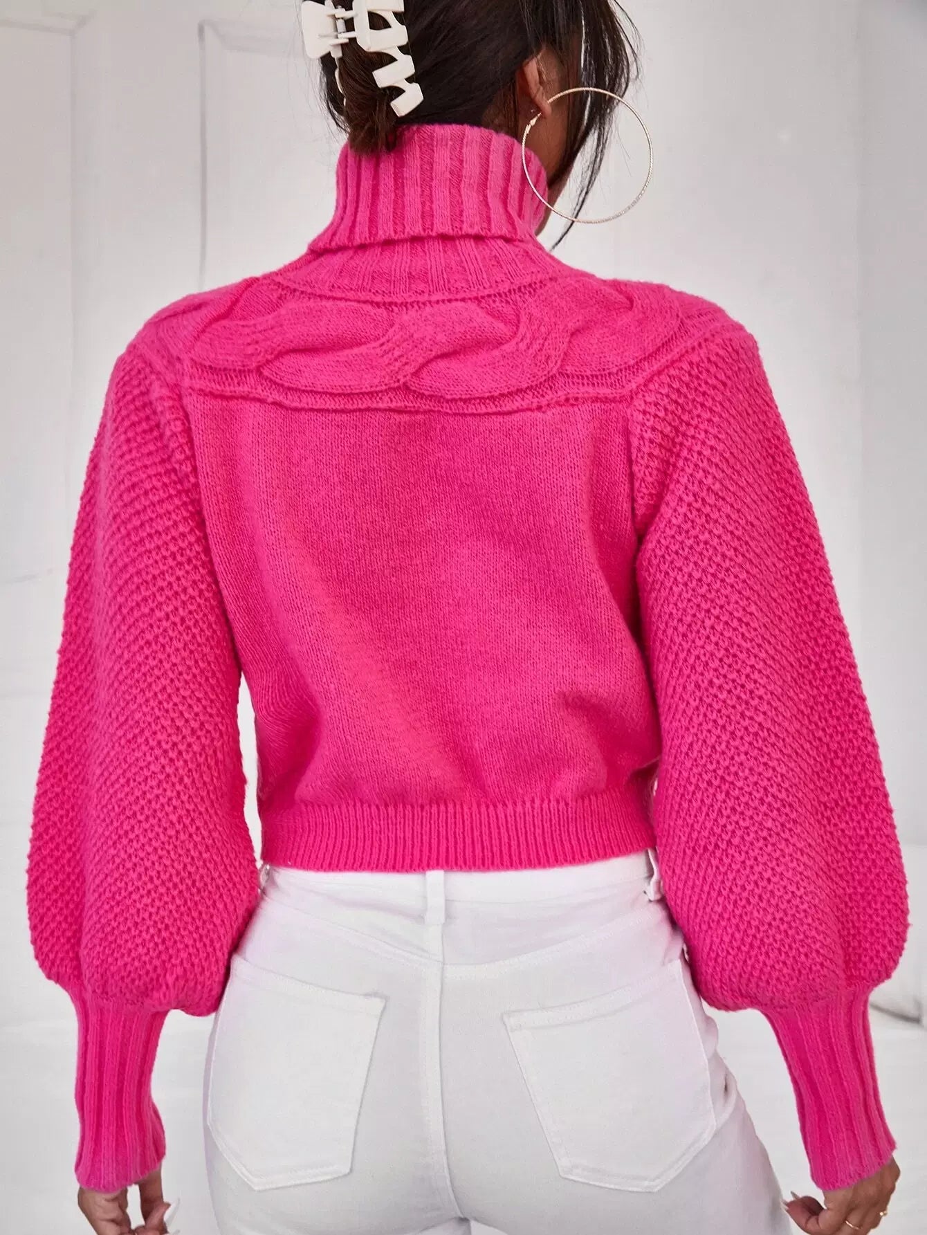 كنزة برقبة سلحفاة محبوكة بكابل