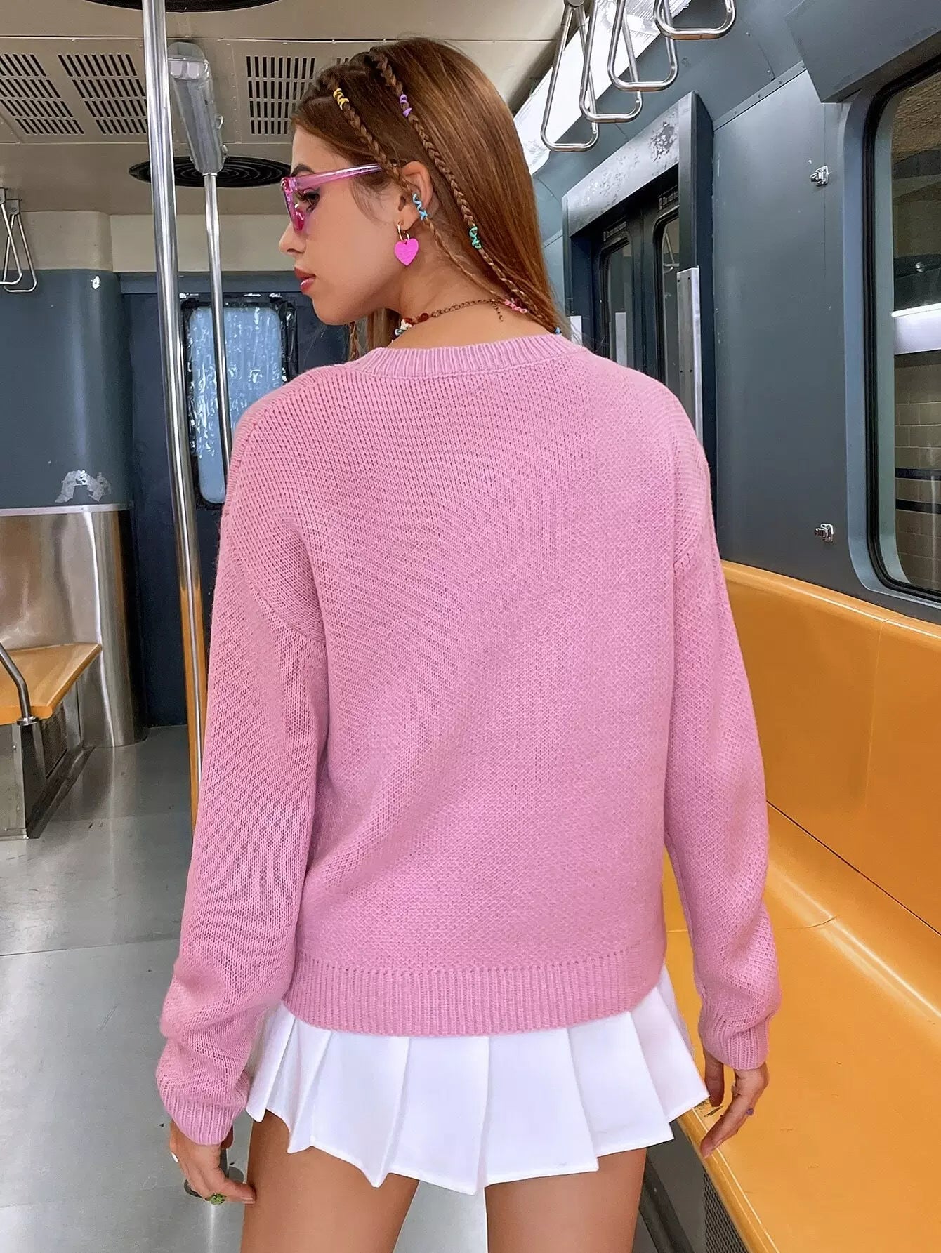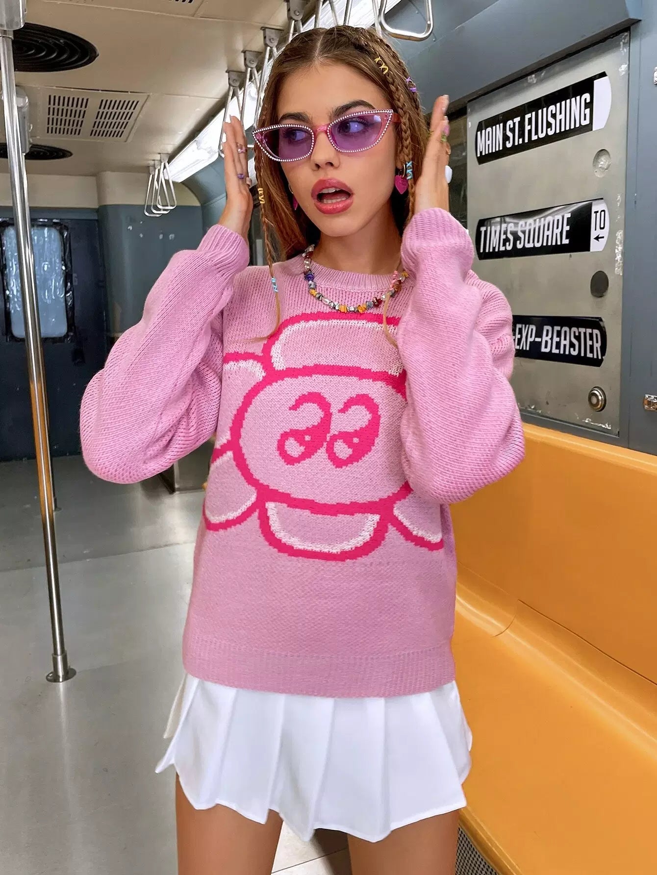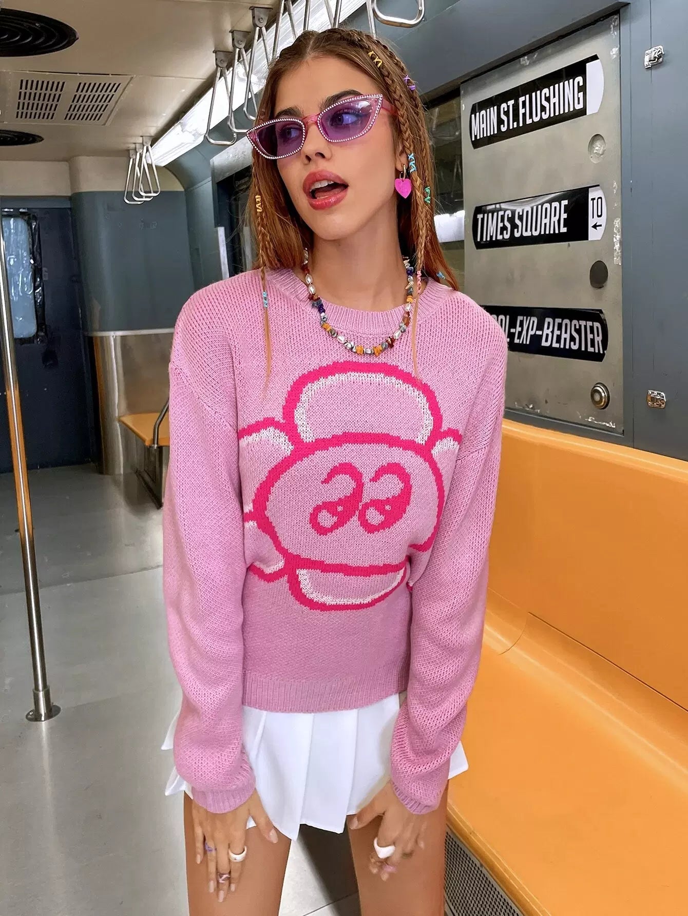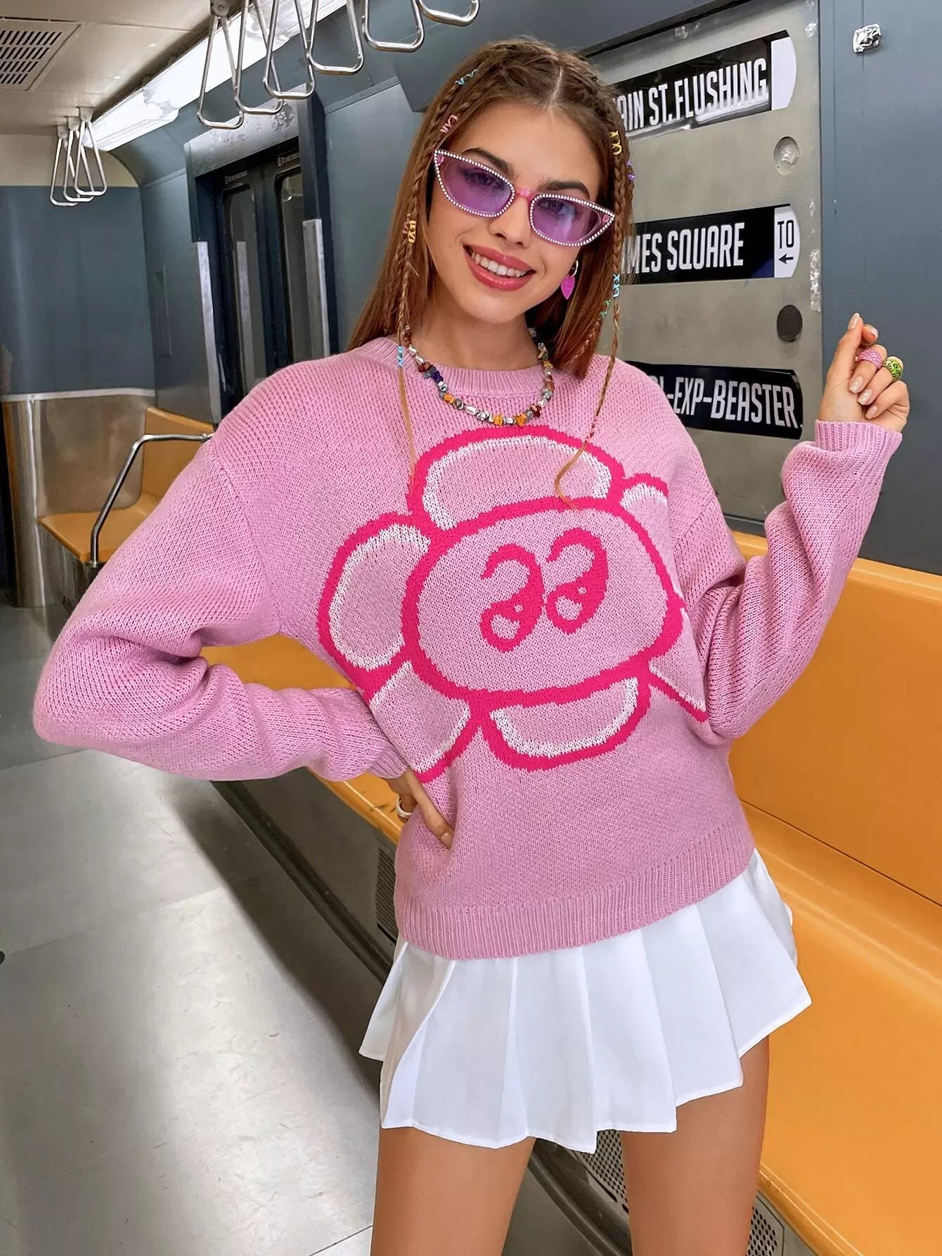سترة كرتونية منسدلة الكتف بنقشة زهور كرتونية