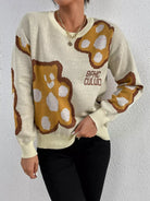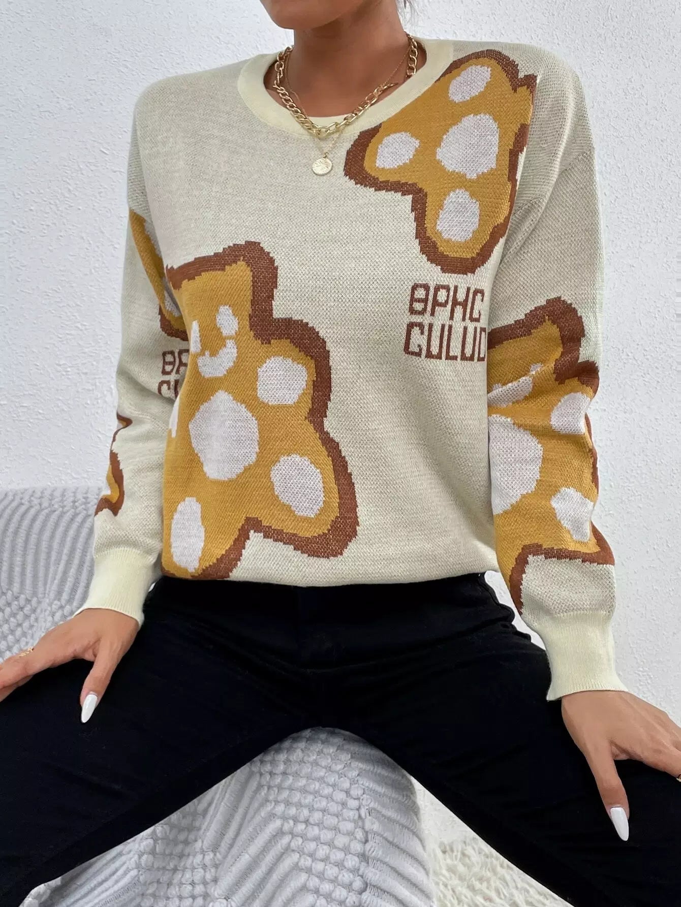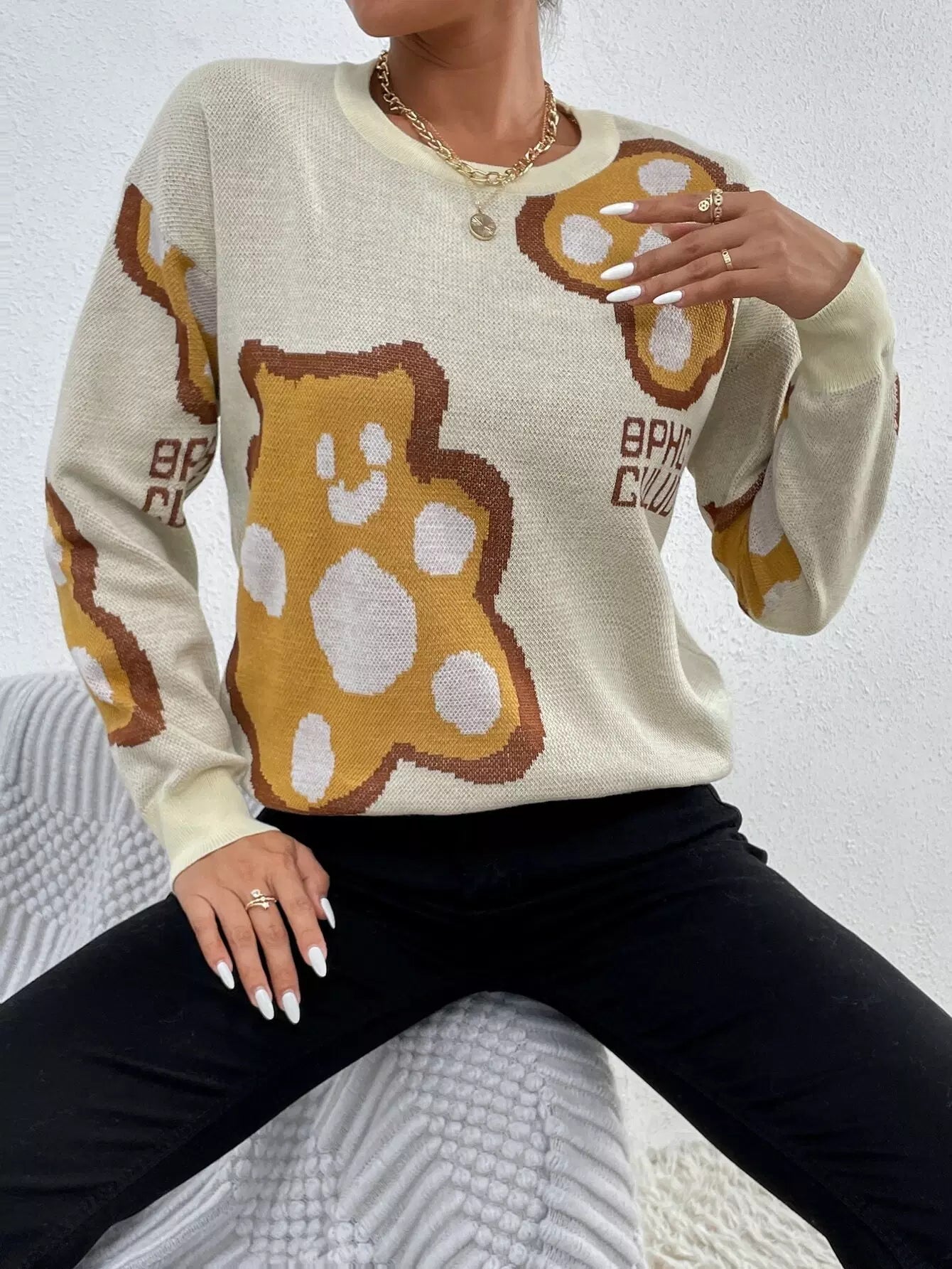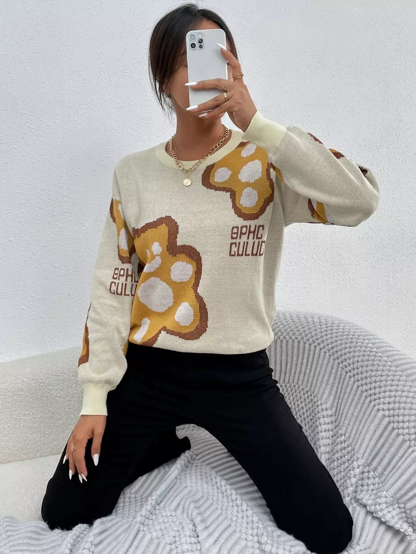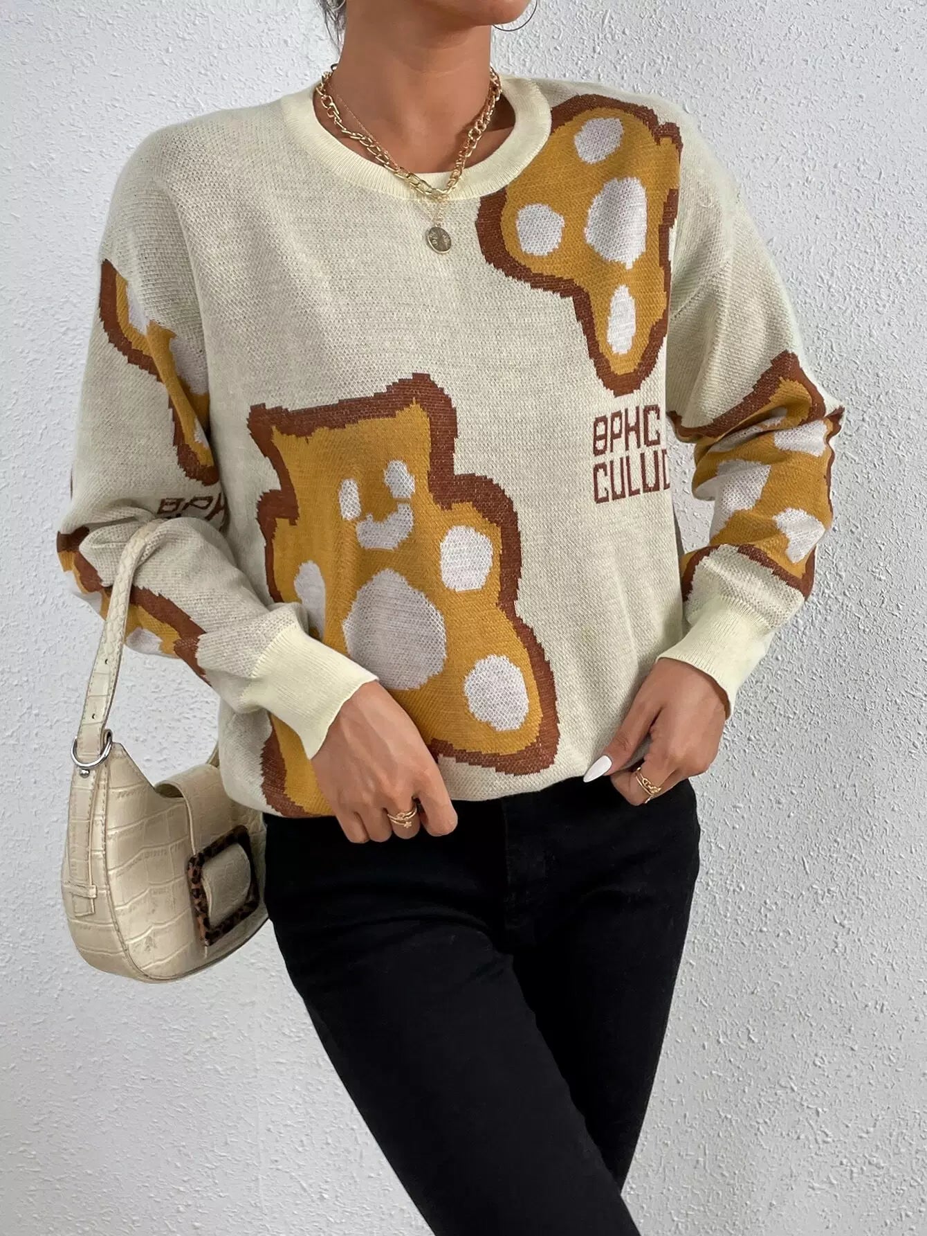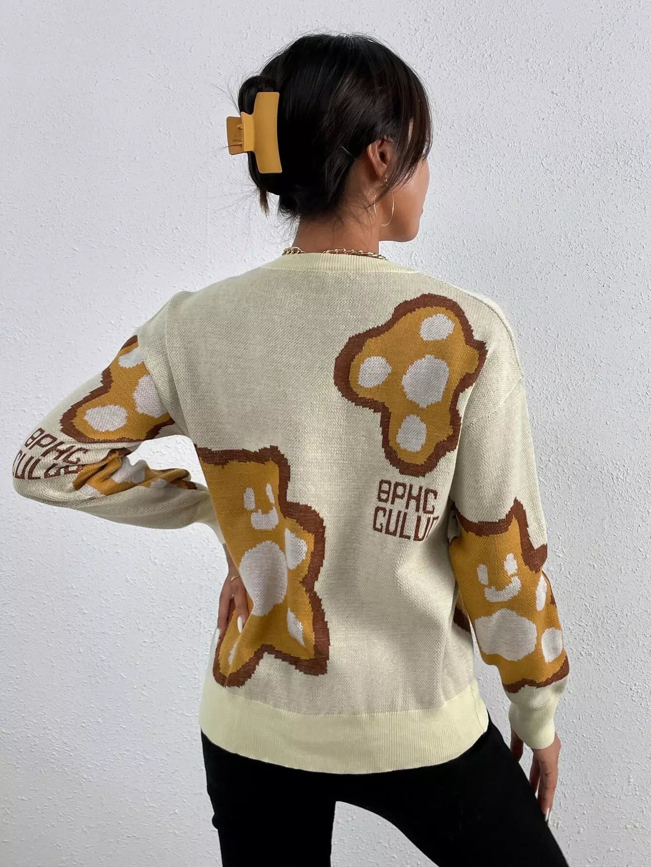 كنزة منسدلة الكتف برسومات كرتونية ورسومات حروف