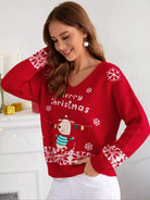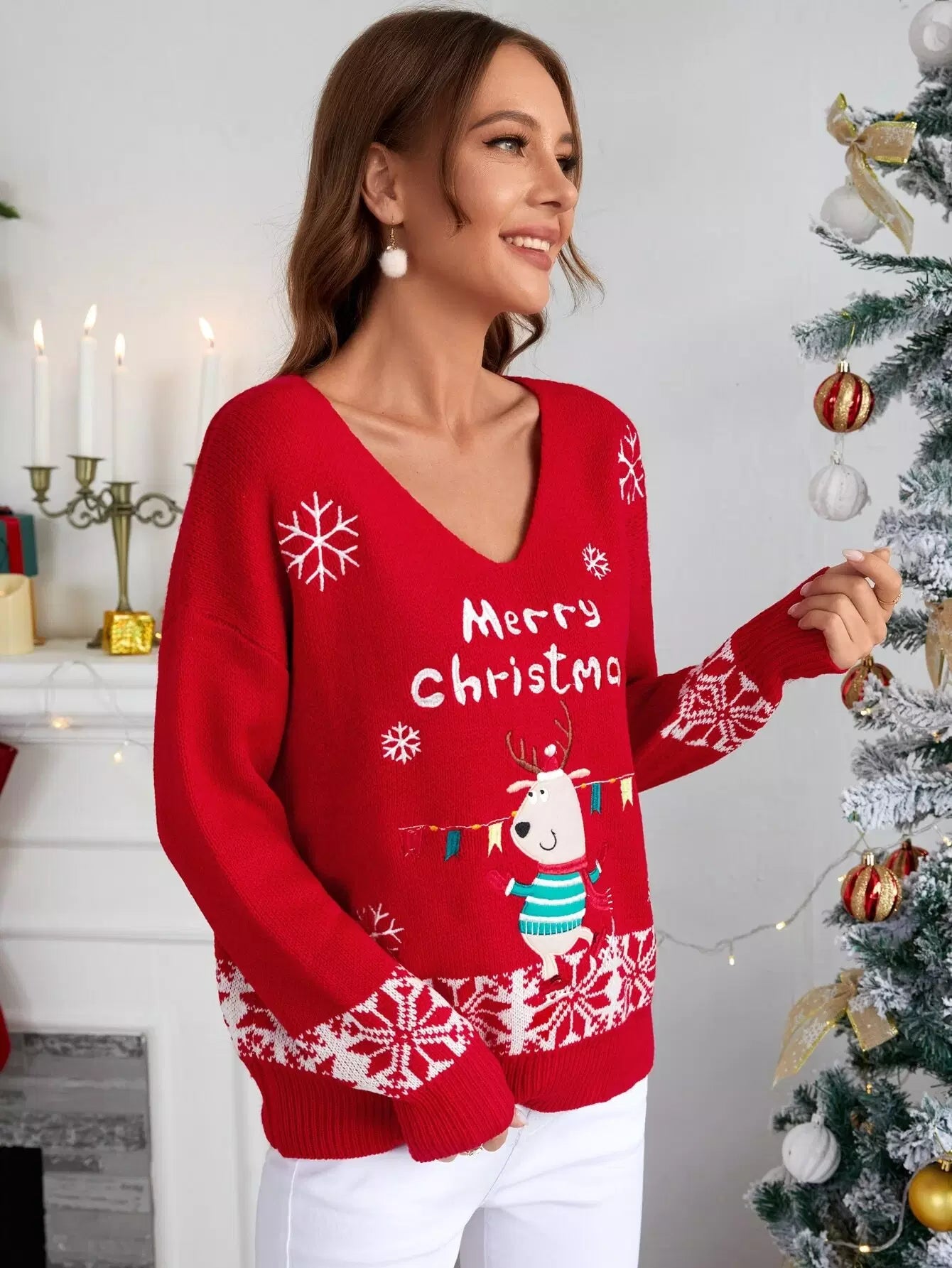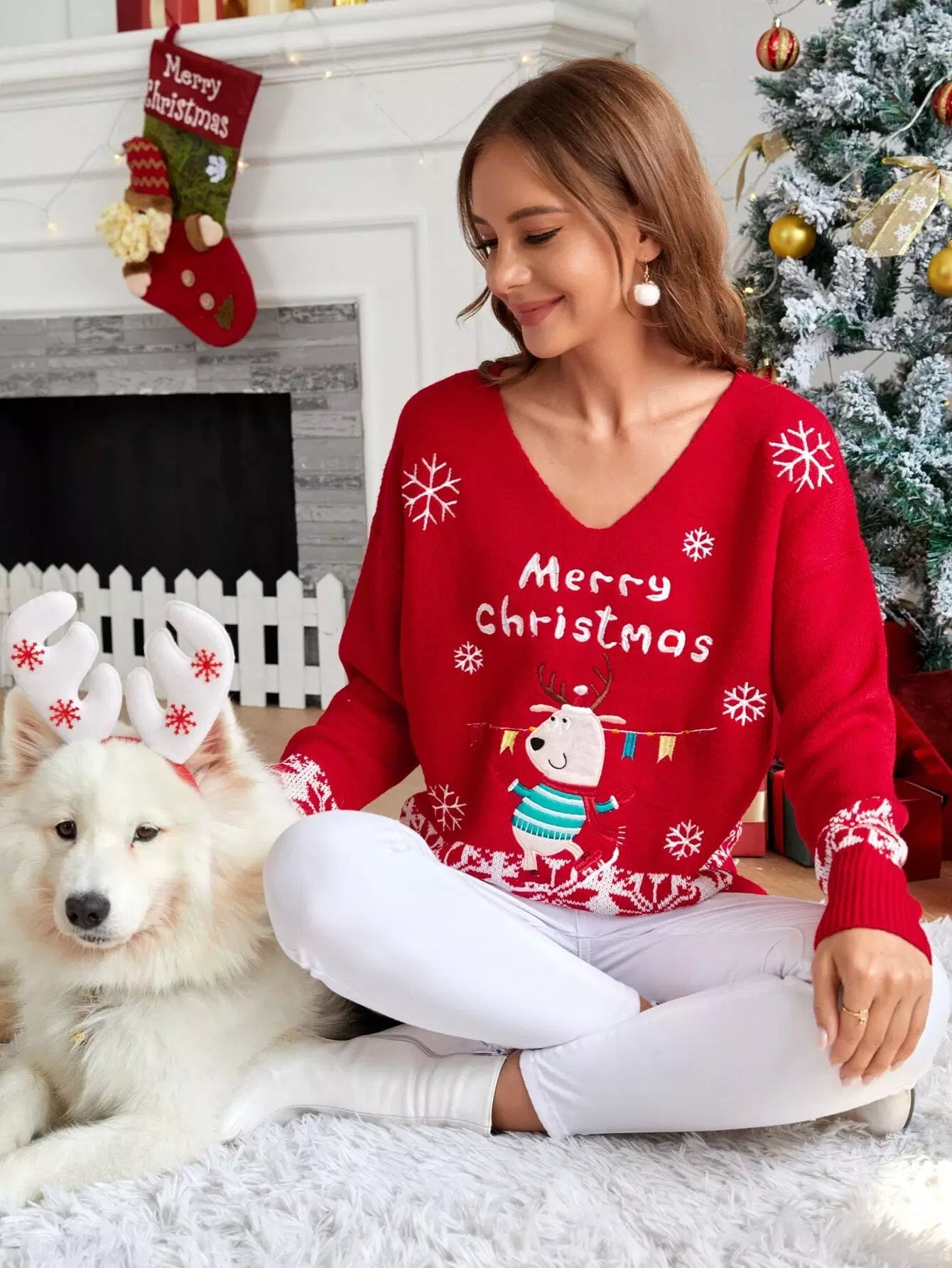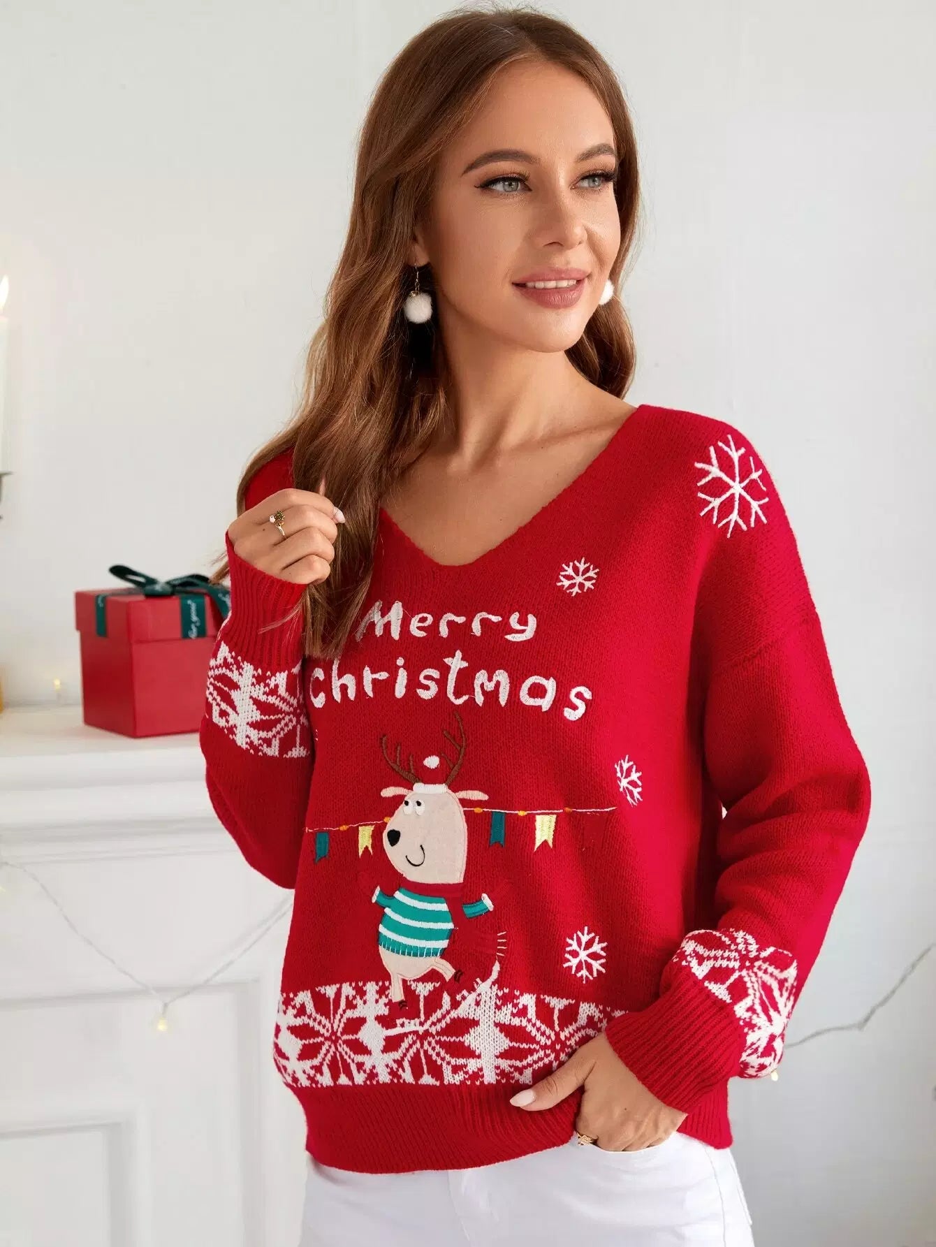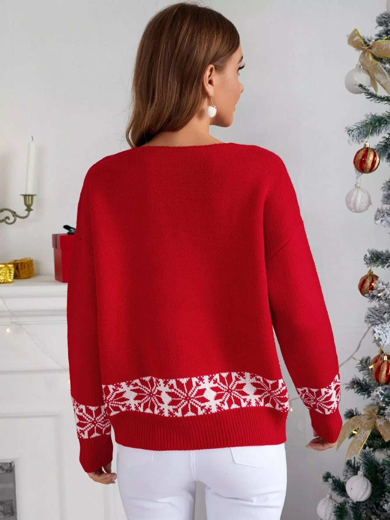 سترة منسدلة الكتف مطرزة بتطريزات كرتونية بنقشة عيد الميلاد