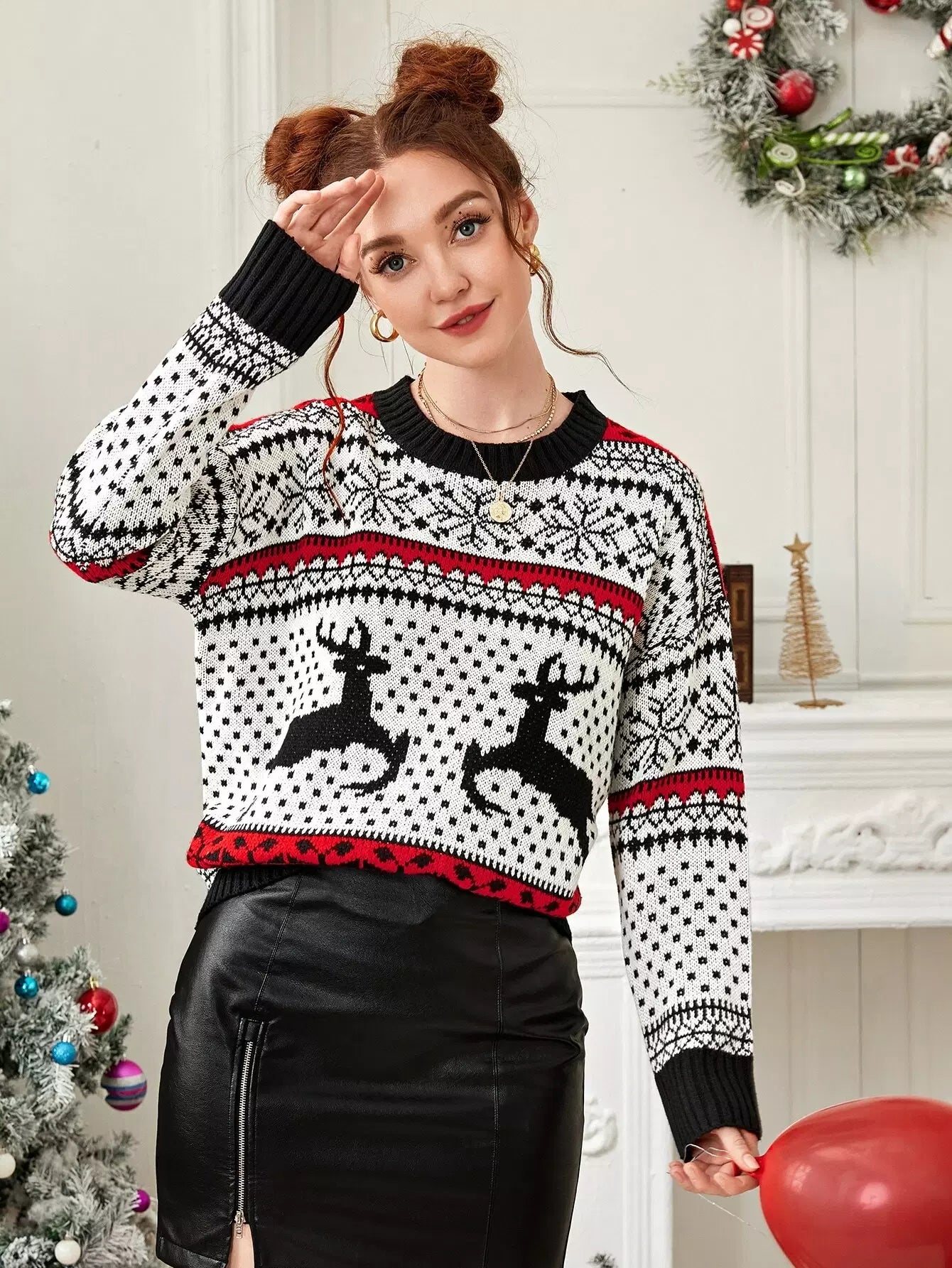 سترة منسدلة الكتفين مطبوع عليها طبعة عيد الميلاد