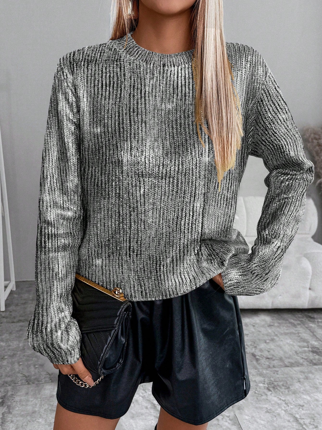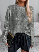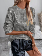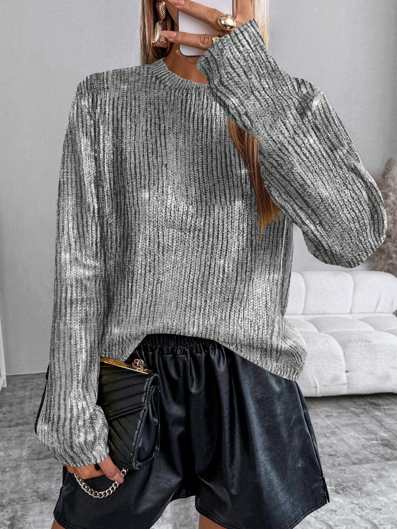 Clasi Women Casual Loose Fit Crew Neck Long Sleeve Sweater With Foil Print, Autumn/Winter Knit Pullover