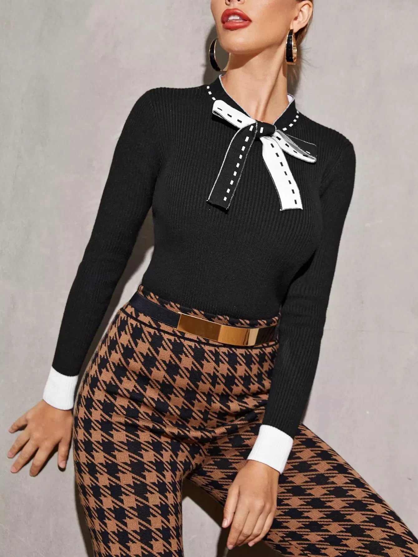 سترة ذات أكمام بلون مغاير بربطة عنق على شكل ربطة عنق